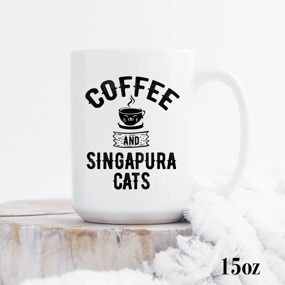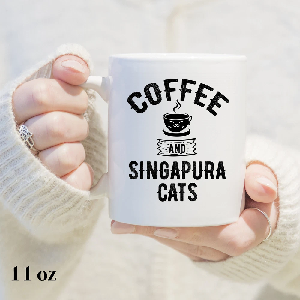 Coffee And Singapura Cats Mug Singapura Mug Singapura Gift Singapura Cat Lover Product Details.. This high quality 11oz. ceramic white mug has a premium hard coat that provides crisp and vibrant color reproduction sure to last for years. Perfect for all hot & cold beverages. The highest quality printing possible is used. It will never fade no matter how many times you wash it. Material: 100% Ceramic. Print both sides. Dishwasher and Microwave Safe. High Gloss + Premium White Finish. Printed in the U.S.A. Personalized & Custom. We support personalized and custom mug to add custom, when placing an order, you can add notes to the "order note" in shipping address section. Also you can contact us directly via message. Shipping Info. Ready to ship in 1 to 2 business days, All products are made-to-order and proudly printed in the United States. Shipped by USPS and DHL, You will receive your order in 5-7 days. Replace & Refund. All products are defective during shipping broken, chipped will be replaced free of charge. You are not satisfied with the product, we will refund 100% money to you. If any other issues arise, please do not hesitate to message, we would be more than happy to assist you.