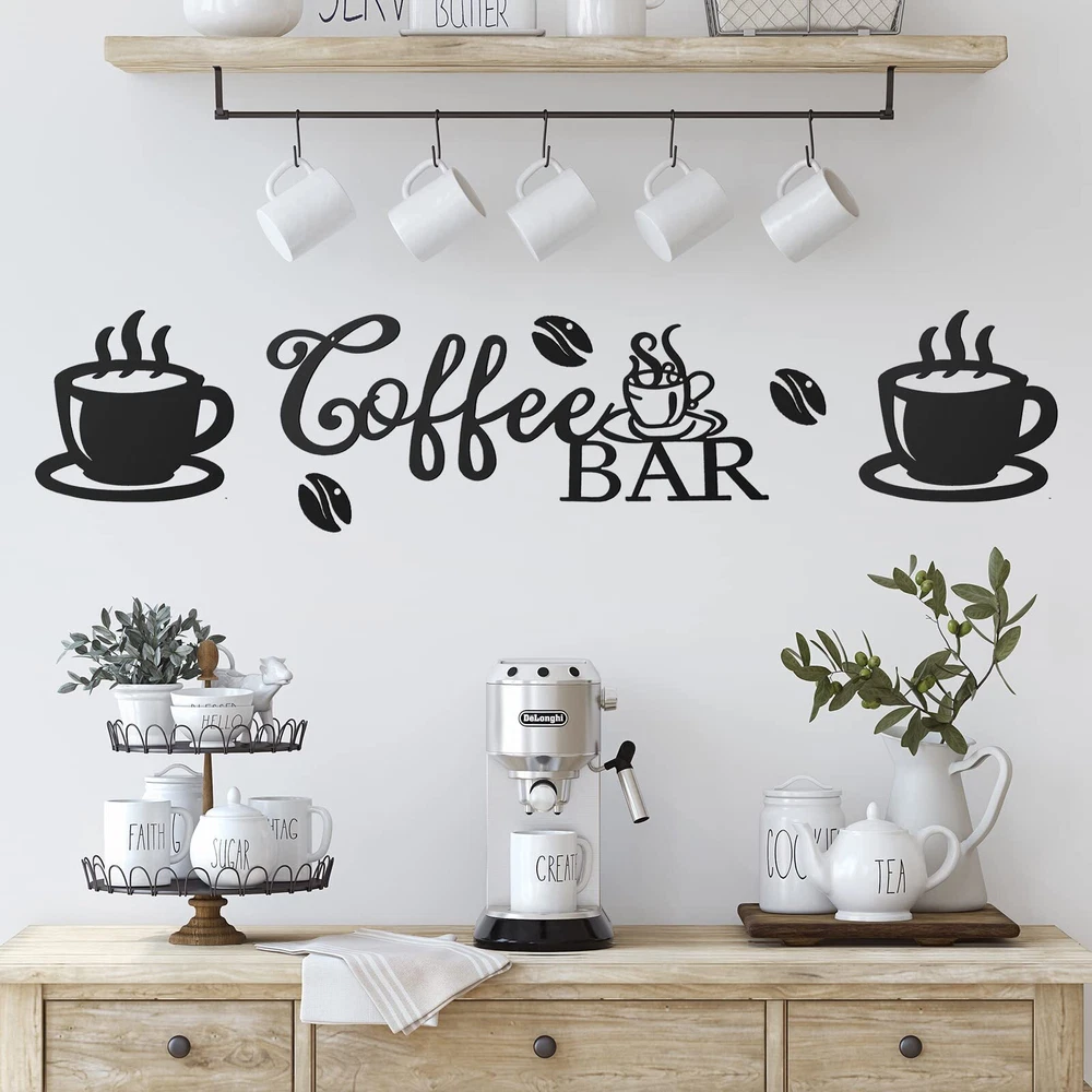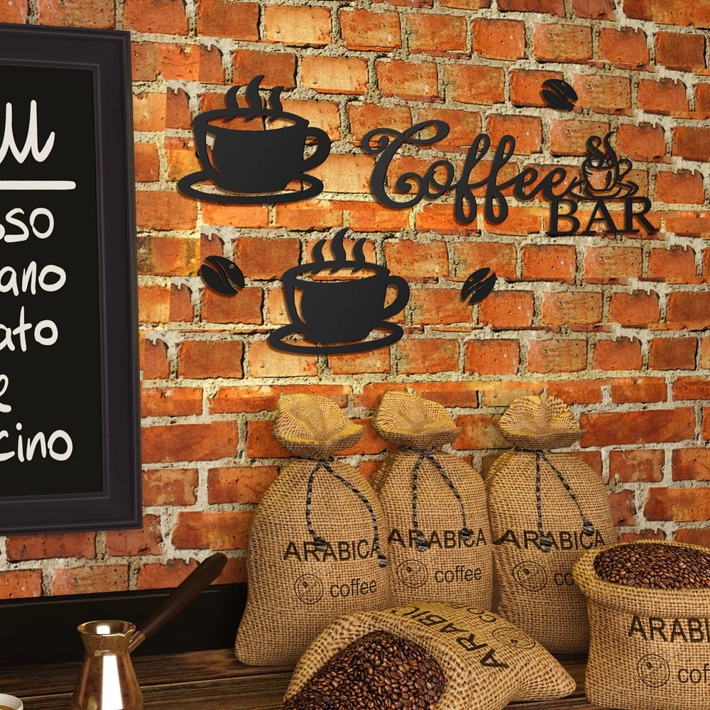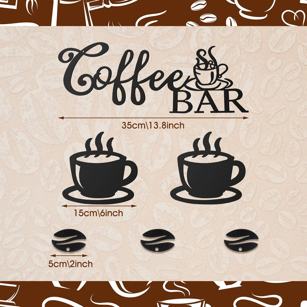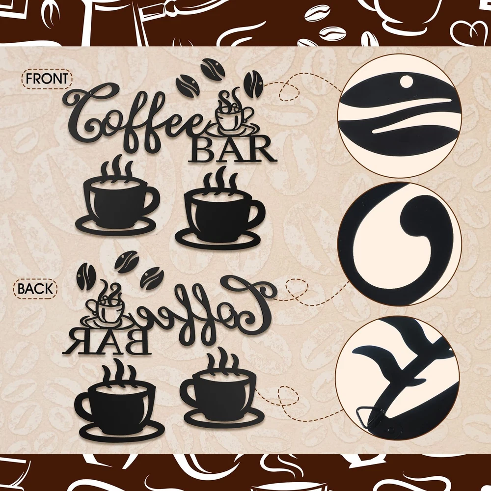 Features: The art farmhouse kitchen wall decor can be served as a present, so you can send it to your family members, friends, colleagues roommates or others on birthday parties, Christmas parties, Thanksgiving parties and other holiday parties, which can make them happy. The coffee station metal letter sign is printed with letters of [Coffee bar] and a coffee cup pattern, which can make your coffee bar attractive and eye-catching, also you can share it with your other friends or colleagues. Specifications: Material: iron Color: black Size: Coffee bar wall accessory: approx. 14 inches in length Coffee bean sign: approx. 2 inches in length Package includes: 1 x Coffee bar wall accessory 1 x Coffee bean sign 2 x Coffee cup signs Note: Manual measurement, please allow slight errors on size. The color may exist slight difference due to different screen displays. Black coffee bar accessory: you will receive 1 piece of coffee bar rustic metal sign and 3 pieces of coffee bean signs, which can match well with your overall decoration, making your home, restaurant or other places full of elegant and stylish atmosphere Serviceable material: this rustic coffee bar metal hanging sign is made of iron, exquisite in workmanship, reliable and sturdy to use, not easy to fade or rust, which can maintain its nice shape and serve you for a long time Size information: the coffee bar metal letter sign measures about 13 inches in length, and the 3 coffee been signs measure about 2 inches in length, proper size to get the attention of customers, visitors and others Easy to use: the coffee bar wall decor is designed with many holes, so you can use a rope or some nails to install it easily (not included), offering you much convenience, also they are lightweight, saving you much time and effort in installation Where to hang: this coffee station letter sign is suitable for many places such as dining room, kitchen, coffee , hotel, living room, restaurant and other places, also you can hang it on the windows, doors, walls, fireplaces