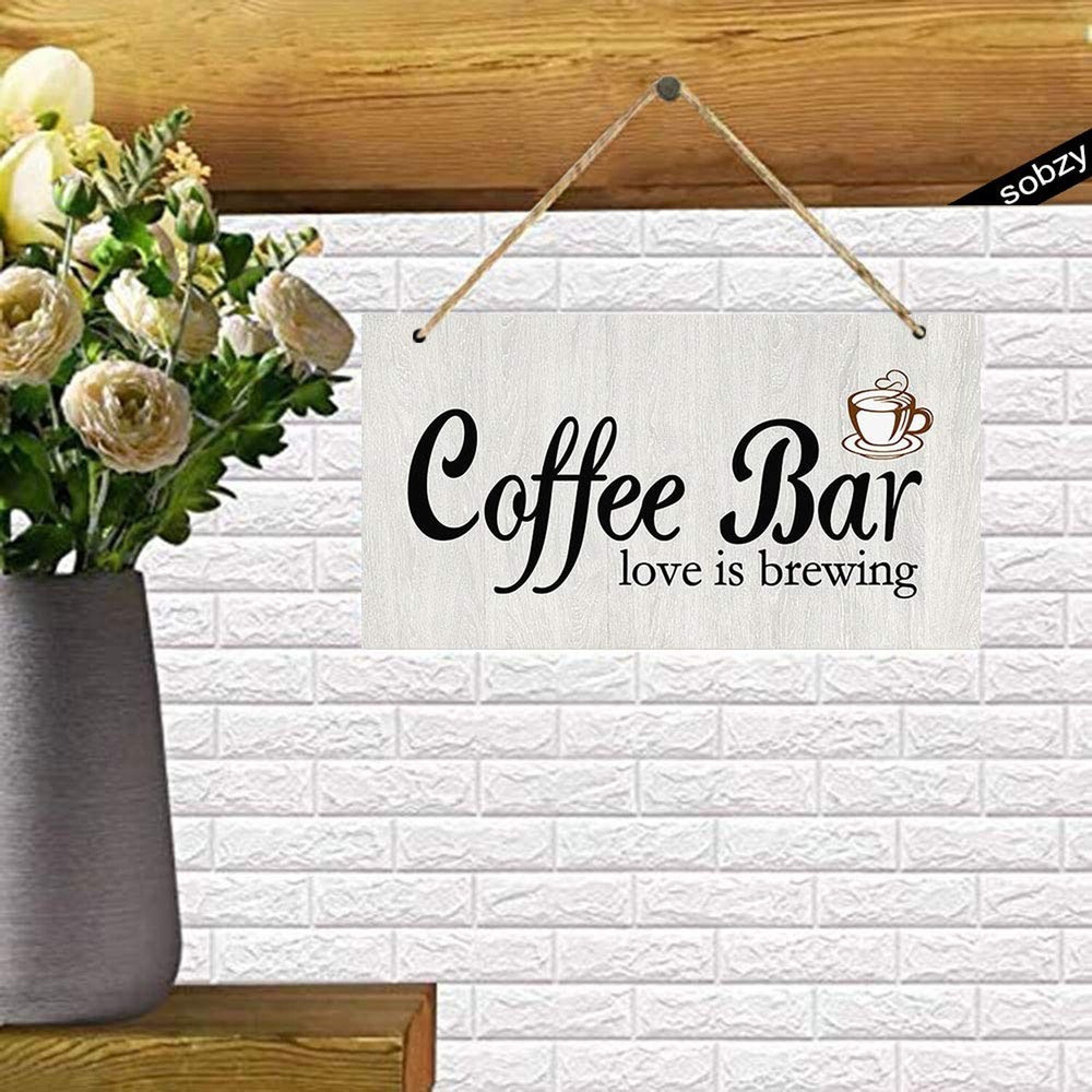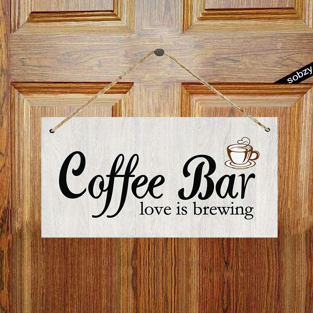Coffee Bar Sign - Farmhouse Coffee Signs for Coffee Bar - Love is Brewing Wall Decor,Modern Farmhouse Kitchen Decor, Rustic Home Decor, Coffee Bar Decor Product Details Size: 5.9x11.8inch Color: Love is Brewing Brand: Sobzy MPN: door1x5z3wood-91 UPC: 884194011345 EAN: 0884194011345 Color: Love is Brewing Brand: Sobzy Material: Wood Theme: Love Mounting Type: Wall Mount Product Dimensions: 5.9"L x 11.8"W Shape: Rectangular Item Weight: 0.11 Kilograms Style: Chic,Modern UPC: 884194011345 Item Weight: 3.84 ounces Manufacturer: Sobzy Item model number: door1x5z3wood-91 Batteries required: No Welcome Sign,Funny Sign: 11.8 inches x5.9 inches/15x30cm , it is suitable for indoor and outdoor hanging. This wall hanging decorative wood sign makes a perfect gift for family and friends. Printed Wood Plaque Sign Wall Hanging Welcome Sign for home decor comes ready to hang on wall. Bathroom decor wall art,welcome sign for front Door & bathroom signs decor is suitable for home & bathroom decorations. Country Barn Wood design adds a welcoming country, rustic, shabby chic barn style touch to any atmosphere! Easy To Install: Pre-drilled holes with attached rope makes hanging your sturdy sign on any nail or hook super fast & easy! Welcome Sign for Front Door,Bathroom,Hallway, Kitchen, Living room, Bedroom,etc. --Size: 5.9x11.8inch/15x30cm. --Indoor/Outdoor signs. --Comes ready to hang on wall with jute rope. --suitable for indoor and outdoor hanging. --Vintage style wood signs display nicely in your home & your friends home.