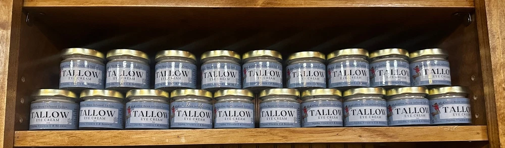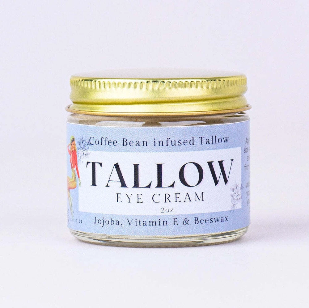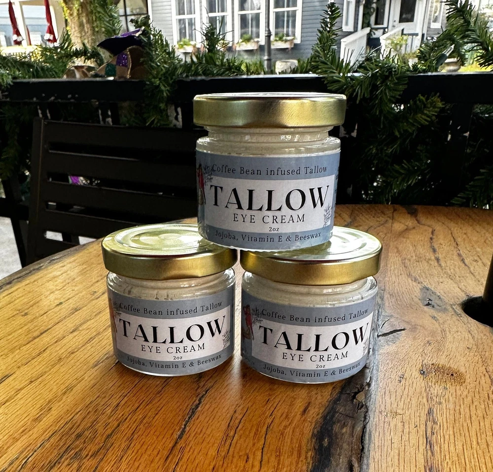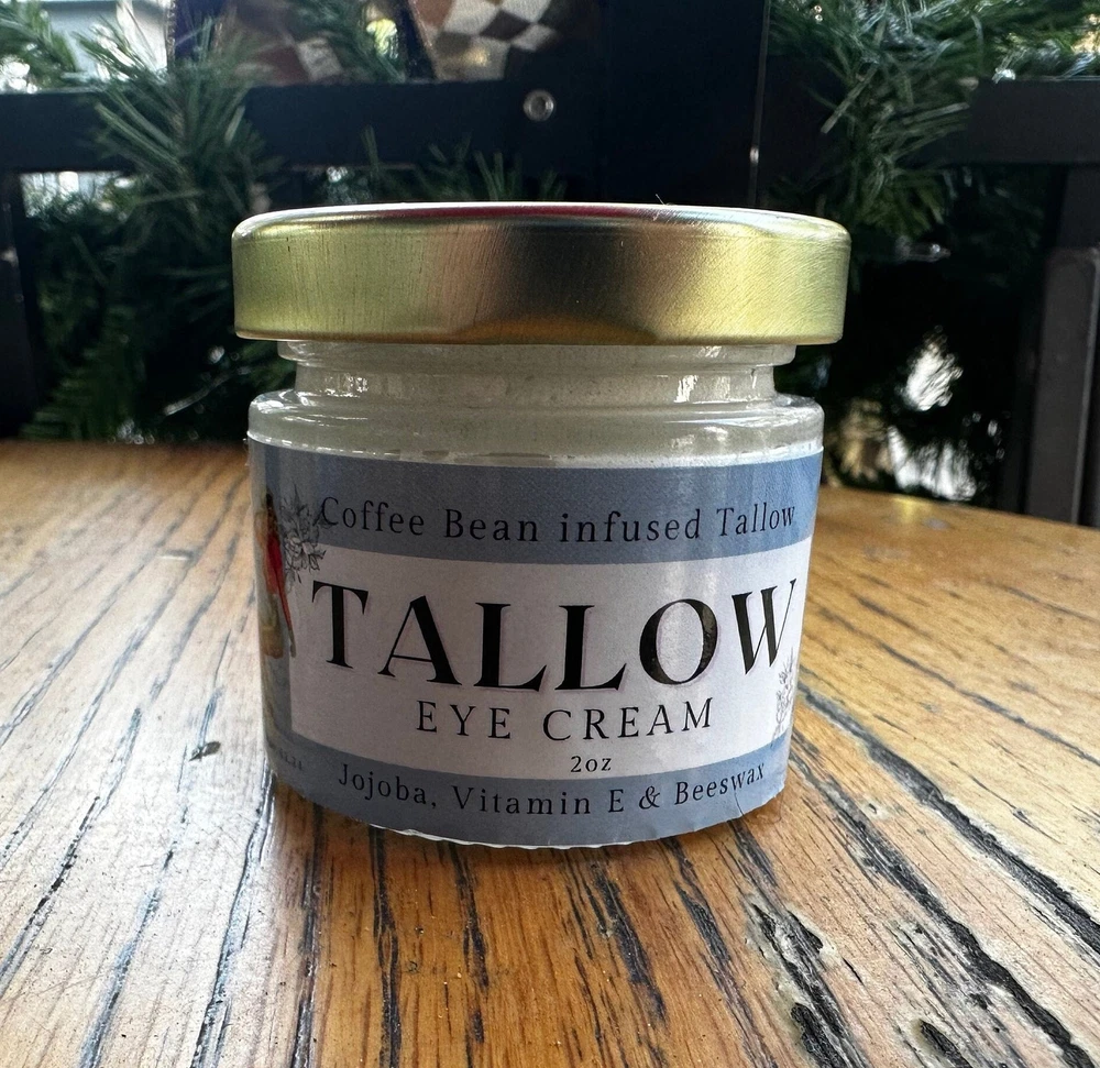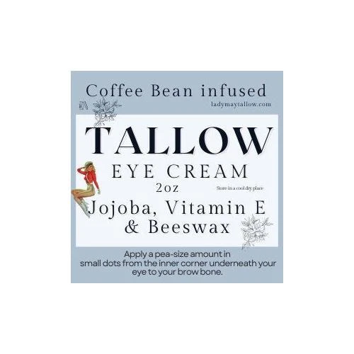 Introducing the Lady May Coffee Infused Grass Fed Tallow Eye Cream, the secret to achieving youthful and rejuvenated eyes! As a restaurant owner, I know what it's like to look in the mirror and see that your eyes look like they are packed upland ready to take a long trip. In search for an ALL NATURAL answer, I kept coming back to the benefits of caffeine for around the eyes and infusing coffee beans was the natural step to take. Did you the traditional way of extracting oils from plants and flowers was to use Tallow in a method called ENFLEURAGE. Well we use the same method to make our coffee infused eye cream and our lip balm trio. We rolled out our eye cream this holiday season and received plenty of positive feedback and a demand to sell it on its own. That's why I'm excited to share with you Our newest family member, The Coffee Infused Tallow Eye Cream.Our eye cream comes in a 2oz glass jar.Apply a pea-sized amount per eye is usually enough to keep the delicate...