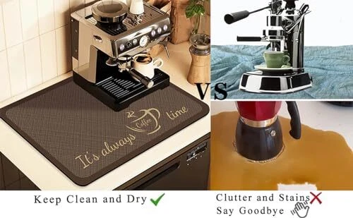 Return Policy Fast Delivery Trusted seller Coffee Mat for Countertops ,Coffee Bar Accessories Fit Under Coffee Maker Espresso Machine, Absorbent Hide Stain Rubber Mat for Countertop ,Dish Drying Mat for Kitchen Counter (D-Brown, 16"x24") Product Description 【Hiding stains & Durability Espresso Accessories】: This coffee bar mat is made of PU material and diatomaceous earth has extremely stain-resistant.Special material can surfaces hide coffee stains, milk stains,and any other messy stains.The bar mat doesn’t need to be wiped repeatedly. Don’t worry about water stains on the surface.The coffee maker mat is very durable and can be reused many times. 【Quick water absorption & Quick dry】The microfiber tableware dish drying mat is made of high-absorbent nanomaterials.The drying mat is soft and absorbent, which can dry quickly and hide stains well.In addition,the dish mat is thick enough to better protect countertops,tableware and glassware from damage and pollution. 【Anti-slip & Durable】:This coffee bar mat has a rubber mat waterproof liner which prevents water from seeping underneath and leaving stains on the top of the coffee bar.The bottom of the kitchen counter mat is a natural rubber coating to prevent the coffee machine from moving and protect the bottom of the coffee machine and the table top from being scratched. These drying mats for kitchen counter will protect your table very well. 【Easy to manage & Clean】The kitchen drying mat can be rolled up and stored in the drawer without taking up extra space.If the kitchen counter mat needs to be cleaned,just rinse it underwater. 【Wide range of uses】 It is not just a coffee bar mat, but also a high water absorption and quick dry pad that can be widely used as a drying mat for kitchen countertop,cups,water dispensers,mixers,ice cream machines, dish washing racks,dinner plates,tableware,etc,or as a food pad for pets. Shipping Returns Payment Shipping Shipping is FREE to all addresses other than APO/PO boxes in the lower 48 states. All our stock ships from US-based warehouses. Shipped via USPS or UPS (depending on location and package weight) Unless stated otherwise, all orders will ship within 24-72 hours of your payment being processed. Check our feedback to see the great reviews of FAST shipping we offer. Returns Seller does not accept returns Payment We currently accept payment via eBay managed payments only. Once payment is cleared, we will dispatch your shipment within 1-3 business days. Please refer to the "Shipping" tab for more information regarding shipping speed to your destination.