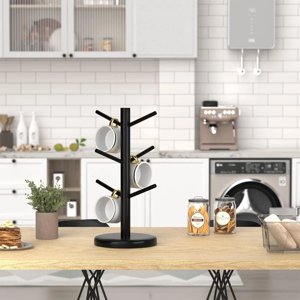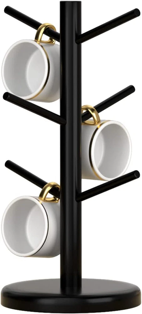 Coffee Mug Holder Tree,Coffee Bar Organizer,Coffee Cup Holder with 6 Hooks,Wood