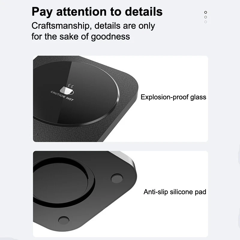 Product Description Product Description ✔️ Easy To Use: Just plug in the power cord, flick the switch and put on the cup. Everything is ready. Now the mug warmer will heat your drink to the last drop. This coffee warmer not only slows down the cooling of your hot beverage. ✔️ Temperature Adjustment: 50℃, 55℃, 60℃ three-speed temperature adjustable to meet different temperature needs. ✔️ USB Charger: You can connect this product with your laptop or power adapter to use. ✔️ Memory Function: Automatically restores the temperature setting when the product is turned on from the last time it was turned off, making it more convenient to use. ✔️ Automatic Power-Off Protection Design: When the cup is heated for 8 hours without operation, the product will automatically power off to stop heating. ✔️ Suitable For Most Cups: Suitable for all kinds of flat-bottomed cups, such as glass cups, stainless steel cups, ceramic cups and so on. Tempered glass panel is splash-proof and leak-proof. Specifications Type: electric heating coaster Color: black, white Material: ABS plastic and tempered glass Rated power: 15W USB port: DC5V-1A/2A Touch switch: three temperature adjustment (50°C/55°C/60°C) Packing List: Coffee Coaster x 1 USB Cable x 1 Payment Returns Contact Us Shipping Feedback 1. We only accept eBay payments. 2. All payments must be made within 3 days after auction won. Item may be returned for refund or replacement within 30 days of the purchase date. Returned merchandise must be unused, in original packaging and include all accessories. Shipping costs are non-refundable. Please do not hesitate to leave us your 5 Star ★★★★★ of DSR positive feedback if you are satisfaction with our products ,delivery or services . If you have Any Questions Or Unsatisfied with your purchase, please Email us firstly to get a better solution before you leave a neutral or negative feedback, we work hard to make sure every customer 100% satisfied and resolve anyproblem for you. Please email us first in the following situations: 1.The item can't work properly. 2.The item broken on the post. 3.You bought or received the wrong items. 4.You have not received your shipment within the period. 5.Before you give us Negative feedback. 6.Before you open a case/return on eBay. All questions will be replied within 24 hours (Except Saturday and Sunday or holidays). Thank you for your kindness! 1. eBay Payments Confirmed Addresses Only. 2. No Delivery to Alaska and Hawaii or PR. 3. No P.O. Box and APO/FPO Delivery. 4. Tracking Number will be provided. 5. Domestic shipping is within the 48 Contiguous States of United States, the delivery time is between 2 and 8 days. Items will be shipped by UPS, USPS or Fedex within 3 business day after receiving full payment. 6. International shipping is from China, the delivery time is between 10 and 30 working days. As a seller , Positive Feedback is very important to us. We try our best to let our customers to be happy. If you have any question about your order, please contact us ,please let us know before you Leave the Negative feedback ,We are willing to do our best to make up for it, Thank you very much ! Payment 1. We only accept eBay payments. 2. All payments must be made within 3 days after auction won. Returns Item may be returned for refund or replacement within 30 days of the purchase date. Returned merchandise must be unused, in original packaging and include all accessories. Shipping costs are non-refundable. Please do not hesitate to leave us your 5 Star ★★★★★ of DSR positive feedback if you are satisfaction with our products ,delivery or services . Contact Us If you have Any Questions Or Unsatisfied with your purchase, please Email us firstly to get a better solution before you leave a neutral or negative feedback, we work hard to make sure every customer 100% satisfied and resolve anyproblem for you. Please email us first in the following situations: 1.The item can't work properly. 2.The item broken on the post. 3.You bought or received the wrong items. 4.You have not received your shipment within the period. 5.Before you give us Negative feedback. 6.Before you open a case/return on eBay. All questions will be replied within 24 hours (Except Saturday and Sunday or holidays). Thank you for your kindness! Shipping 1. eBay Payments Confirmed Addresses Only. 2. No Delivery to Alaska and Hawaii or PR. 3. No P.O. Box and APO/FPO Delivery. 4. Tracking Number will be provided. 5. Domestic shipping is within the 48 Contiguous States of United States, the delivery time is between 2 and 8 days. Items will be shipped by UPS, USPS or Fedex within 3 business day after receiving full payment. 6. International shipping is from China, the delivery time is between 10 and 30 working days. Feedback As a seller , Positive Feedback is very important to us. We try our best to let our customers to be happy. If you have any question about your order, please contact us ,please let us know before you Leave the Negative feedback ,We are willing to do our best to make up for it, Thank you very much ! powered by