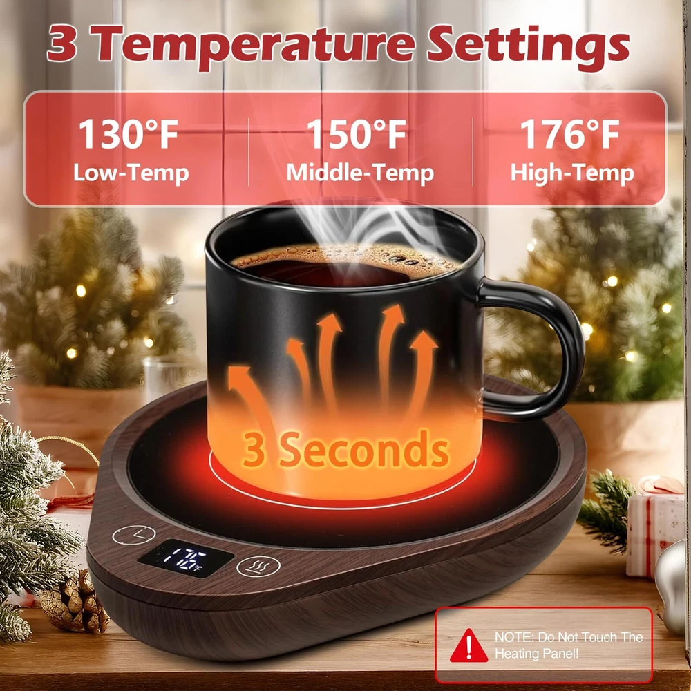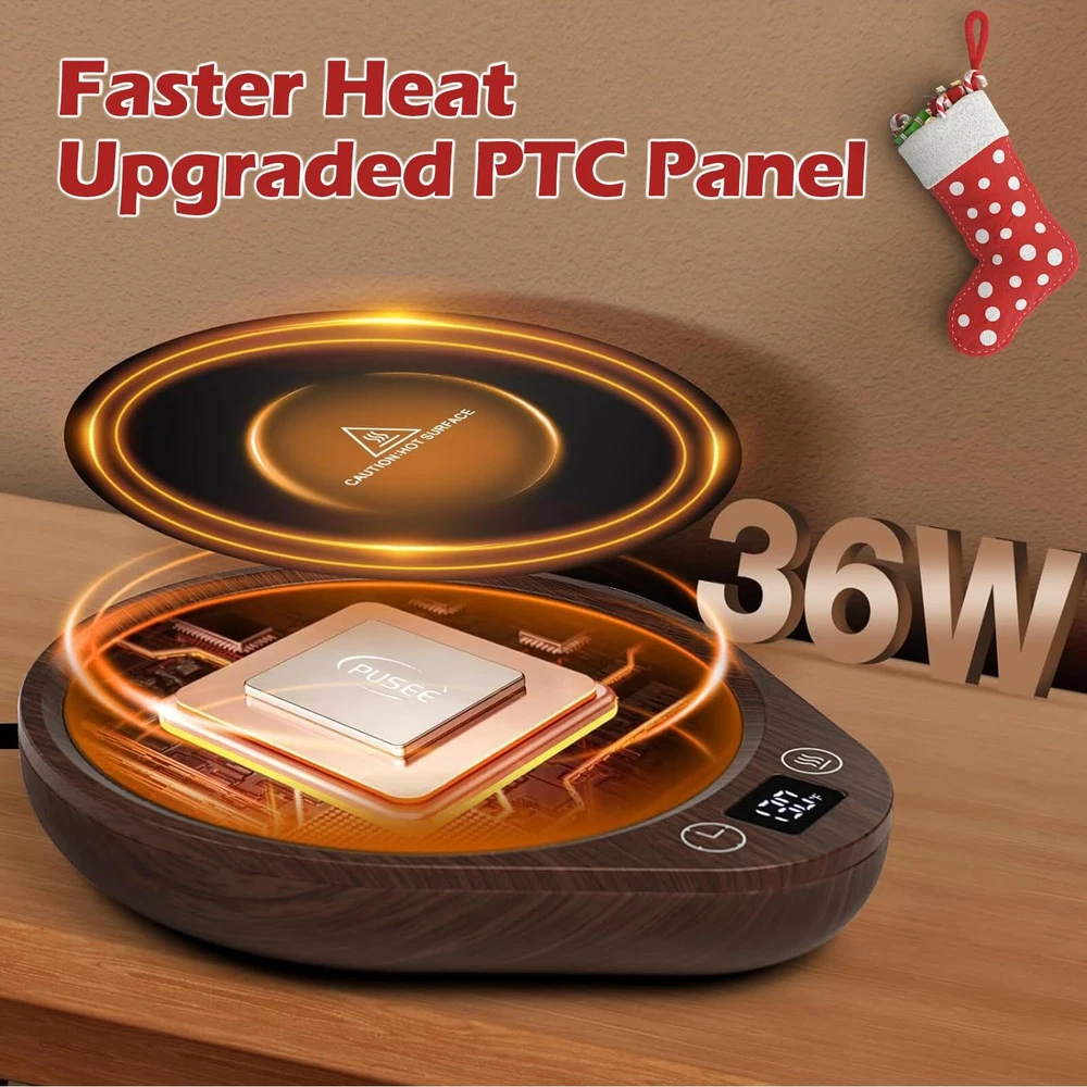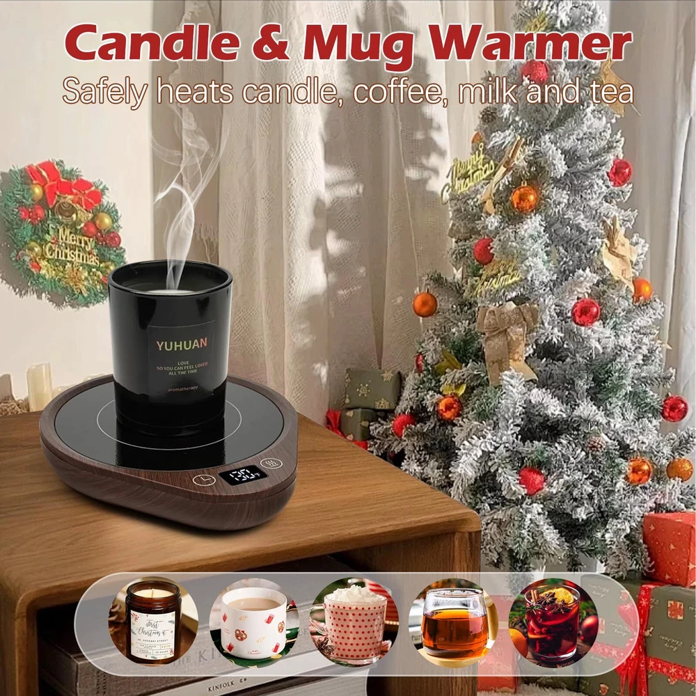 [3-Temperature Settings]-Unlike other mug warmers that only have 20W power, 36W coffee warmer can heat coffee faster and evenly. Our electric mug warmer can keep your candle or beverages at the perfect temperature for a long time, you can enjoy your favorite drinks at the perfect temperature (touching the "Temp Button" to choose130℉/150℉/176℉). [4 Hours Auto Shut Off]-This smart mug warmer default setting is auto shut off after working 4 hours. Need't worry about forgetting to turn it off. You can also set the auto-off time as you like (2H,4H, 6H, 8H, 10H, 12H). The LED display shows the time off intelligently and clearly. You can also turn it off manually. 1.5M/59IN charge cord makes it perfect warmer for office desk, home, kitchen, dorm and more. [Super Larger Heating Area]-The coffee/candle warmer plate is 5.5 inches in diameter, super large heating area, fitting most cups and candles. Perfect for heating candle and beverages as coffee, milk, tea, etc. This cup warmer has rubber non-slip foot pad, stable and not easy to slip off. [Safe & Durable]-upgrade warmer with high-tech materials make the coffee warmer heat-resistant and fire-resistant. The cup warmer uses a microcrystalline glass panel, which is waterproof and easy to clean. This large electric jar warmer allows you to safely enjoy the beautiful smells of your favorite candles without ever having to see or worry about a flame. [Best Gift Choice]-The coffee warmer for desks will be a great coffee gift for your friends as a coffee accessory. It's a great gift for lover, dad, mom, wife, husband, and all your loved ones on Valentine's Day, Thanksgiving, Christmas, and other special occasions to show you care.
