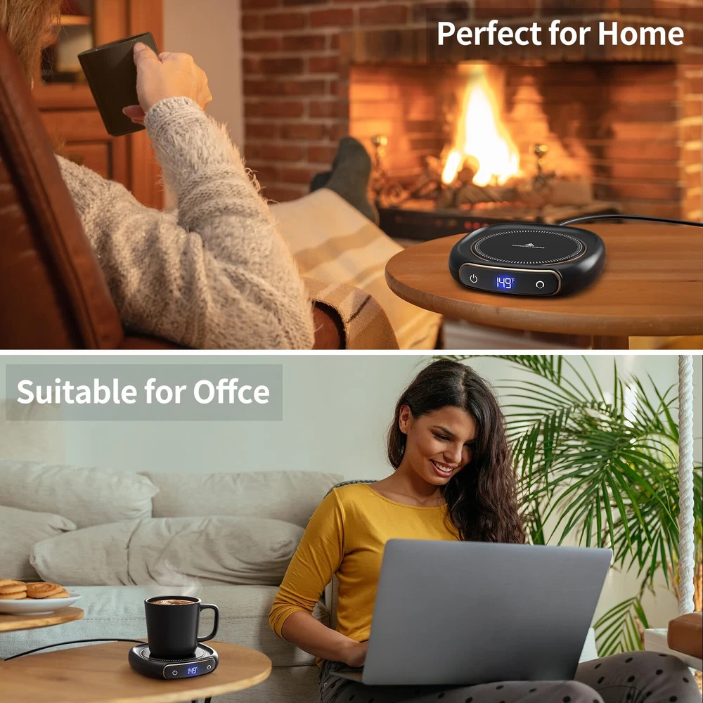 ð·ãSmart Safety Design & Automatic Shut-offã: This smart mug warmer will shut off automatically after continually working 8 hours. No worry about forgetting to turn it off. The blinking red light indicator tells you the heating plate is hot and will stop until the temperature drops to 97â (36â), ETL certified to ensure safety. ð¥ãLarger Heating Panel ã: With a 4.8-inch heating plate area, coffee warmer for desk is suitable for 99% of cups and beverages. It accommodates most cup sizes, unlike other coffee heater with smaller dimensions of only 3.7 inches. ð¢Tips: Choose flat-bottom and thin-wall mug so that it can have a good connection to the warmer.(Package includes a 12oz ceramic mug) ðãThoughtful Design & GIFT IDEAã: Treat your loved one to the Smart Coffee Warmer Set for their every day! This set includes a convenient heated mug warmer, a stylish 12oz ceramic mug, Ideal for the office or home workspace, it keeps their beverages warm throughout the day. No more settling for a cold cup of coffeeâevery sip stays fresh and flavorful with . ðãAdjustable Three-Temperature Settingã: coffee mug warmer will keep your coffee at a perfect drinking temperature. You can control the temperature by tapping the button, keeping your coffee or milk up to 104â-131â-149â (40â-55â-65â). Changing temperature is just a tap on of your finger. ðãBest Gift Choiceã: Surprise your loved ones with our beautiful and functional coffee mug warmer. It's the perfect gift for special occasions like Valentine's Day, Thanksgiving, Christmas, New Year, and more. No coffee lover can resist these charming coffee accessories.(ð¢Tips: includes a heated coffee mug warmer, and 12oz ceramic mug) ð¯ðãWholeheartedly Serve you ãThank you for choosing , we provide 12 months of quality assurance for each product, and the team is at your service 7/24, if you have any questions or dissatisfaction during use, please us, we will give a satisfactory solution for you