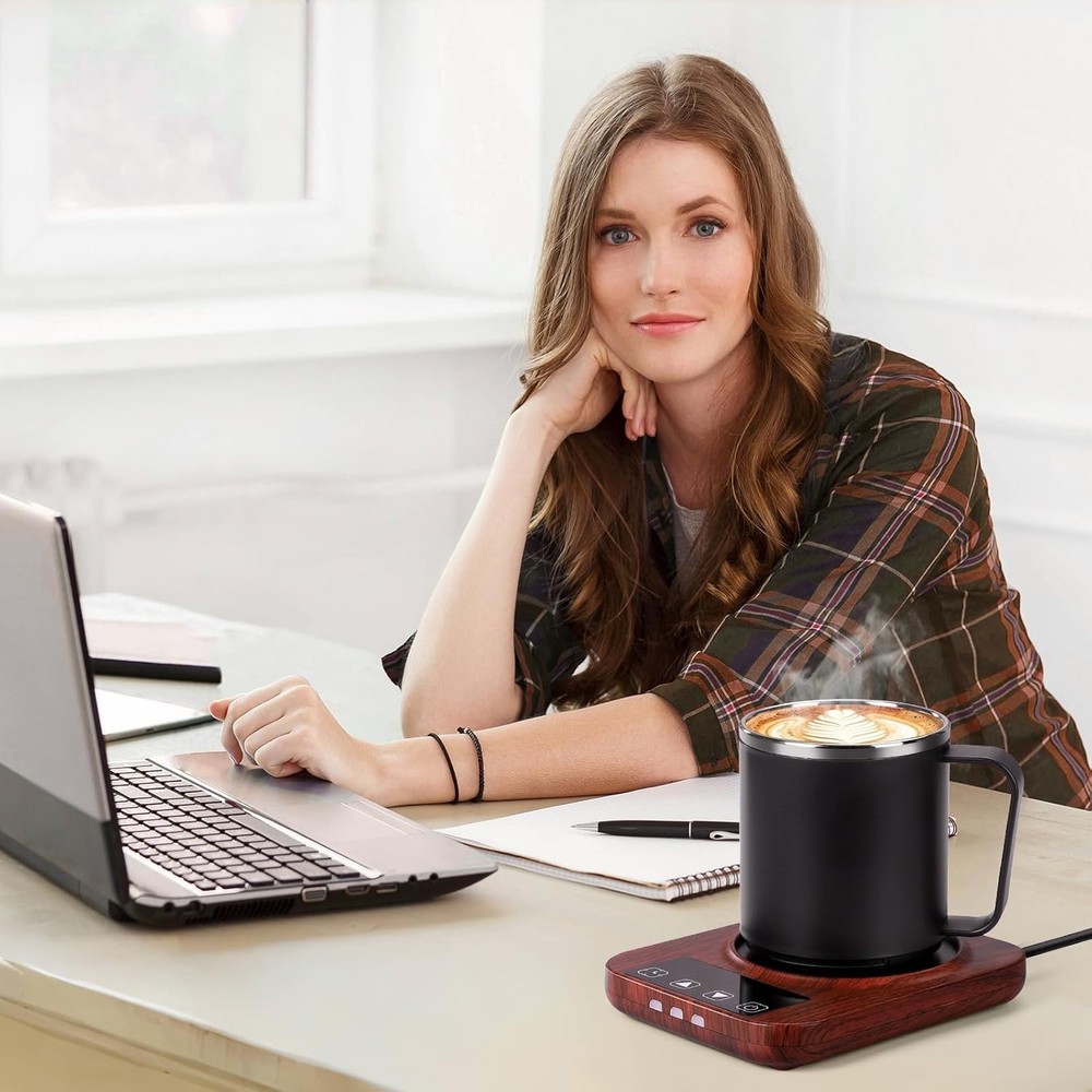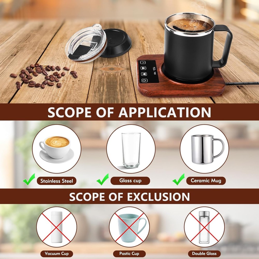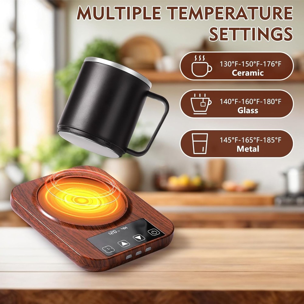 This coffee mug warmer and organizer set is a game-changer! Keeps my coffee hot with the auto timer, and the sleek caddy fits my Chemex perfectly while keeping my counter clutter-free. Love the heat-resistant silicone pad—no more messy drips. Stylish, functional, and a must-have for coffee lovers!