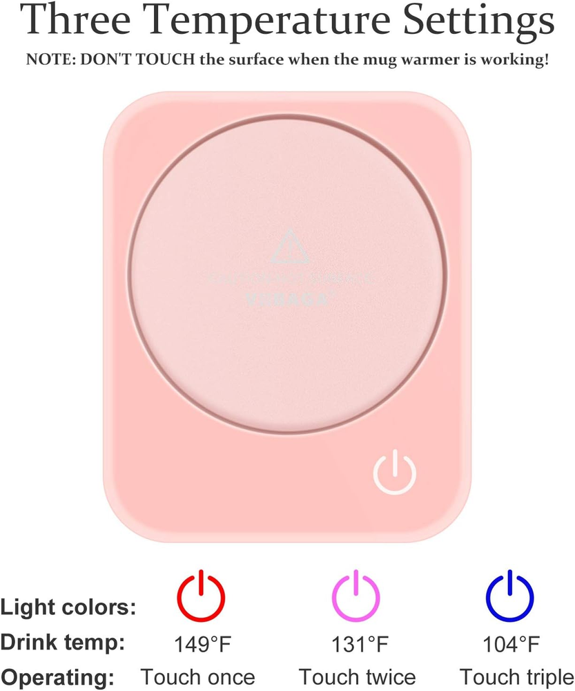 Store New Arrivals Add to Favorite View Feedback Contact Coffee Mug Warmer for Desk with Auto Shut off & 3-Temp Settings, Coffee Cup Warmer with Smart Safety Alert Home Office Accessory, Perfect for Coffee, Tea, Milk (No Mug) Description Item model number VOB-16 Maximum Temperature 149 Degrees Fahrenheit Lower Temperature Rating 104 Degrees Fahrenheit Power Source Corded Electric Color Pink Upper Temperature Rating 149 Degrees Fahrenheit Wattage 20 watts Material Aluminum Item Weight 10.2 ounces Product Dimensions 5.32"L x 4.33"W x 0.79"H Voltage 120 Volts Capacity 0.65 Pounds Adjustable Three-Temperature Setting: VOBAGA coffee warmer will keep your coffee at a perfect drinking temperature. You can control the temperature by tapping the button, keeping your coffee or milk up to 104℉-131℉-149℉ (40℃-55℃-65℃). Changing temperature is just a tap on of your finger. Automatic Shut-off & Smart Safety Feature: This smart cup warmer will shut off automatically after continually working 4 hours. No worry about forgetting to turn it off. The blinking red light indicator tells you the heating plate is hot and will stop until the temperature drops to 97℉ (36℃). Splash-proof & Large Heating Plate: The heating plate adopts sealed-insulation technology to prevent splashing water, which also fits most standard mugs well. The 59-inch plug cord will fits on your desk perfectly. Tips: Choose flat-bottom and thin-wall mug so that it can have a good connection to the warmer. Easy-to-Clean & Portable-to-Carry: The surface of the heating plate is easy to clean. The coffee warmer is lightweight and will be a ideal choice for gift on Birthday, Thanksgiving Day and Christmas and so on. Satisfactory Customer Service: Your satisfaction is our top priority. We will help you solve any problems in 24 hours. For more information on how to use the warmer, please scroll down to get a User Instruction. Product Description Just a tap on your finger, you can keep your coffee or milk up to 104℉-131℉-149℉(40℃-55℃-65℃). Tap the button four times, you can turn the beverage warmer off manually. Express Heating Tips Use a flat-bottom and thin-wall cup with a cover will help warm your beverage in a few minutes. Note: The warmer is designed to keep your heated drinks warm. If you want to heat a cold coffee, it will take a long time. Use Suitable Cup Vobaga cup warmer is not applicable for vacuum cup, plastic cup, double-glass cup and bagged drinks. Please choose flat-bottom cup, box-packed or stainless steel cup to warm. Easy to Clean The surface of the heating plate is easy to clean. Please use a tissue or dry cloth to wipe the heating plate. Multi-purpose Heating Plate The heating plate is suitable for cups up to 3.54 inches in diameter. The warmer can heat up candles and let your room fill with aroma. (No Fire) Energy Saving Feature 20w mug warmer will help you save energy. Enjoy your day with VOBAGA coffee warmer! Great Present Choice It will be a great choice for present on Birthday, Thanksgiving Day and Christmas and so on. ABOUT US We offer the best prices around on high quality products. Our E-store includes media such as books, movies, music and games while offering electronics, toys, sporting apparel, clothing, tools, general home, garden items and more. SHIPPING We are always working hard to ensure your package arrives as soon as possible. Please understand that some factors like weather, high postal traffic, and the performance of shipping companies are outside of our control. We offer free shipping to the lower 48 states and ship within 2 business days of payment, usually sooner. We do not accept P.O. Boxes. Please provide a physical address. For shipping outside of the continental USA, we only use eBay's Global Shipping Program.The item is shipped to KY and then sent to the rest of the world. International customers are responsible for all duties and taxes. Continue to check out in order to calculate costs for shipping the item to your country. Messages regarding eBay's Global Shipping Program MUST be directed at eBay EXCLUSIVELY. RETURNS We offer a 30-Day Return Policy on items which you are not completely satisfied with. You have the option for a full-refund or an exchange of the item. No returns are available on items shipped outside of the USA. PAYMENT We accept PayPal. CONTACT US This page content is yet to come Please ad us to your favorite seller and visit again later Thank You CUSTOMER SATISFACTION We try our very best to make sure every customer is completely satisfied. If there's a problem, message us! We're happy to help. WE ACCEPT Copyright © 2021 AutoDS. | All Rights Reserved