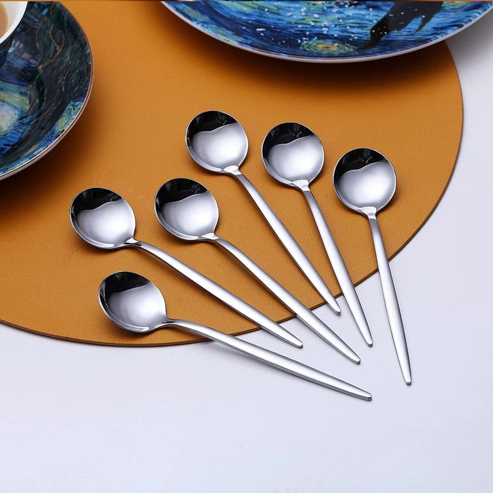 Coffee Spoons Set of 6, Kyraton Stainless Steel 5.1" Demitasse 1.Silver Description Coffee Spoons Set of 6, Kyraton Stainless Steel 5.1" Demitasse Spoons, Tiny Espresso Spoons, Small Mini Coffee Spoons, Dishwasher Safe Includin 6 Pieces Stainless Steel Coffee of premium high quality stainless steel, BPA free / lead free, Rust-resistant, sturdy and durable for of High Quality Stainless Steel, Strong Anti Rust, Lead free and nikle free Healthy for your everyday are a beautiful decoration of you table top, make your dining experience greatly improved.These mini spoons have a very high class, elegant and luxurious appearance. They are very good choices for daily use or as gifts; they are very suitable for family gatherings, parties, weddings and other special spoon made of high quality stainless steel is very durable. Easy Clean and Dishwasher Safe. Features: Includin 6 Pieces Stainless Steel Coffee Spoons. Made of premium high quality stainless steel, BPA free / lead free, Rust-resistant, sturdy and durable for years. Made of High Quality Stainless Steel, Strong Anti Rust, Lead free and nikle free Healthy for your everyday use.They are a beautiful decoration of you table top, make your dining experience greatly improved. These mini spoons have a very high class, elegant and luxurious appearance. They are very good choices for daily use or as gifts; they are very suitable for family gatherings, parties, weddings and other special occasions. The spoon made of high quality stainless steel is very durable. Easy Clean and Dishwasher Safe. Product Details: Is Dishwasher Safe: Yes Material Type Free: Bpa Free,Lead Free Package Dimensions: 9.37 x 3.74 x 0.79 inches Item Weight: 4.9 ounces Manufacturer: Kyraton Item model number: Kyraton Color: 1.Silver Material: Stainless Steel Brand: Kyraton Style: Tableware Number of Pieces: 6 Handling We will ship all orders within 3 business day of payment. Delivery We take pride in offering fast and reliable delivery for your orders! We are committed to getting your products to you as quickly as possible. Generally, we would like to inform you that all orders will be delivered to you within 1-3 business days after processing.However, in some cases, delivery times may vary depending on the buyer's location. Especially in remote or rural areas, the expected delivery time may be extended. In such situations, we do our best to ensure that your order reaches you as quickly as possible.If there are any delays, we will be happy to contact you to explain the situation. Our goal is to enhance your satisfaction with our fast delivery times. We work diligently to ensure that your order arrives safely.Trust us and enjoy our speedy delivery! Return Policy All items qualify for returns within 30 days of receipt. Buyer is responsible for return shipping on any item that is not damaged. Feedback We take our reputation seriously, we buy and sell online, so we understand the value of trust. If you are unsatisfied with your order, please contact us and we will work with you to resolve it to your satisfaction.