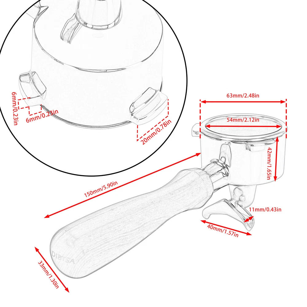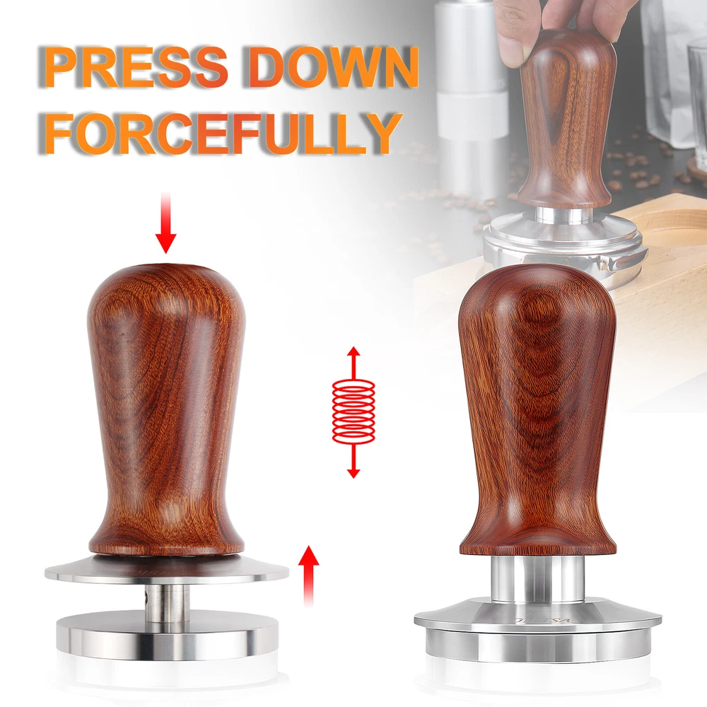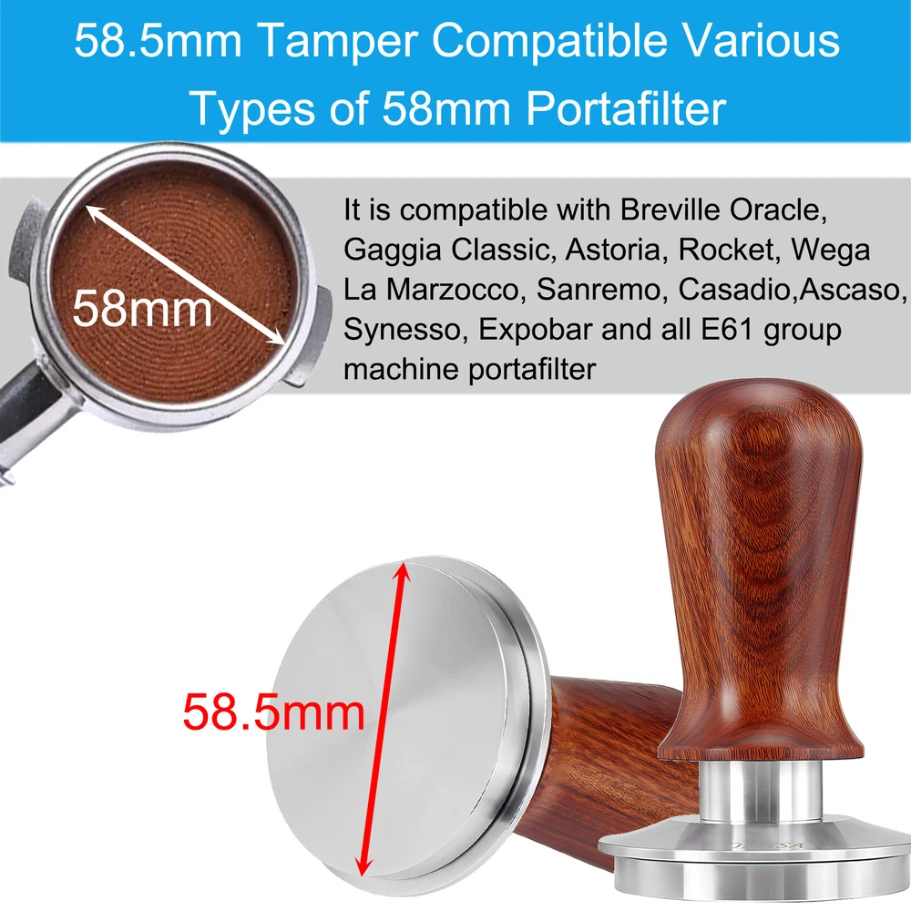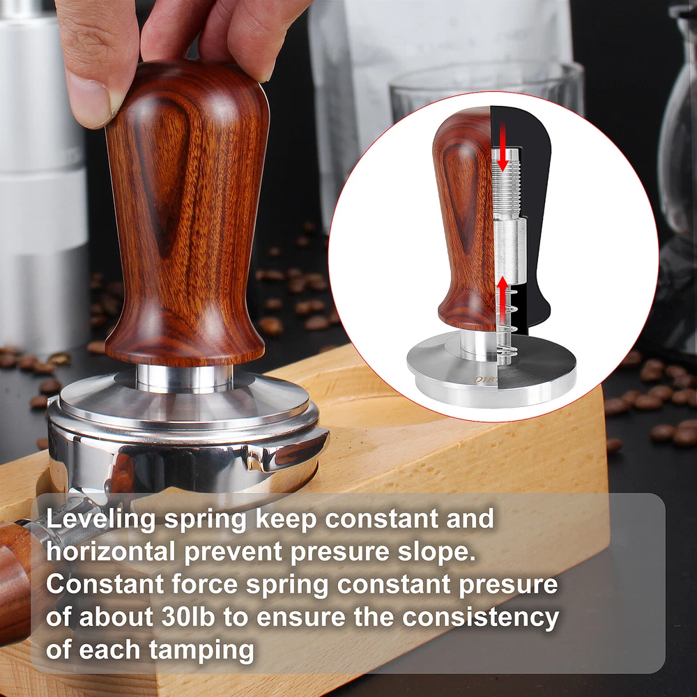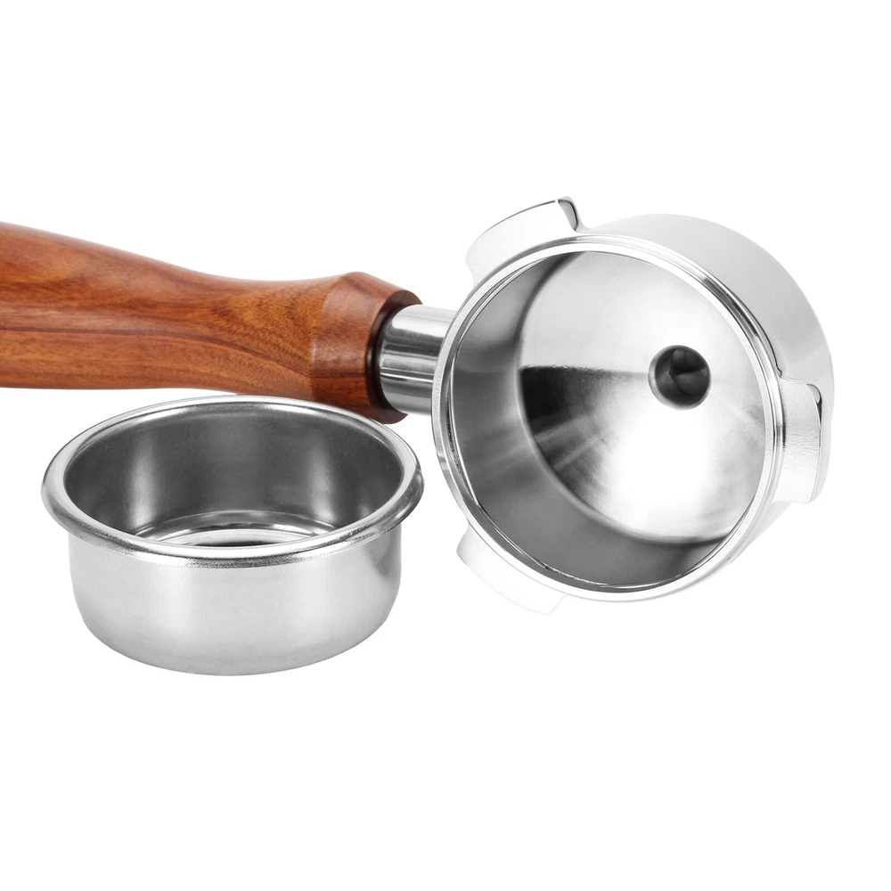Coffee Tamper Espresso Portafilter For Breville BES810BSS BES840XL RM-BES870XL 54mm Portafilter --54mm Portafilter For Breville With Double Spouts: this espresso machine replacement parts is compatible with Breville RM-BES870XL, BES878BSS, BES840XL, BES840CBXL, BES840BSXL, BES810BSS. --Portafilter With Split Spouts: This coffee portafilter is design with double spouts, which allows you to make two espresso cups at the same time without coffee residue. --304 Stainless Steel Portafilter Basket: This 54mm portafilter filter basket is made of food-grade 304 stainless steel, its exceptional resistance to oxidation, corrosion, and rust, which ensures that your coffee stays free from any unwanted impurities. --Detachable Espresso Portafilter: the filter basket and wood handle of this portafilter can be disassemble, convenience to clean. 53.3mm Coffee Tamper --53.3mm Tamp Base: Espresso tamper base diameter is 53.3mm, compatible with Breville Barista Express/Barista Pro/Duo-Temp/The Infuser, and most 54mm espresso portafilter baskets --Spring Loaded Coffee Tamper: The Coffee Tamper featuring a 30lb spring, applies direct pressure to your ground coffee, ensuring a consistently balanced espresso shot without the need for additional adjustments. --High-quality: The coffee tamper is made of a SUS304 stainless steel base with an Aluminum alloy handle. It has a detachable design and is easy to clean. --Features A Circular Baffle For Level Tamping: Our tamper's circular baffle guarantees a straight-down press, preventing puck tilting for a vertical tamp. The 30lb spring ensures consistent pressure, saving time for consistently delicious espresso. Description: Material: Solid Food 304 Stainless Steel Base/Anti-slip Wood Handle Color: As pictures shown Base diameter: 54mm Portafilter; 53.3mm Coffee Tamper Package Include: 1 Set (54mm Portafilter+53.3mm Coffee Tamper)