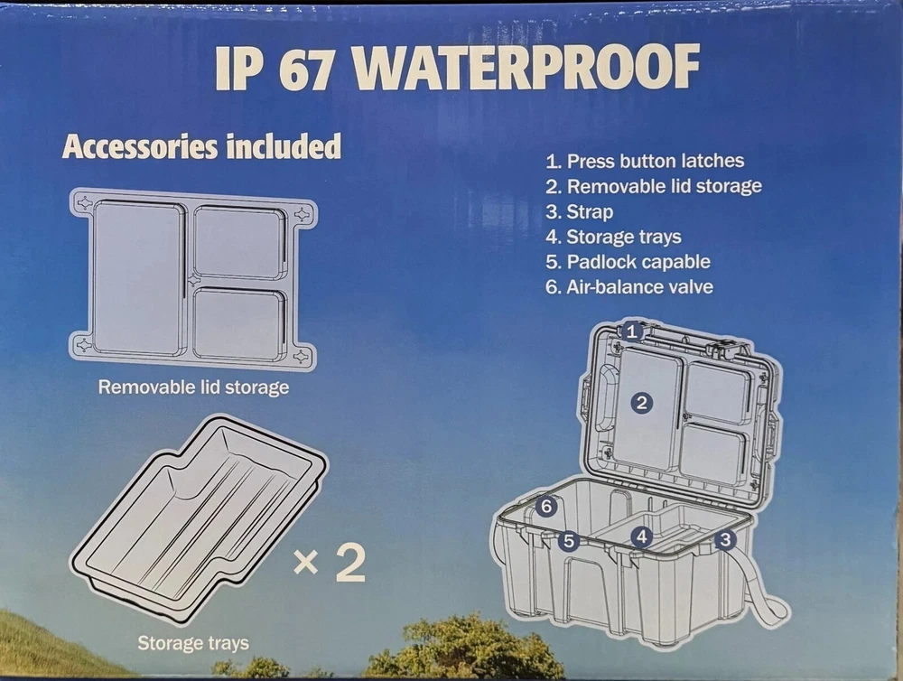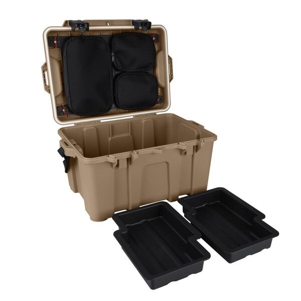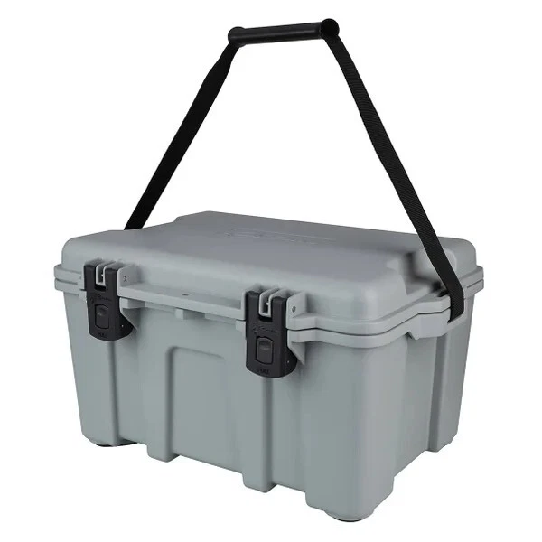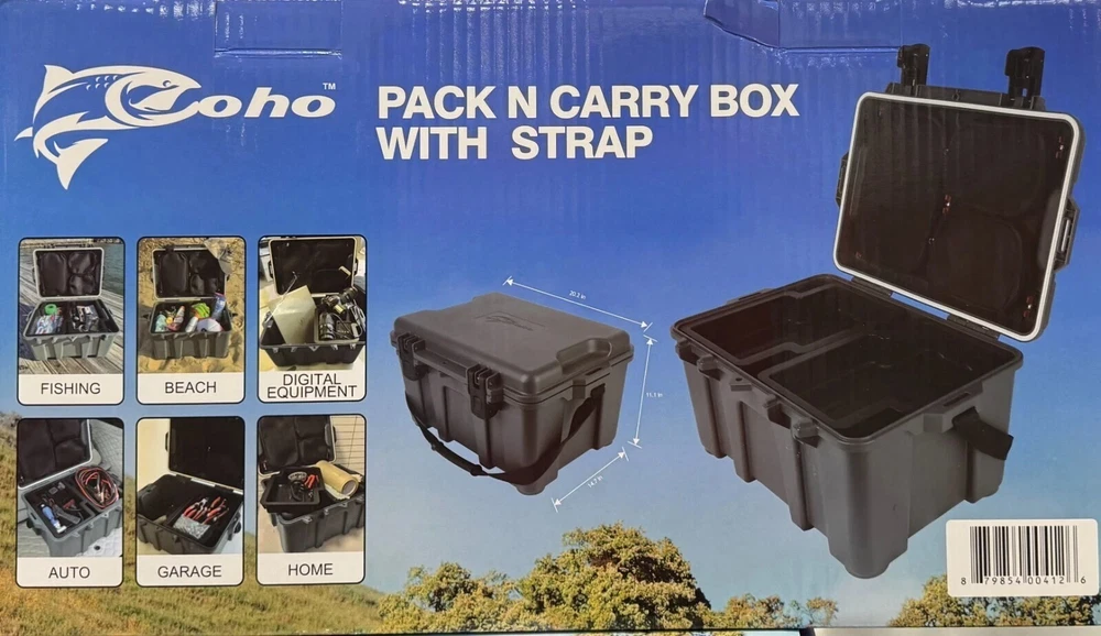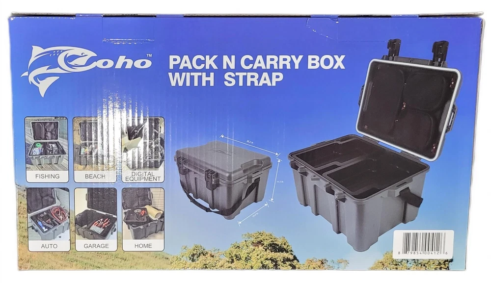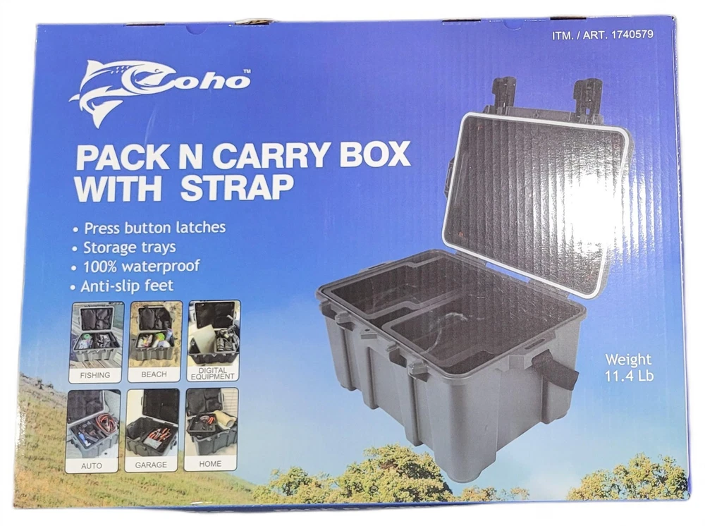 Coho Pack N Carry Storage Box with Strap, 20.2” L x 14.7” W x 11.1” H Please note that the actual color of the product differs significantly from the advertised gray — it appears closer to dark gray in reality. Features: Heavy Duty Latches with Hand Strap and Removable Lid Storage 2 x Storage Trays Padlock Capable Heavy Duty Construction Waterproof Built for rigorous transport, the Coho Pack and Carry Storage Box is tough and can withstand everyday use. Made with heavy duty latches, this storage container will be an organizer for everything from sports equipment to camping supplies or a tool chest. Durable and strong, these storage bins will serve you for a lifetime. Includes: (1) Storage Box (2) Storage Trays Features: Type of material made out of PP Color: Gray or Tan 11lbs