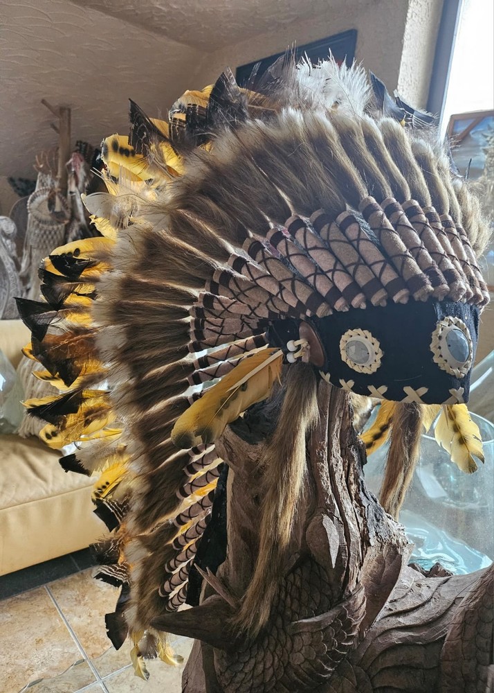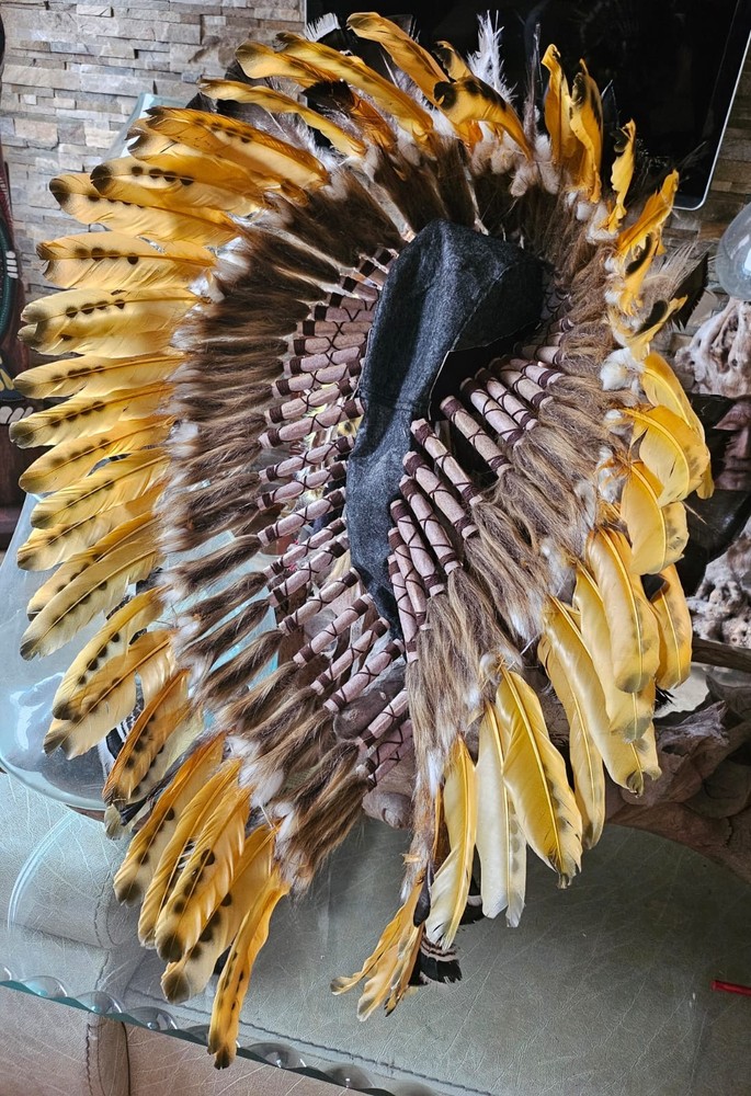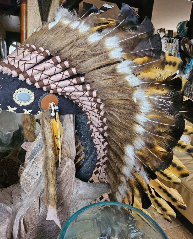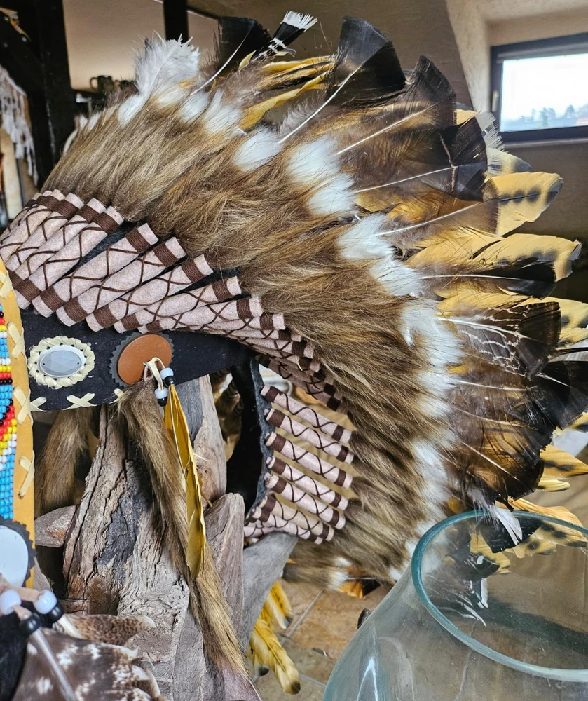 LITTLE BIG HORN THE NEW COLLECTION Beautiful war bonnets Based upon legendary design and the old ways of the indigenous people of Northern America our war bonnets provide you an idea of those days when native pieces of art were part of a life in harmony with nature War bonnet (handmade) Feel the softness of the feathers and become one with an inspiring experience A warbonnet, also called a feather bonnet, is a traditional headdress of the North American Plains Indians. It is a symbol of power, bravery, and honour worn by highly respected warriors and chiefs and had to be earned through special achievements in battle or other outstanding deeds. AAA Because it is handmade items can, colors and design be slightly different from the picture. You have any questions? Please give us a call or send us a mail. We will be happy to help you. Hablamos Español ******