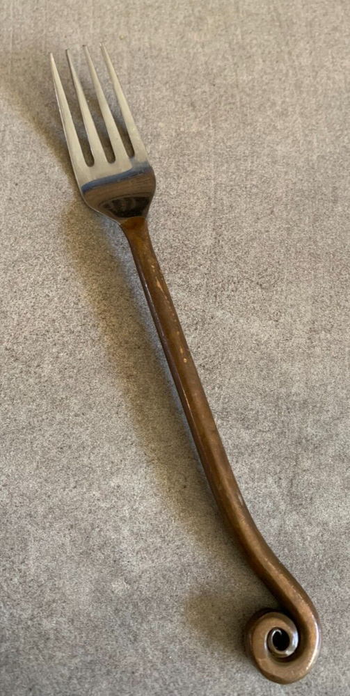 These elegant coiled fiddlehead forks are a stunning vintage find! The copper handles add a warm, rustic charm, and the 8 1/8" size is perfect for serving or display. Despite minor estate wear, they’re in great condition—ideal for collectors or anyone who loves unique, timeless pieces. A beautiful addition to any table setting!