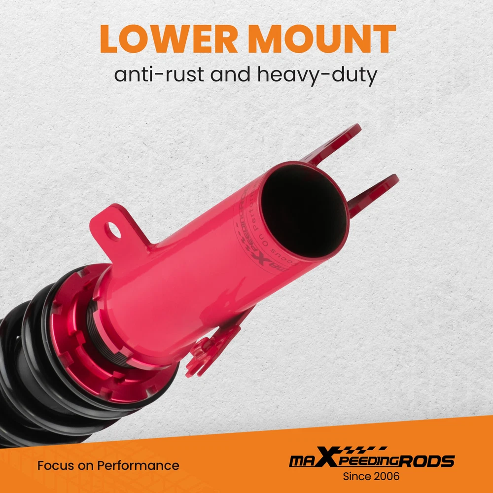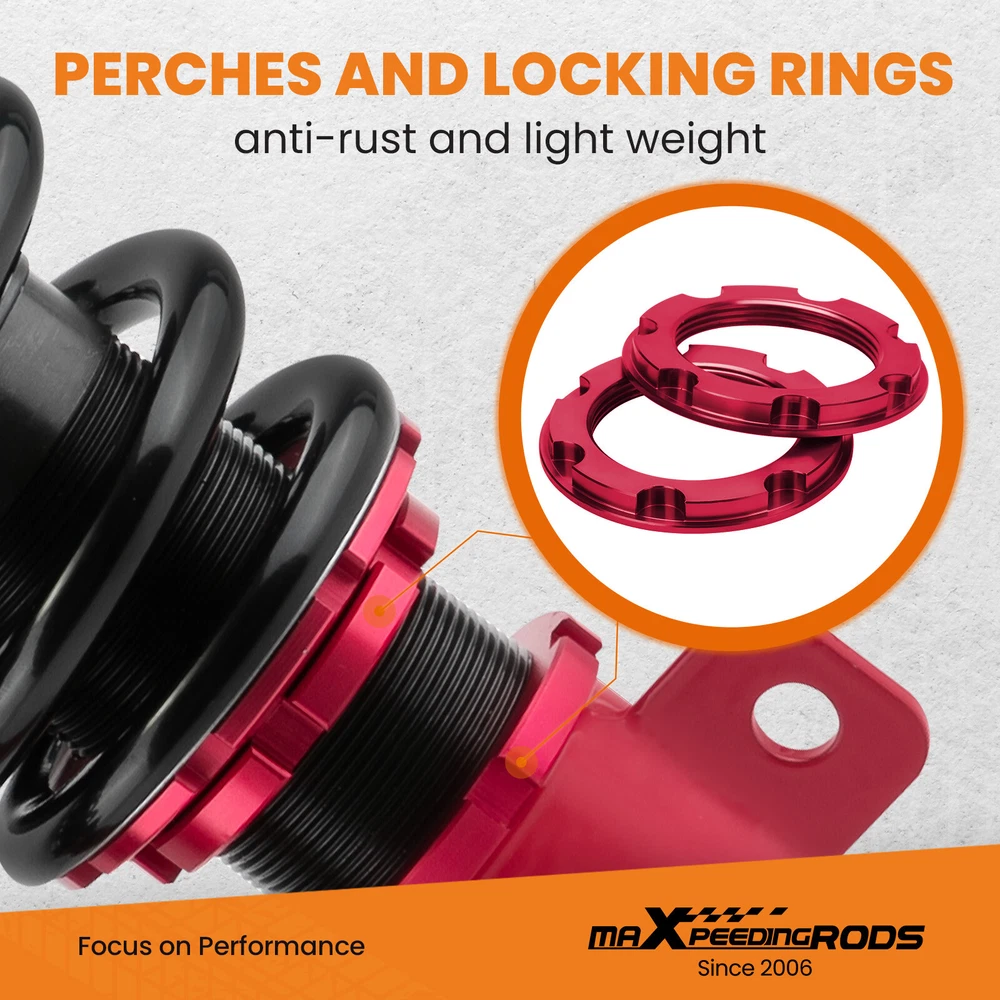 carpartsharehouse Home | Contact us | Promotion Fast hipping International Shipping 30 Days Return Policy Secure Shopping Coilover 24 Level Adjustable Damper Shocks For Toyota Corolla 2009-2018 Most Competitive Price Manufacturer We know our products Easy Return Quick, Simple Guaranteed Fitment Always the correct part DESCRIPTION Maxpeedingrods' street coilovers are designed and developed for all motoring enthusiasts that want excellent handling without sacrificing comfort. This suspension system is ideal for daily driving and occasional, light track use. High quality components are adopted to ensure product durability and stability. Each application is fully test fitted and completely road tested to guarantee all our customers perfect performance and comfort expectations. Features Ride Height Adjustable - Drops From 1 to 3 Inch From Factory Ride Height Damping Force Adjustable - 24 Levels From Soft To Stiff High Rigidity 55CrSi Steel Cold-bent Coil Springs - Over 600k Continuously Stress Test With 0.04% Distortion Rate Top Camber Plate with Pillow Ball Mount Provides More Precise Feel From Suspension And Steering Anti-Corrosion Finish - Anodized Aluminum And Powder Coated Carbon Steel Parts Quality Assured - Full Year Limited Warranty From Date of Purchase Fitment For TOYOTA COROLLA (E140) AZE141L XRS 2009-2010 For TOYOTA COROLLA (E140/E160) ZRE142L LE 2009-2013 For TOYOTA COROLLA (E150/E170) ZRE172L all 2014-2019 For TOYOTA MATRIX (E140) LE 2009-2014 Specification - Top mounts: pillow ball top mount with camber plate front, standard rubber top mount rear. - Damping: 24 levels rebound damping adjustable - Spring rate Front: 10 kg/mm (560 lbs/in) - Spring rate Rear: 6 kg/mm (336 lbs/in) - Spring length Front: 200mm - Spring length Rear: 160mm - Adjustable height: lowering 1-3 inch - Coilover overall length Front: 360mm-455mm - Coilover overall length Rear: 313mm-370mm - Shock type: Twin tube - Spring Preload: 7-10 mm - Color: red Package included 1 x Set of Coilover Spring Kit (2 Front + 2 Rear) 1 x Pair of wrenches for height adjustment ★ 30-day Money Back & 12-Month Replacement Guarantee. Please feel free to contact us if there is any question. Height Adjustable Lowering Kit; 24 Clicks of Rebound Damping Force Adjustment; Independent Ride Height And Spring Tension Settings; High Rigidity 55CrSi Steel Cold-bent Springs; Anodized Shock Body With Anti-Corrosion Coating; Top Camber Plate with Pillow Ball Mount Provides More Precise Feel From Suspension And Steering; Full 1 Year Limited Warranty From Date Of Purchase. SHIPPING US Domestic Shipping Notice - All items will be dispatched within 24hrs(Mon-Fri) Our carrier collects all the parcels at 4:30am PDT, any payment paid after 5:00am PDT will be shipped the next day at 4:30am PDT. If you paid Item Shipped On Est.Delivery Time Before Apr. 1st at 4:30am Apr. 1st at 5:00am Apr. 5th - Apr. 7th After Apr. 1st at 4:30am Apr. 2nd at 5:00am Apr. 6th - Apr. 8th If our estimated delivery time and eBay’s are contradictory,please refer to the standard delivery time of ours. Estimated Delivery Time From To Service Est.Delivery Time US US UPS or Fedex Ground 3-5 Business days Outside of US DHL FedEx 4-7 Business days Please provide the following shipping information for your order Otherwise your shipment will be deferred. We are not responsible for any shipping lost caused by wrong shipping information International Shipment For international shipment, we do not cover any import taxes or duties. Import tax is charged by the government, not us. Our item price and shipping cost do not include any import tax which will be charged by the shipping company when you got the parcel. Please be noted that is not the extra shipping fee. WARRANTY We aim to provide you the good buying experience, 30 days return policy is offered in our store. Please follow our return policy before you return any item(s): If you are unhappy with your purchase for any reason, you can return it to us in an un-used condition in the original packaging within 30 days of purchase and we'll give you a refund or exchange. The refund/Exchange will not include postage/eBay costs. Please note you MUST contact us to obtain a Return Authorization Number before returning any part. Any parcel without the Return Authorization Number will be rejected. If your item is faulty or was incorrect, you must contact our sales representative before returning the parcel and we will endeavour to solve the problem effectively. Video or picture is required to show the item condition before we issue the Return Authorization Number. All VehicalPartsLearder products have 2 year warranty (unless otherwise stated) Important notice: 1. Any returned item(s) without Return authorization number will be rejected. 2. Please return your item(s) in original packaging and ensure that all packages are securely wrapped 3. We will not accept responsibility for loss or damage of goods during transit, please ensure that the insurance cover option is taken where possible 4. Upon receipt, all products will be inspected at our discretion in 3-5 business days. Then, the updated result will be informed. If you have made a mistake on purchase and wish to cancel the order before it is dispatched please contact us by ebay message as quickly as possible. Note: All parcel will be collected by carrier at 8:00am on Monday to Friday. F A Q Will this fit my car? We have used the eBay compatibility list as a guide for buyers to use, but the eBay data system is not accurate and incomplete sometimes. Please make sure you have read through the whole listing and paid attention to “note” and “notice”. If there is any uncertain, please use the eBay message to check with our sales first. How much does delivery cost and how long will it take? You can check the delivery cost in the listing “Shipping and payments” section by selecting your country and entering your zip code. If it is not specified, please provide us your shipping address 