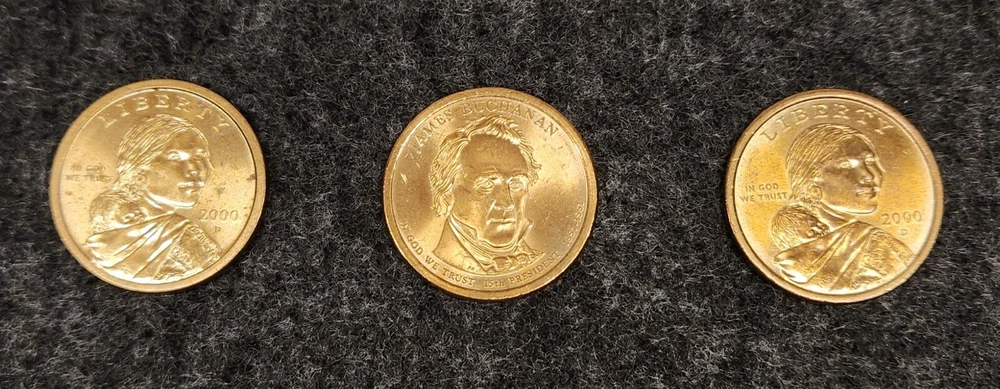 Coin Collection 5 Eisenhower, 2 Kennedy, 2 Sacagawea, 1 Buchanan All in circulated condition. Ungraded. 2 - 1967 Kennedy Liberty Half Dollar 1 - 1972 Eisenhower Liberty 'D' Dollar 1 - 1976 Eisenhower Liberty 'D' Type 1 Dollar 3 - 1976 Eisenhower Liberty 'D' Type II Dollar 1 - 2000 Sacagawea Liberty 'P' Dollar 1 - 2000 Sacagawea Liberty 'D' Dollar 1 - 2010 James Buchanan 'D' Dollar Nice gift idea for a starter collection!