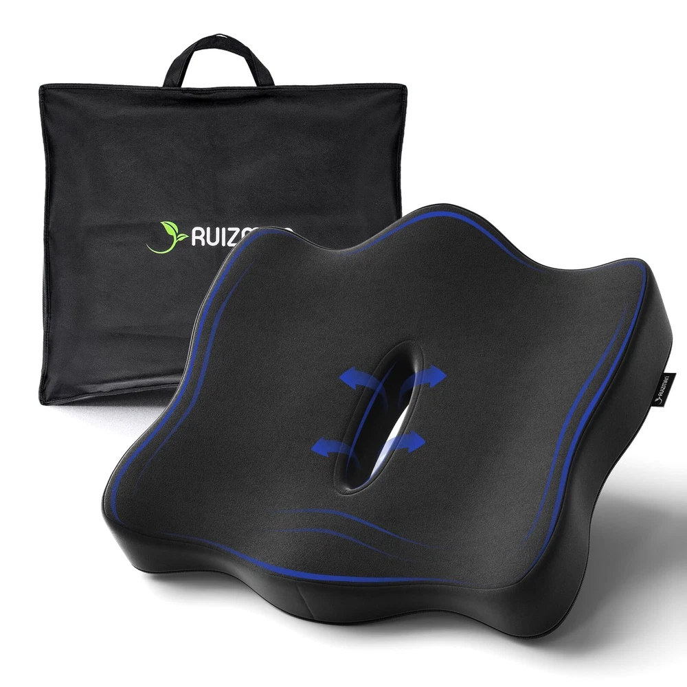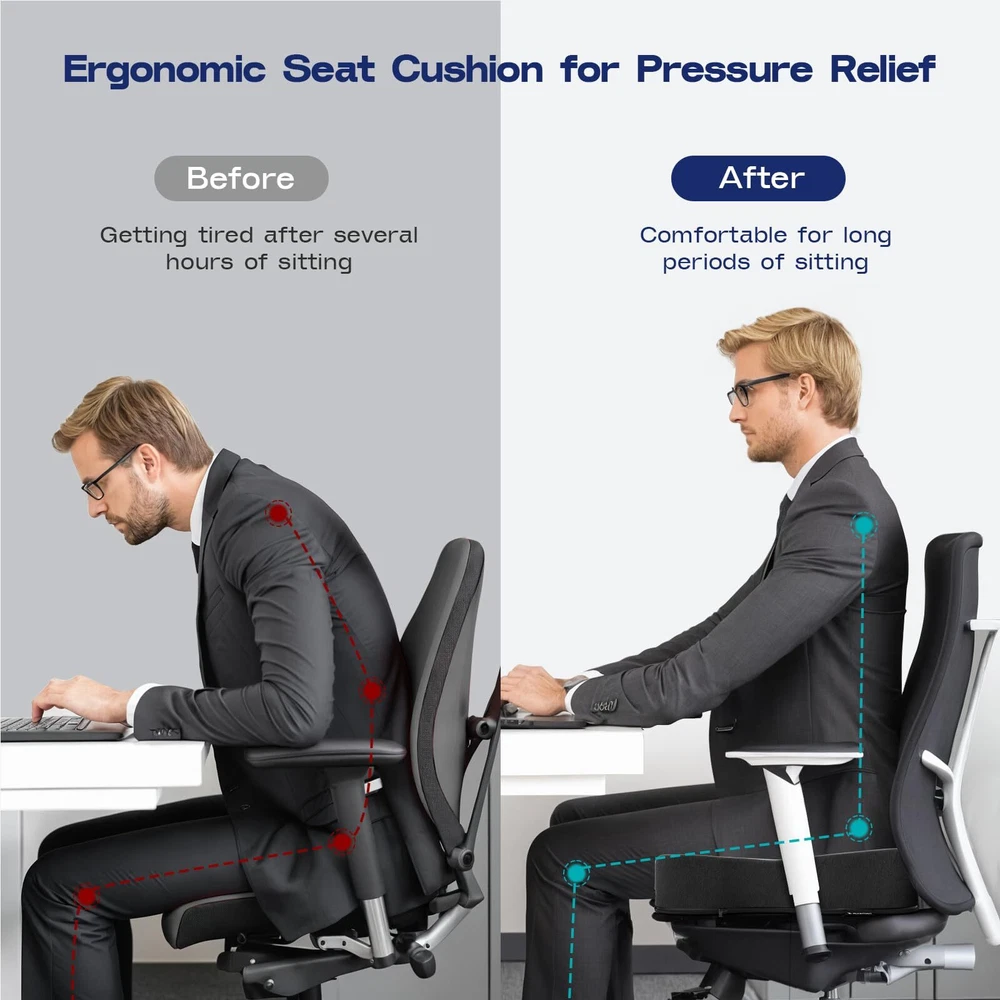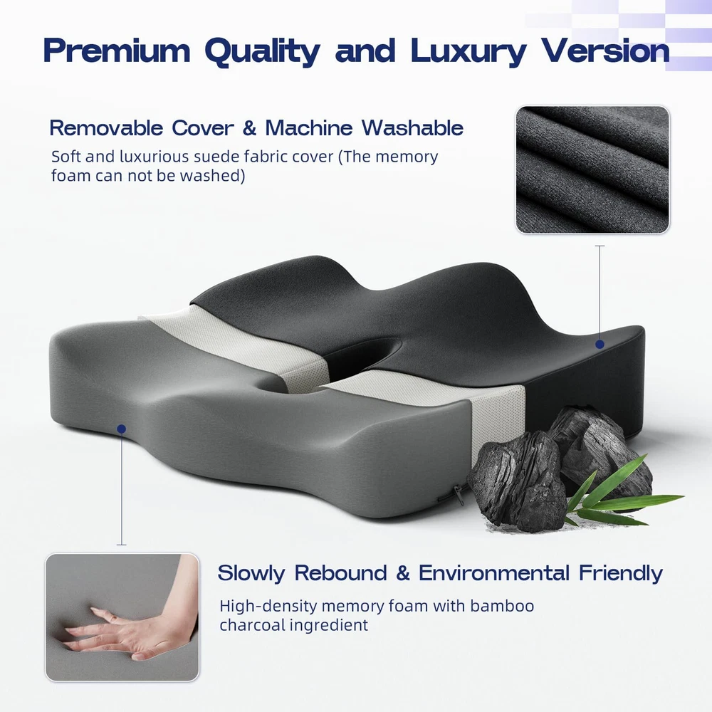 【For Working from Home】 Our orthopedic cushion for sitting is made of premium memory foam, providing proper softness and comfort for long sitting. The memory foam cushion for chair will gradually guide you into a more upright posture, and provide enough support you need to stay comfortable while sitting for long periods. 【For Office & Car Seat】 The size of this office chair butt cushion is 17.7 X 16 inches, it can be able to fit well in most standard office chairs and driver seats. This car butt cushion is compact with a portable storage bag, you can take your comfort seat cushion everywhere—from your office to your car and anywhere else. 【Non-Slip & Machine Washable】 The cover of this memory foam car seat cushion is fully removed with a smooth zipper and machine washable. The bottom has a non-slip surface to ensure the optimum position of the car butt cushion for long trips. This butt cushion for car can also provide a little extra seating height, which may help with sciatic pain relief. 【Supportive & Posture Adjustment】 This ergonomic office chair cushion is designed to support the thighs and hips. Unlike other butt cushion for office chair with large holes, this office chair butt cushion is designed with a properly sized hole to protect the hemorrhoid area and help with sitting posture adjustment. 【Multifunctional Use for All】 memory foam orthopedic seat cushion is supportive but not rigid. Using the memory foam cushion makes sitting for long periods more comfortable than sitting on a seat alone. It is suitable for offices, and working from home. Enjoy the sitting with your friends and colleagues.
