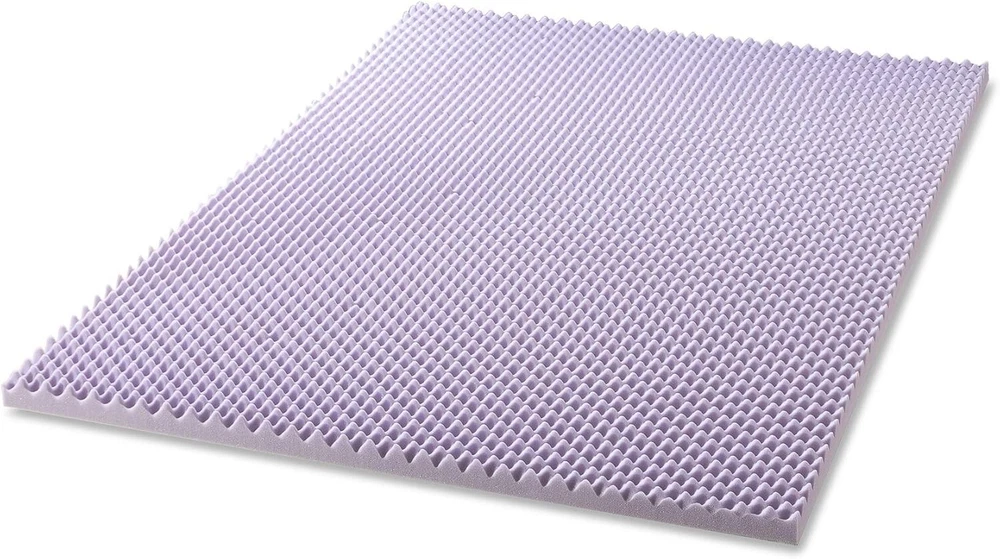 About this item Memory Foam 2-inch egg crate topper with increased airflow Amazing comfort with body-conforming memory foam Soothing lavender infusion to slip you into a relaxing dream Responsive active suspension isolates motion to provide undisturbed sleep for you and your partner CertiPUR-US certified memory foam, 3-year manufacturer's warranty Product Note: Please allow up to 72 hours for the topper to rise