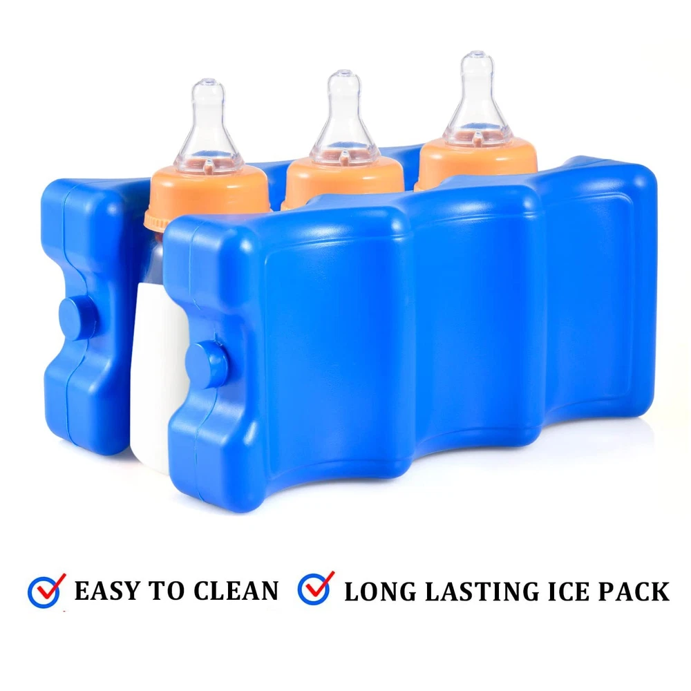 ★ GOOD AND DURABLE: Set of 4 reusable rigid ice packs,each one measures 8.1*3.9*1.8 inches and weights 600 g. Inside ice gel has premium formula and outside is made of food-grade HDPE plastic shell. Reusable, leak-proof and sturdy. It can be brought through TSA security checkpoints when fully frozen or otherwise stored in checked baggage. ★ Ingenious Contoured Design: The Stylish Double-Sided freezer pack has can-shaped contours can make the ice pack and the fresh-keeping product close to the distance. It can keep breast milk baby bottles and your favorite drinks in direct contact with the ice pack – cooling them quicker and longer. ★ EASY FOR USE AND LONG LASTING--Are you tired of cleaning melted ice water? Only need to be frozen at household refrigerator freezer (-10 degrees) for only 3 hours before used. The high performance ice gel inside can absorbs a massive amount of heat and keep cold longer. Formed to fit around breast milk bottle and also canned Soda & Beer. It can keep 6 cans/bottles cold for hours. Stays cold longer than ice with no mess after thawing. ★ SUPER VERSATILE: The long lasting freezer packs are ideal for cans, bottles, beverages and breast milk or anything you need to keep cool in the office, on picnics, road trips, outdoor camping or traveling! Perfect chillers for everyday use in coolers, breast milk bags, lunch boxes and insulated tote bags. ★ QUALITY GUARANTEED--Try the best ice packs available risk-free. You won't regret it. For any quality issues, shoot us an email and we'll fully refund you no questions asked.offers a life-time new replacement, we'll fix it hassle-free!