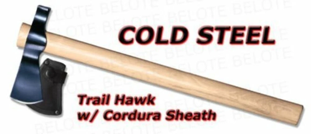 Cold Steel Trail Hawk Tomahawk Axe 22" Overall, Hickory Wood Handle - 90TH New Trail Hawk Construction: 1055 Carbon Steel; Overall: 22"; Blade: Carbon Steel l Standard Edge l Black Finish; Handle: Brown l Wood; Other Info: Drop forged axe head with 21/4" cutting edge. American hickory handle. BulkPacked. Features Details Fast and Free Shipping You're already purchasing the item. Why pay additional for shipping, especially slow shipping? We get your order shipped out within 1-business day and delivered to your doorstep as quickly as possible. Competitive Pricing With our dynamic pricing model, our prices are always competitive. Our prices are some of the lowest that you will find on the internet. Rest assured that you're getting a good deal when purchasing with us. 30-day Money Back Guarantee We are committed to making sure that you leave this transaction satisfied. If you're unhappy with the product for any reason, you may return it back for your money-back or a replacement within 30 days. No questions asked!