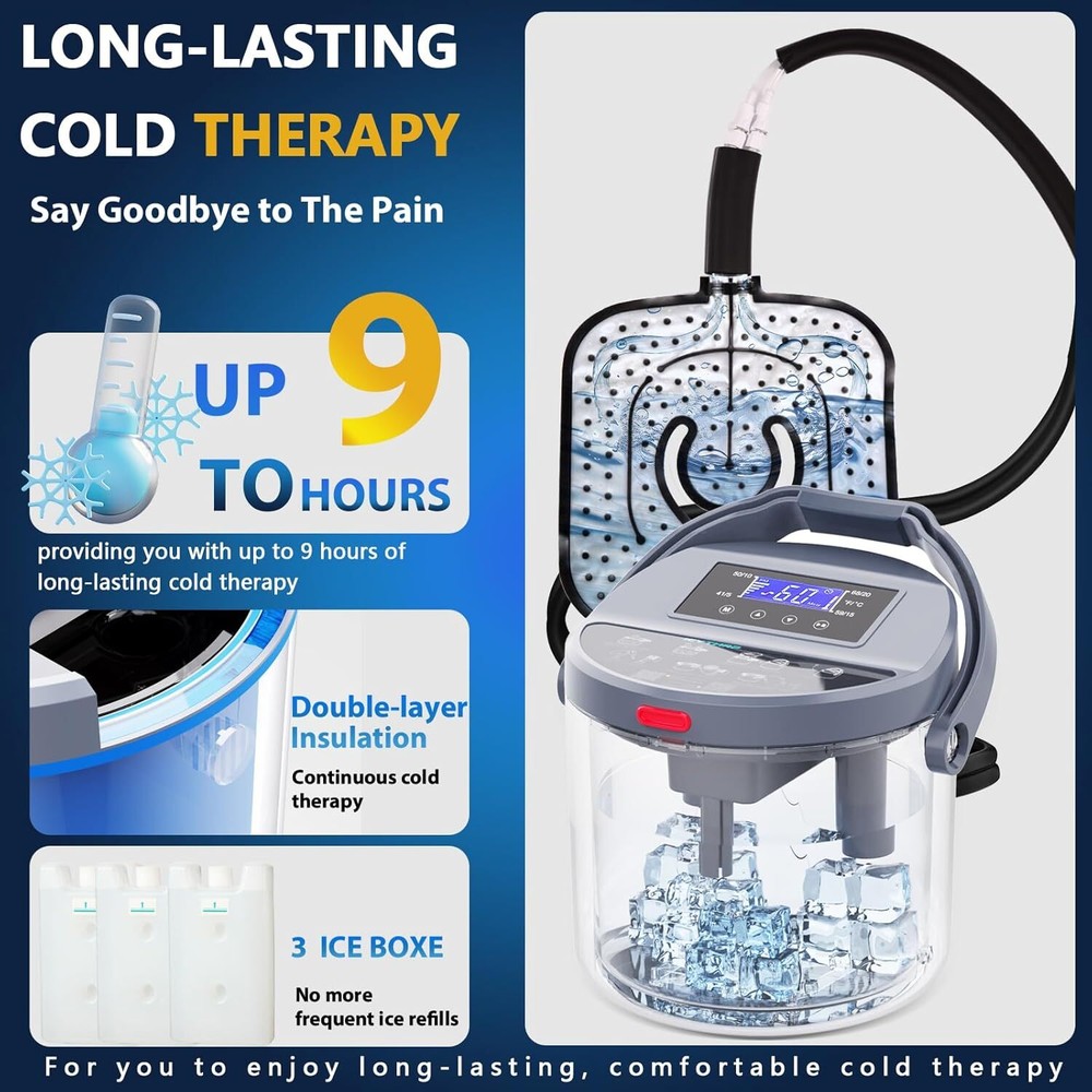 This cold therapy machine is a game-changer for post-surgery recovery! The adjustable timer and steady cold circulation provide amazing pain relief for knees, shoulders, or ankles. The compression pad adds extra comfort while reducing swelling. It's easy to use, quiet, and way better than constantly changing ice packs. Highly recommend for anyone recovering from surgery or dealing with joint pain!