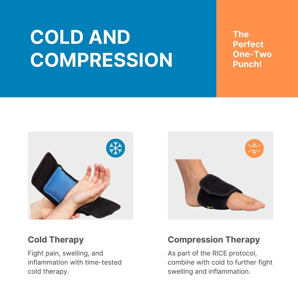 Indulge yourself after a long day. The Cold Therapy Wraps are versatile gel packs with adjustable straps that provide gentle and targeted compression and cold therapy on hands and feet. Ideal for: low heel pain and Achilles pain, ball of foot pain, low ankle sprains and strains, inflammation due to arthritis, hand stiffness, carpal tunnel, arthritis pain, aching muscles and tendon problems, and poor circulation. Includes two (2) Cold Therapy Wraps. MONEY-SAVING 2 PACK: Also see our famous single pack and larger 5" x 10" wrap with 24" strap. SIZE: 3" X 5" with 14" compression strap. Two (2) cold therapy wraps. QUICK COLD RELIEF: gel cold pack chills hand, wrist, or foot--relieving soreness, aching, pain from injury, ball-of-foot, plantar fasciitis, arthritis, & carpal tunnel pain. COMPRESSION THERAPY: helps to alleviate swelling and inflammation and increase circulation. Also lifts plantar fascia tissue to help relieve arch and heel pain. WARNING! For your safety: Please carefully follow heating instructions included with the product.