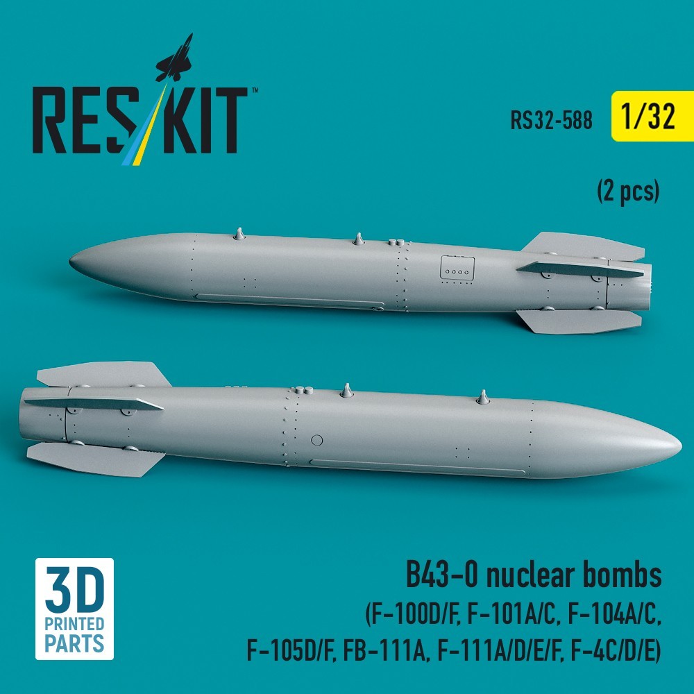 ResKit RS32-0588 β B43-0 Nuclear Bombs (2 pcs) 1/32 This resin ordnance set provides two B43-0 nuclear bombs in 1/32 scale . Used historically on F-100, F-101, F-104, F-105, F-111, and F-4 Phantom II , these 3D printed bombs feature authentic contours, fin assemblies, and stenciling surfaces. Perfect for Cold War dioramas and display models, this set allows scale modelers to represent the strategic strike capability of U.S. aircraft. Easy to paint and weather for realistic effects. πΊπΈ For U.S. Buyers β No surprise fees! Import duties and customs costs are included. Sales tax may appear at checkout. Scale: 1:32 Manufacturer: RESKIT (Accessories for Scale Plastic Kits) Model (SKU): RS32-0588 Country/Region of Manufacture: Ukraine Condition: New in Box Product Specifications Material: Resin / 3D Printed Features: Kit Kit description: Unpainted, Unassembled, Kit do not contain paints and glue Category: Resin & 3D accessories Type of equipment: Aircraft Type of product: Arms and weapons Recommended kit: Any Country of origin: USA Skill level: Advanced Type aircraft or vehicle: F-100 Super Sabre F-101 Voodoo, F-104 Starfighter, F-105 Thunderchief F-111 Aardvark, F-4 Phantom II ............................................... About Us Thank you for visiting our store! All our items are 100% brand new and original . We take pride in offering you great quality at fair prices , so you can shop with confidence. π¬ Got a question or need help? Feel free to reach out β weβre always happy to assist! βοΈ Shop with confidence β safe, easy, and reliable.. Payment All payments are processed securely through eBay and are backed by eBay Buyer Protection . Shipping Every order is sent with a tracking number , so you can easily check its progress at any time. Shipping location: Ukraine Delivery timeframe : Estimated to be 10β26 days Order Handling time : 1β5 business days Returns & Exchanges: We gladly accept returns and exchanges. Please check the item policies for full details.