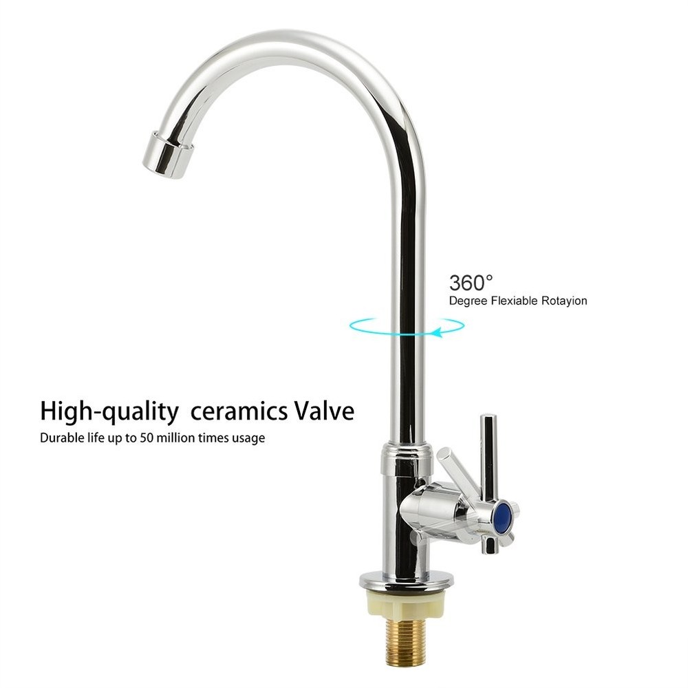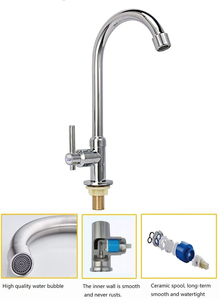 Choose UBETT Faucet Advantage ★Reliable Ceramic Cartridge-Excellent ceramic disc cartridge can survive 500,000 times open & close test. Control precision and no drip off. ★ Pressure Tested-Each faucet is tested at high water pressure to ensure high quality and long durability. ★High-arch 360 Degree Rotatable Gooseneck Spout and Ultralong Spray Hose for Wide Range Clearance of Sink. ★90-day Moeny Back Guaranteed-When you order today, Our world class customer service that's ready and available to address your concerns at any time. Superior lead-free single cold bathroom/kitchen faucet, complies with all State and Federal low-lead regulations. No any harmful substance,safe and healthy for your family. High-arch spout design with 360-degree rotation offers more room for a variety of sink activities.Fashionable linear,high-precision electroplating,smooth and glossy surface,never fading. High-quality ceramics valve,heat/cold and pressure resistance,anti-cracking,anti-leakage,anti-aging.Durable life up to 50 million times usage. Each faucet provide with a cold water hose.All hardware needed for mounting is included with faucet, easy to installation. Best price and quality faucets are widely used in kitchen,bathroom,bars,restaurants,laundry, outdoor lawns, boat,camper,fish clean table and so on.