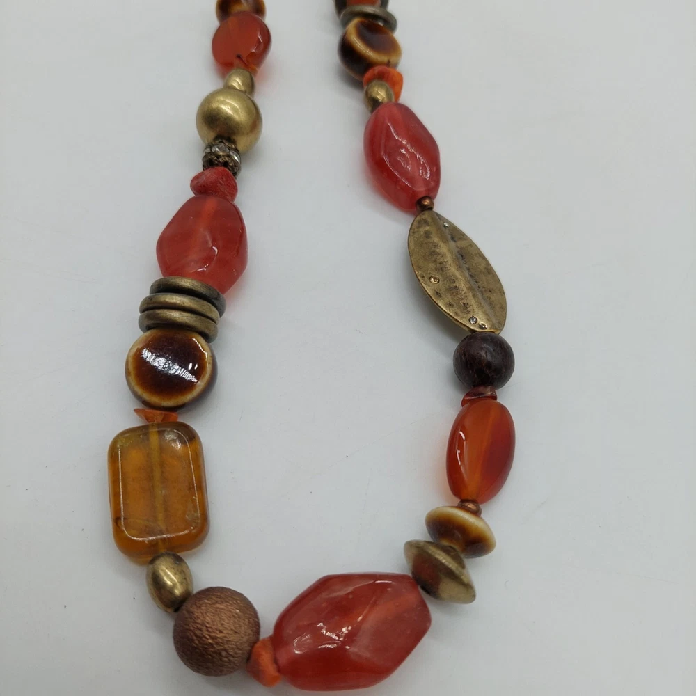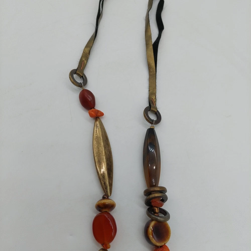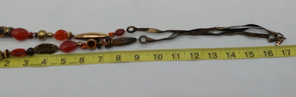 Coldwater Creek Beaded Necklace Ribbon Plastic Metal READ