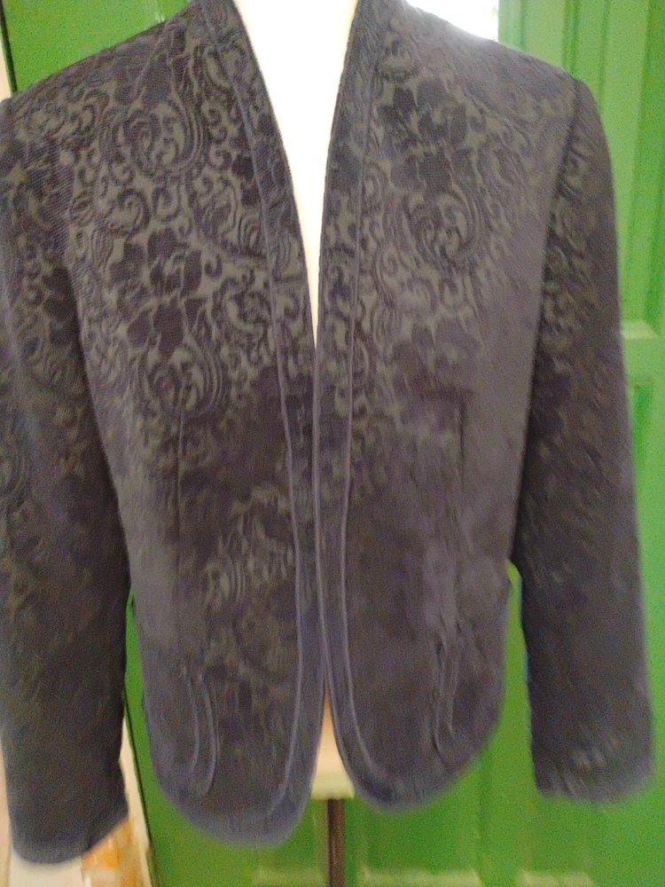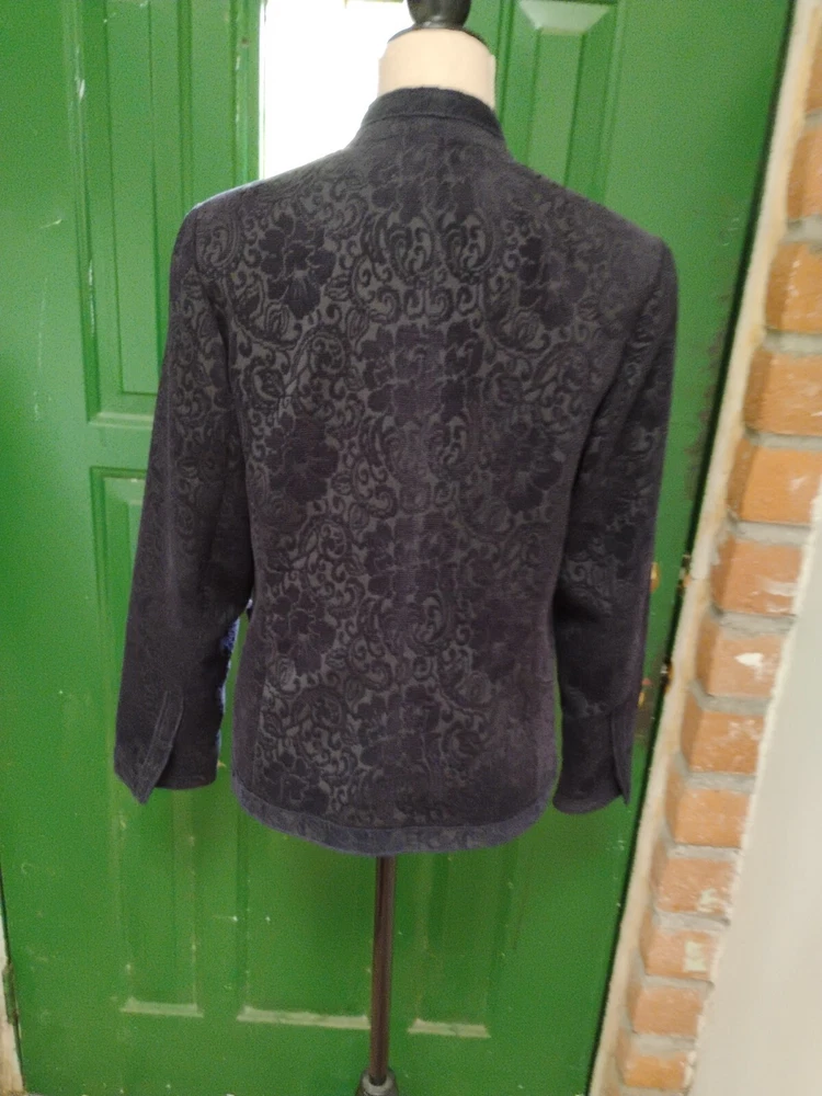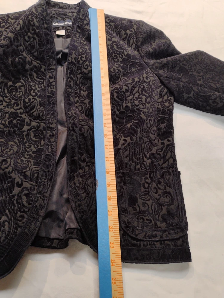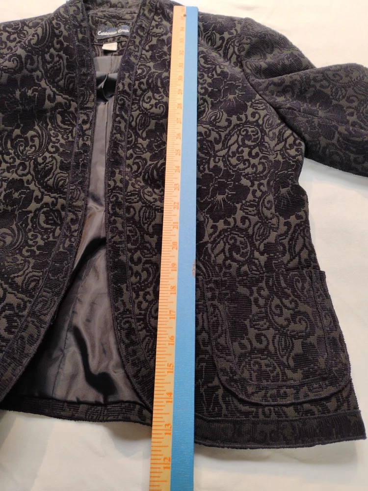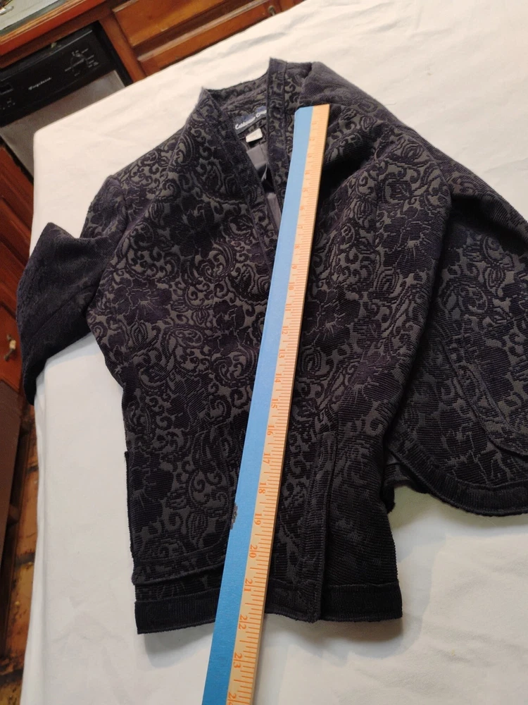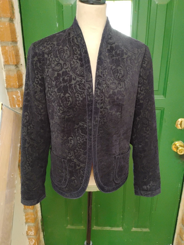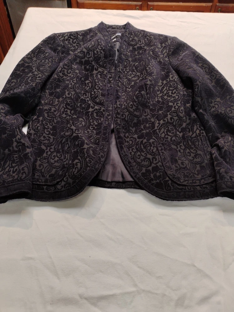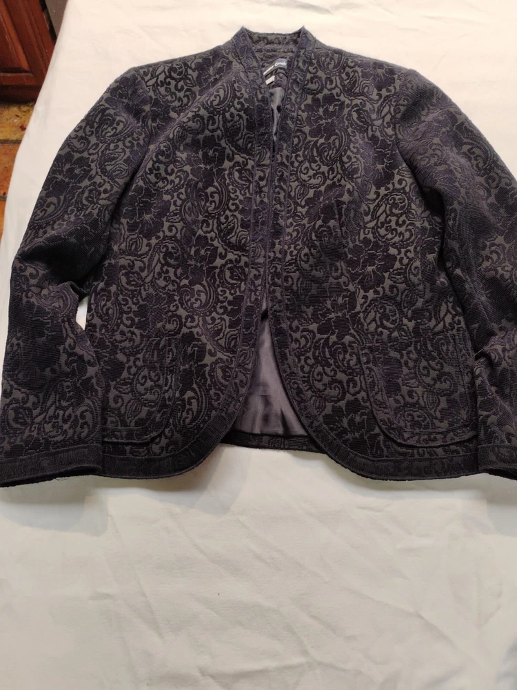 Coldwater Creek Blazer Navy Blue Tapestry Fully Lined Open Front Size S 6/8