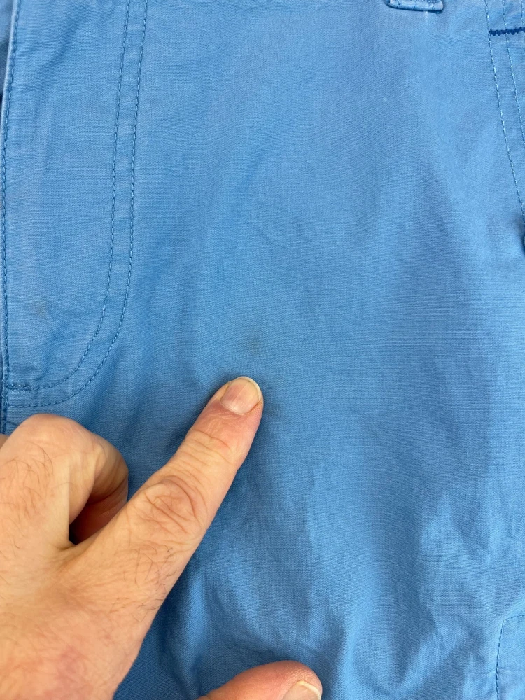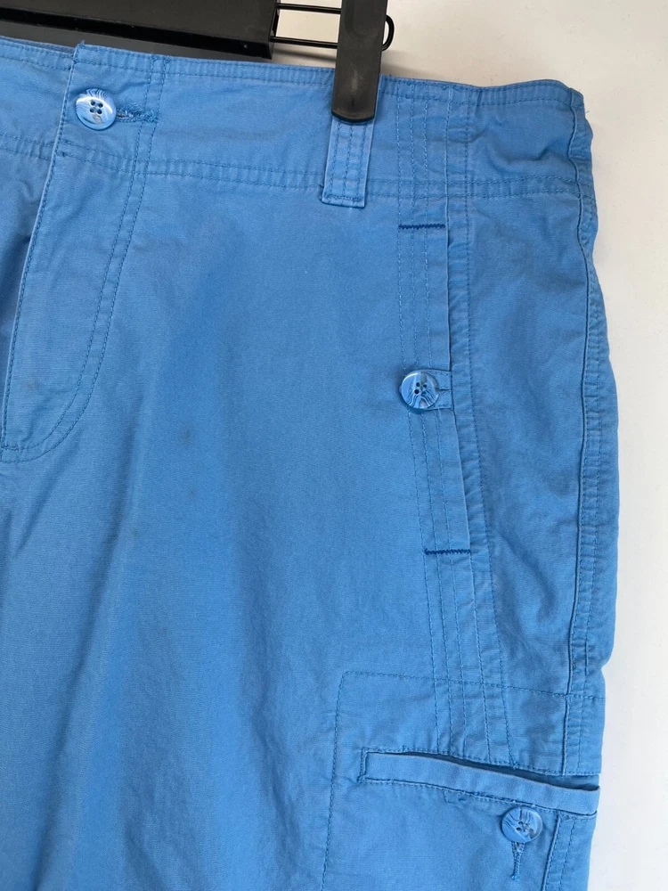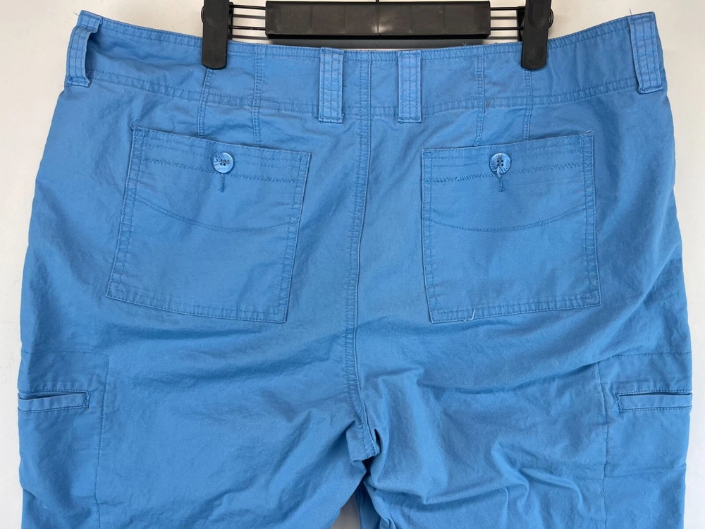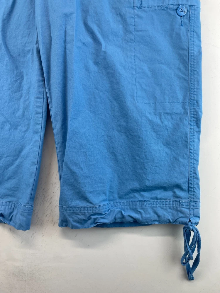 Coldwater Creek Capri Pants in blue, size 16 for women. These pants feature a zip and button closure, with cargo pockets for added convenience. Made of cotton and spandex blend fabric, they have a high rise and a straight leg style. Ideal for travel, casual, or workwear occasions in summer, fall, or spring. The pants have a solid pattern with nature, flower, bohemian, and preppy themes, and can be machine washed for easy care. Good preowned condition with a few dark spots on the front as pictured. These are in otherwise great condition. Please see all photos. For clothing specifically, see photos for all measurements and/or any issues if applicable. Pay close attention to the measurements as the size of the garment may quite possibly be different than the actual measurement(s) due to washing, shrinkage, or stretching as these are used clothes. The size in the title is the size on the tag of the garment. See photos for measurements of actual measurements as they may differ. ALWAYS CHECK THE MEASUREMENTS IN THE PHOTOS. This will remove any questions on measurements as well as always cover the possibility of human error in the listing(s) in the case of a typo or oversight. All clothing and shoes have been washed/cleaned, and comes from a smoke free environment. If shoe trees appear in the photos, they are for photography purposes only to illustrate how the shoes look filled out, and are not included. I am available for questions. I accept or negotiate reasonable offers. Have an amazing day. Thank you.