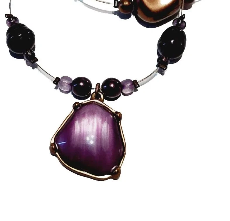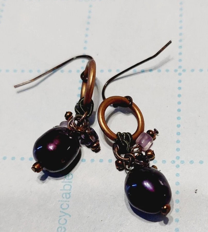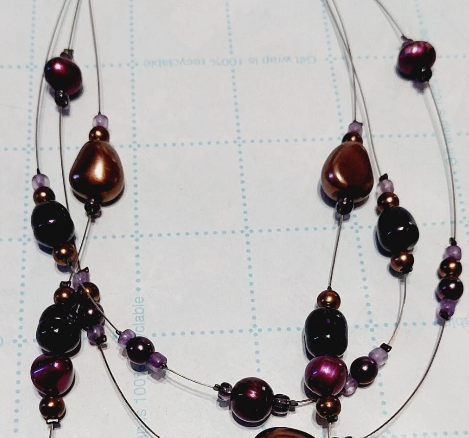Coldwater Creek Necklace & Earrings Purple Bronze Beads Multi Strand Jewelry
