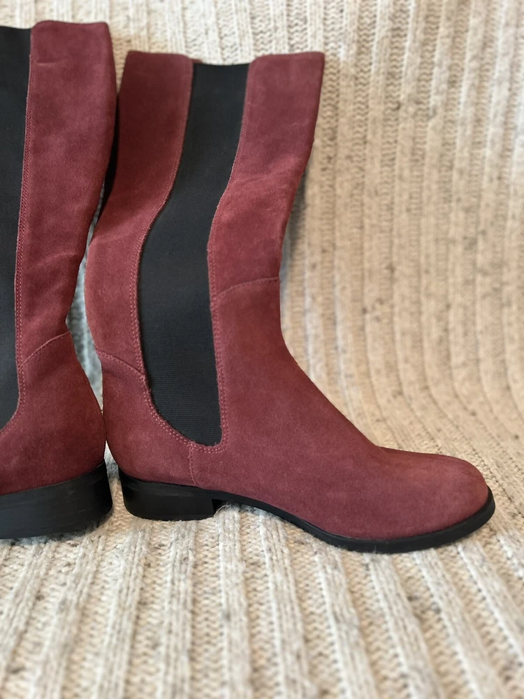 Cole Haan Nike Air Jodhpur Burgundy Suede Knee High Chelsea Style Boots Womens Size 9 B. RARE! Beautiful, classic and quality made boots from a trusted brand! Refer to pictures for color and pattern details. Let me know if you have any questions. Priced to sell! Thanks so much for stopping by.