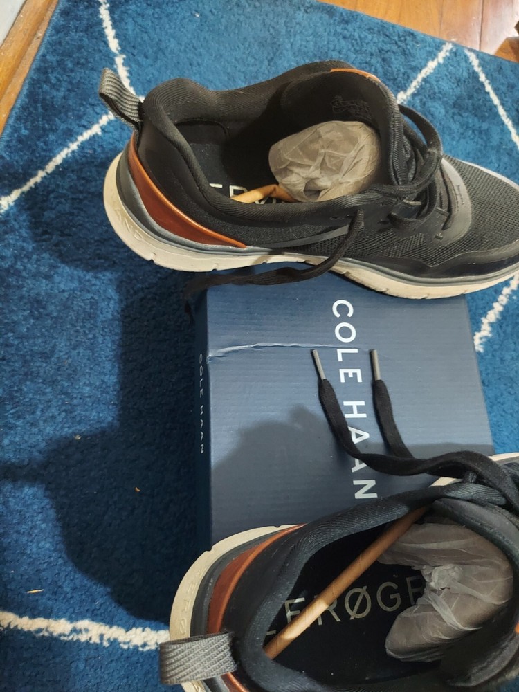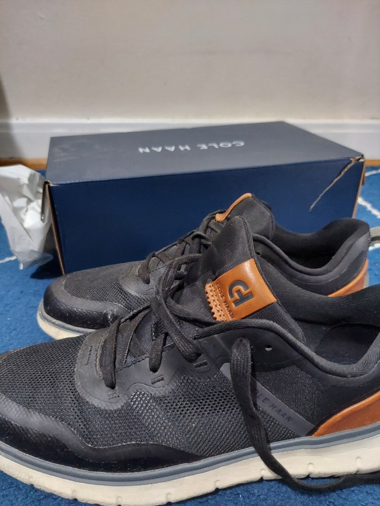 Elevate your everyday style with the Cole Haan Grand Crosscourt Winner sneakers. Designed for the modern man, these shoes feature a sleek geometric pattern in a versatile gray hue, complemented by the comfort of cushioned, lightweight construction. The synthetic upper ensures durability, while the limited edition design adds a touch of exclusivity to your wardrobe.Available in US size 9 and equivalent sizes for AU (9) and UK (8), these Cole Haan sneakers are a testament to sophisticated casual fashion. The Grand product line is known for its quality and these shoes are no exception, promising to be a staple in your collection. Both Shoes Will Be Sold in pair, the original Price is $151 And You Also Get The Handbag too.