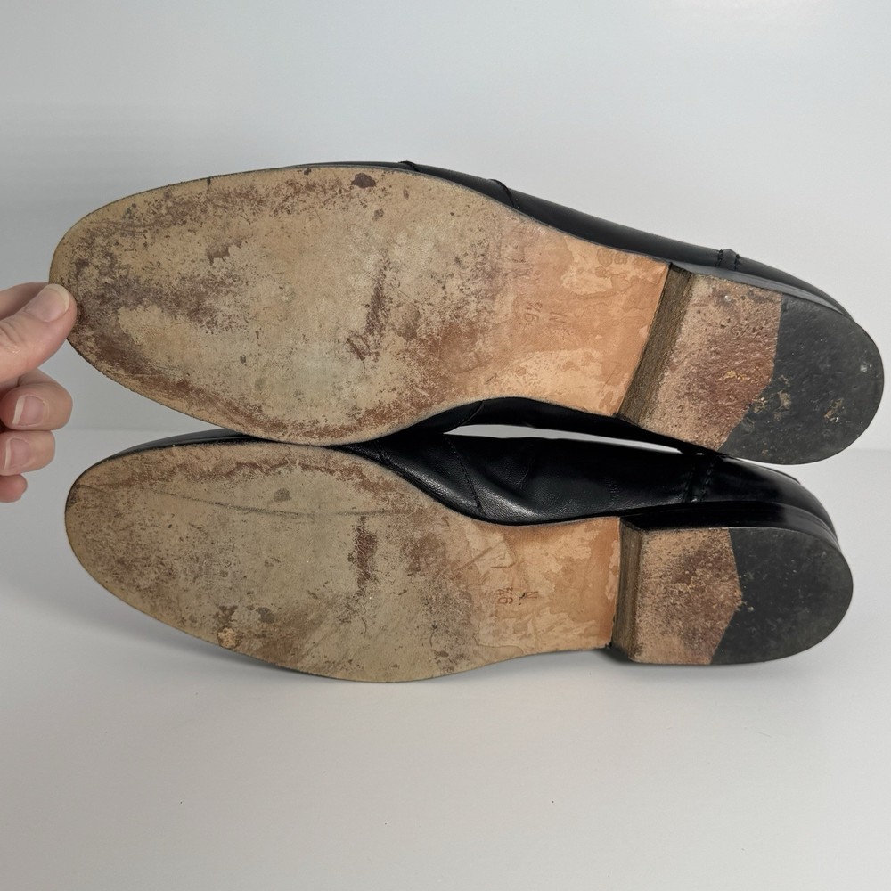 $ 23.76Gucci Men's Size 7 E Wide EU 40.5 Black Leather Slip-On Loafers with Contrast Stitch