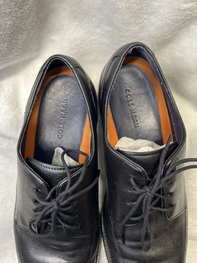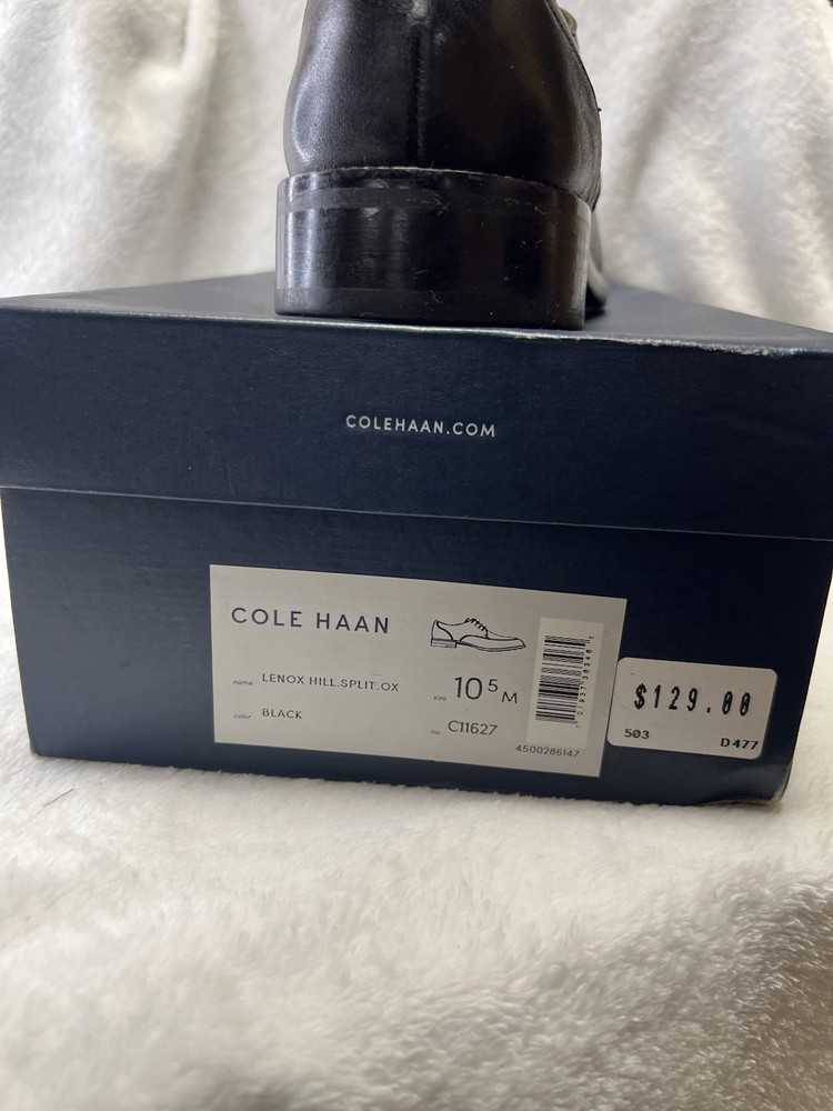 Preowned in Good condition. The Cole Haan Men's Black Leather Lenox Hill Split Toe Derby C71627 size 10.5 M is a stylish and sophisticated dress shoe perfect for any formal occasion. Crafted with high-quality leather and featuring a classic split toe design, these shoes exude a timeless elegance. The Derby style and medium width make them both comfortable and versatile for everyday wear. Made in India, these shoes showcase the Cole Haan brand's signature quality and attention to detail.