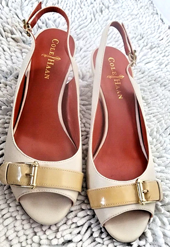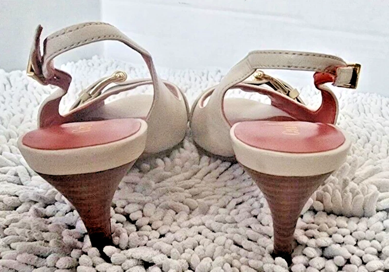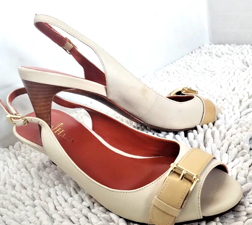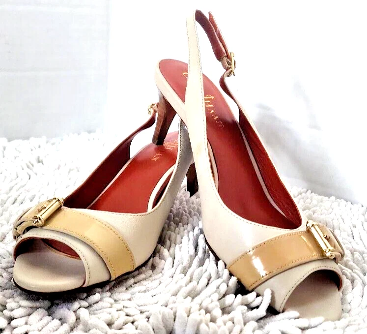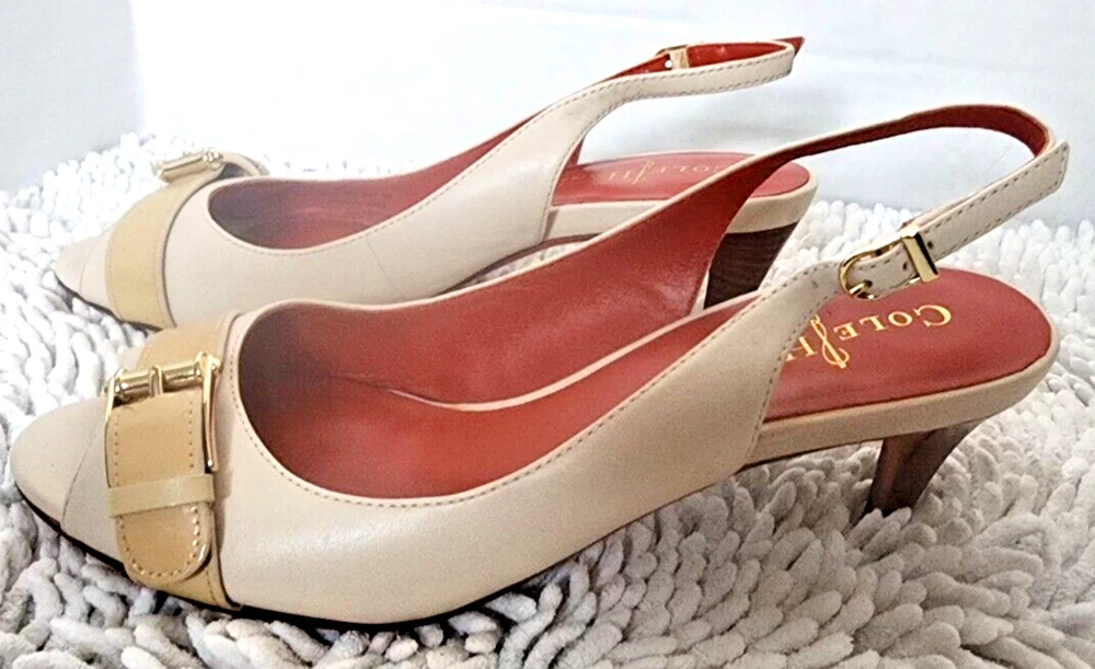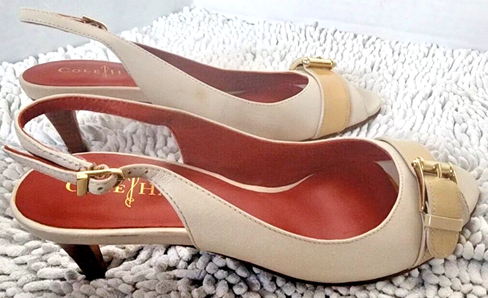 Pattern: Solid Heel Height: Mid (2-2.9 in) Type: Heel Style: Slingback EU Shoe Size: 36 Shoe Width: B Country/Region of Manufacture: China Theme: Going Out, Preppy, Wedding Color: Ivory US Shoe Size: 6 Occasion: Business, Formal, Party/Cocktail, Wedding Season: Fall, Spring, Summer, Winter Closure: Buckle Features: Adjustable Strap, Buckle, Comfort, Cushioned, Non-Slip, Slip Resistant, Toning Personalize: No Vintage: No Model: Nike Air Department: Women Upper Material: Leather, Patent Leather Brand: Cole Haan Toe Shape: Peep Toe Outsole Material: Synthetic Heel Style: Stiletto Customized: No Platform Height: 2 in UK Shoe Size: 3.5 AU Shoe Size: 4.5