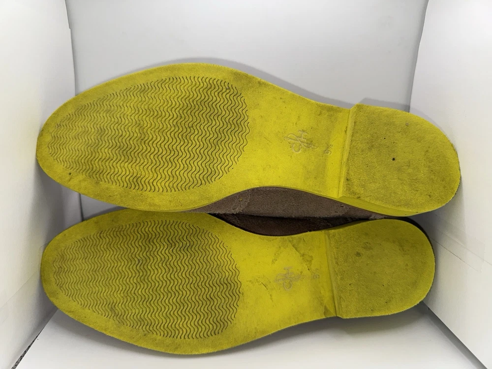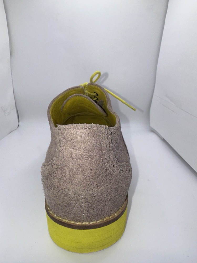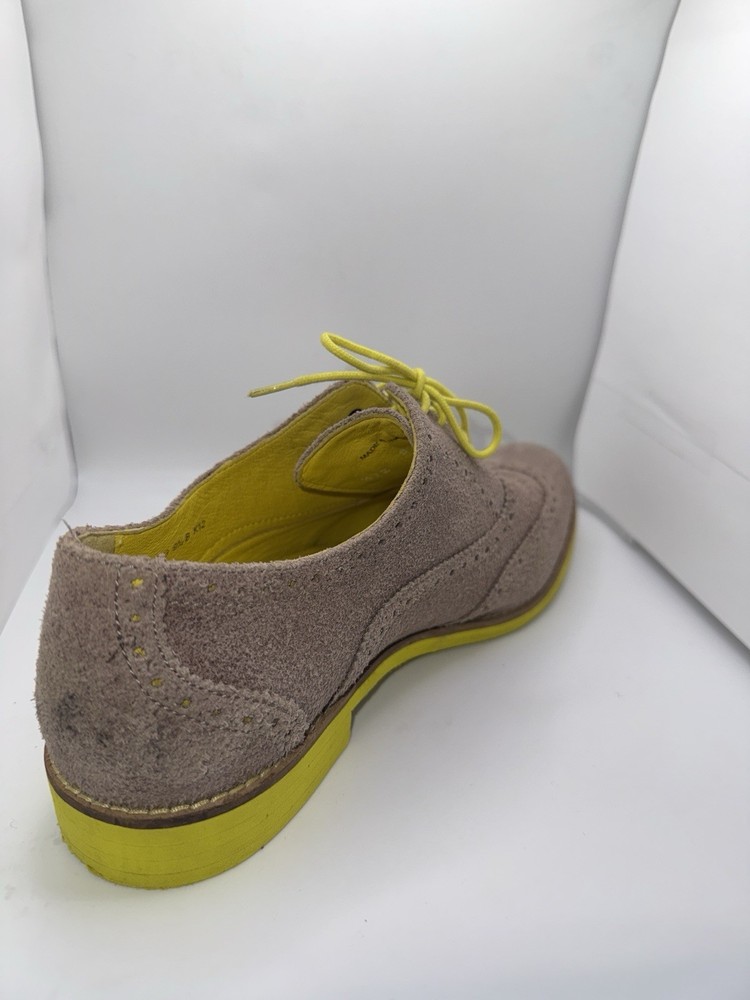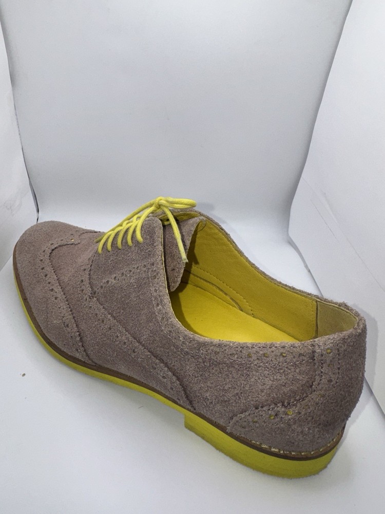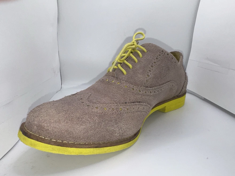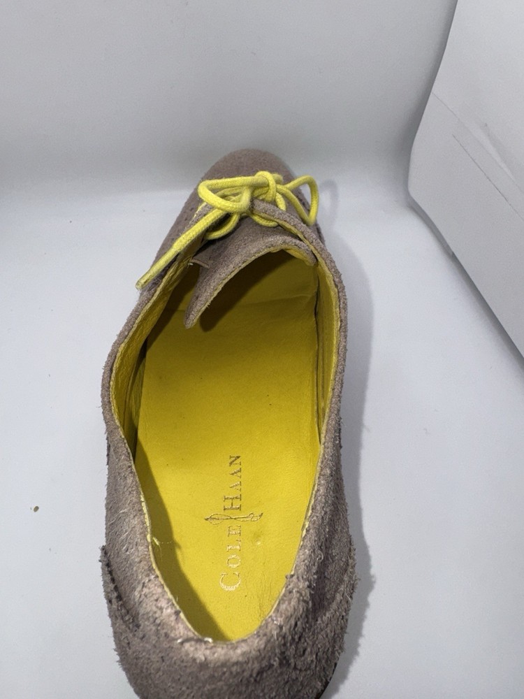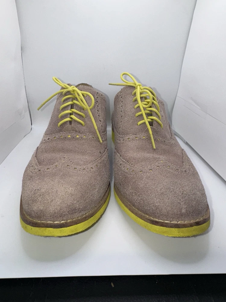Step into bold, modern style with these standout Cole Haan suede oxford shoes, featuring a unique neon yellow interior, laces, and sole for a striking contrast against the soft taupe suede upper. Designed with classic wingtip detailing and a contemporary twist, these shoes effortlessly blend timeless tailoring with fashion-forward color. Perfect for spring and summer styling, they add a pop of personality to both casual and elevated looks. ✨ Details: • Brand: Cole Haan • Style: Oxford / Wingtip Lace-Up • Upper: Soft suede in taupe • Interior & Sole: Vibrant neon yellow • Closure: Lace-up • Features: Brogue perforations, contrast sole, lightweight feel ✨ Condition: Worn only once and in excellent condition. Minimal signs of wear on the soles. Suede remains soft and intact with light natural texture variation consistent with material. ✨ Why You’ll Love Them: A rare, statement-making pair that combines comfort, craftsmanship, and bold design—perfect for anyone who loves standout footwear without sacrificing classic structure.