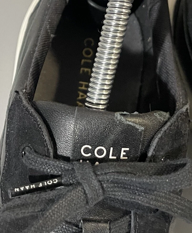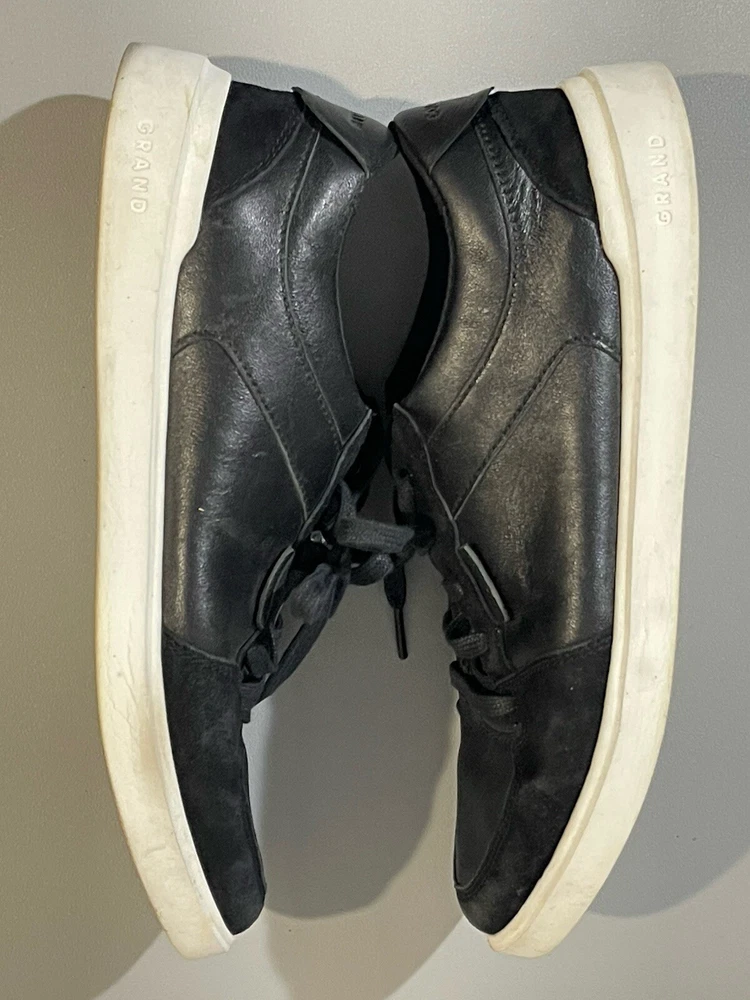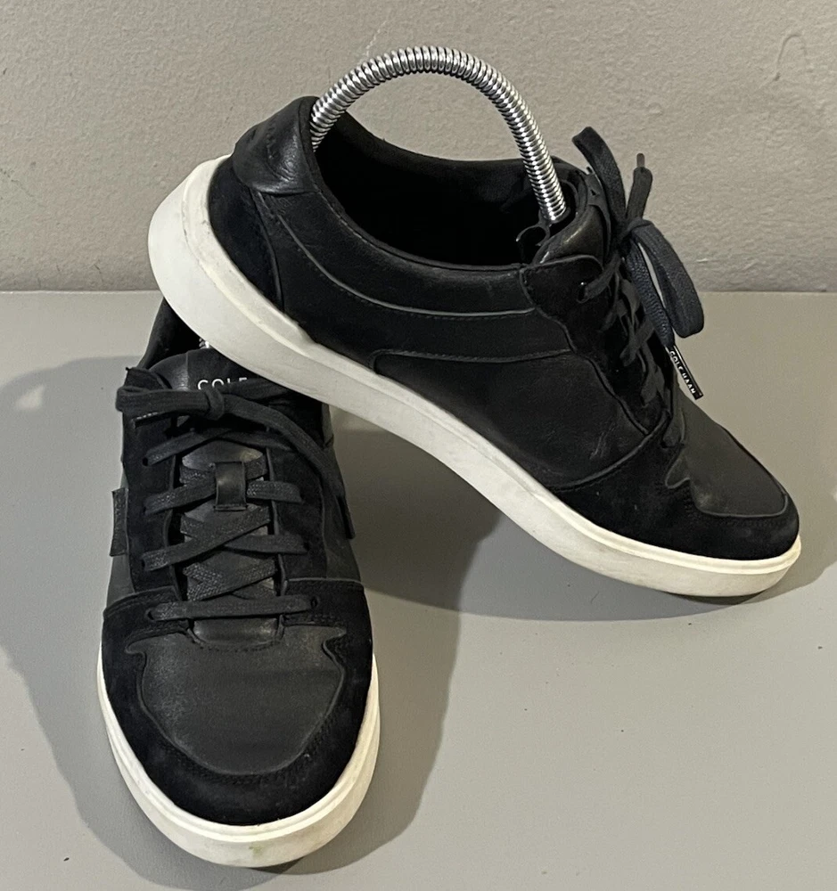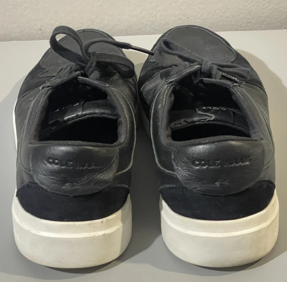***See picture with sign of imperfection, Sold as is** The Cole Haan Women's Grand Crosscourt Modern Tennis Sneaker in size 8.5 is a stylish and versatile athletic shoe suitable for both activewear and workwear. This sneaker features a solid black and white color scheme with a lace-up closure for a secure fit. It is designed with a lightweight and cushioned construction for comfort, making it ideal for activities such as tennis. The upper material is leather, and the cleat type is rubber, providing durability and traction. Perfect for the summer, fall, and spring seasons, this modern sneaker from Cole Haan offers a contemporary twist on a classic style.