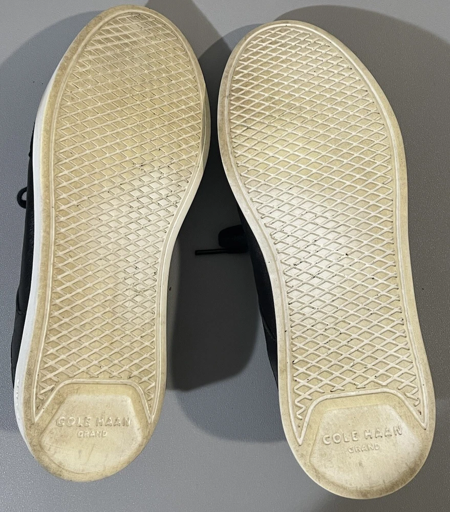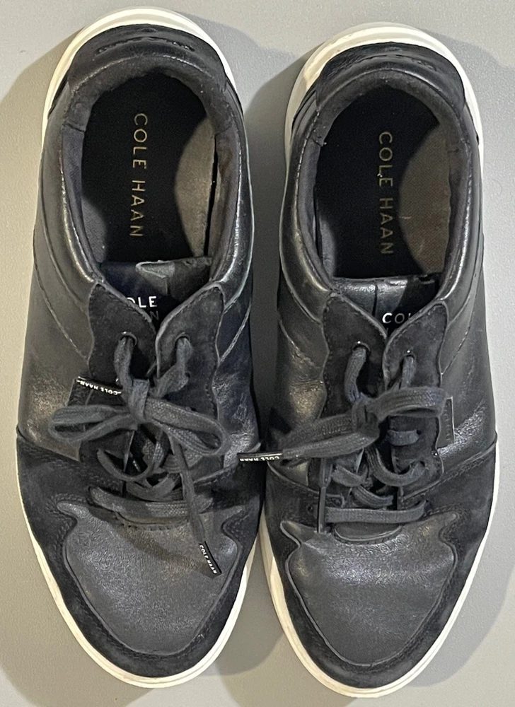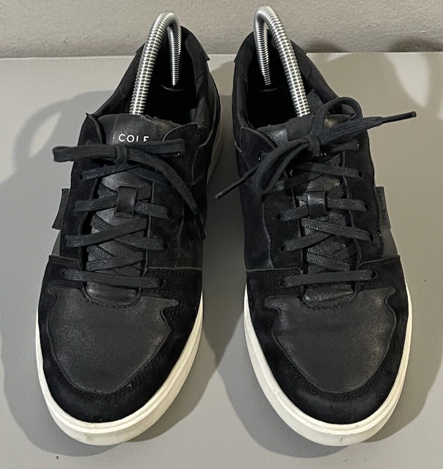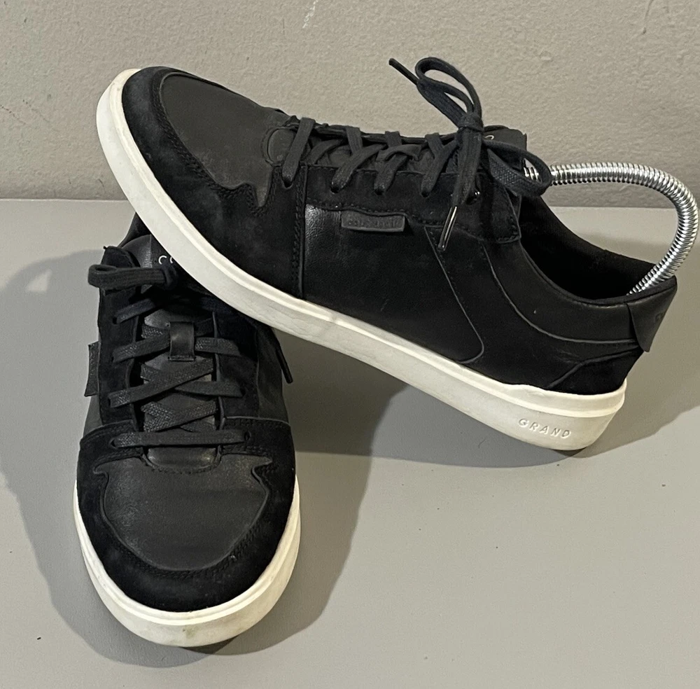 ***See picture with sign of imperfection, Sold as is** The Cole Haan Women's Grand Crosscourt Modern Tennis Sneaker in size 8.5 is a stylish and versatile athletic shoe suitable for both activewear and workwear. This sneaker features a solid black and white color scheme with a lace-up closure for a secure fit. It is designed with a lightweight and cushioned construction for comfort, making it ideal for activities such as tennis. The upper material is leather, and the cleat type is rubber, providing durability and traction. Perfect for the summer, fall, and spring seasons, this modern sneaker from Cole Haan offers a contemporary twist on a classic style.