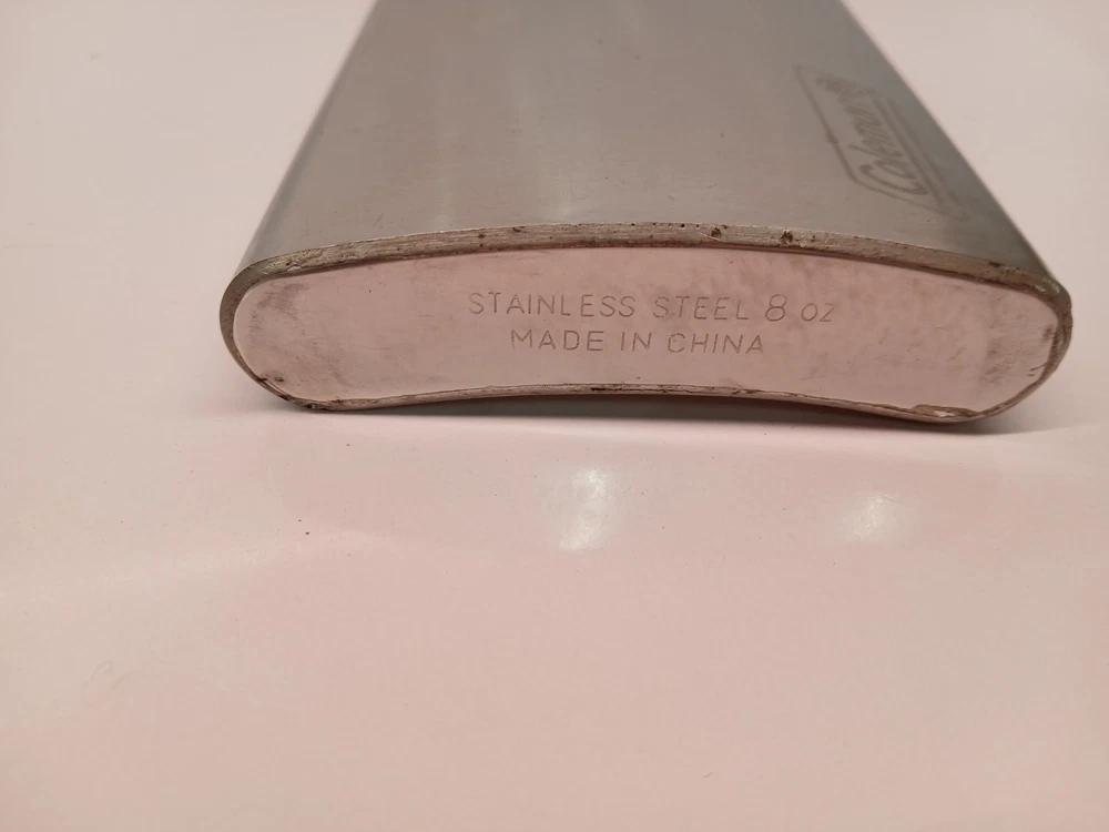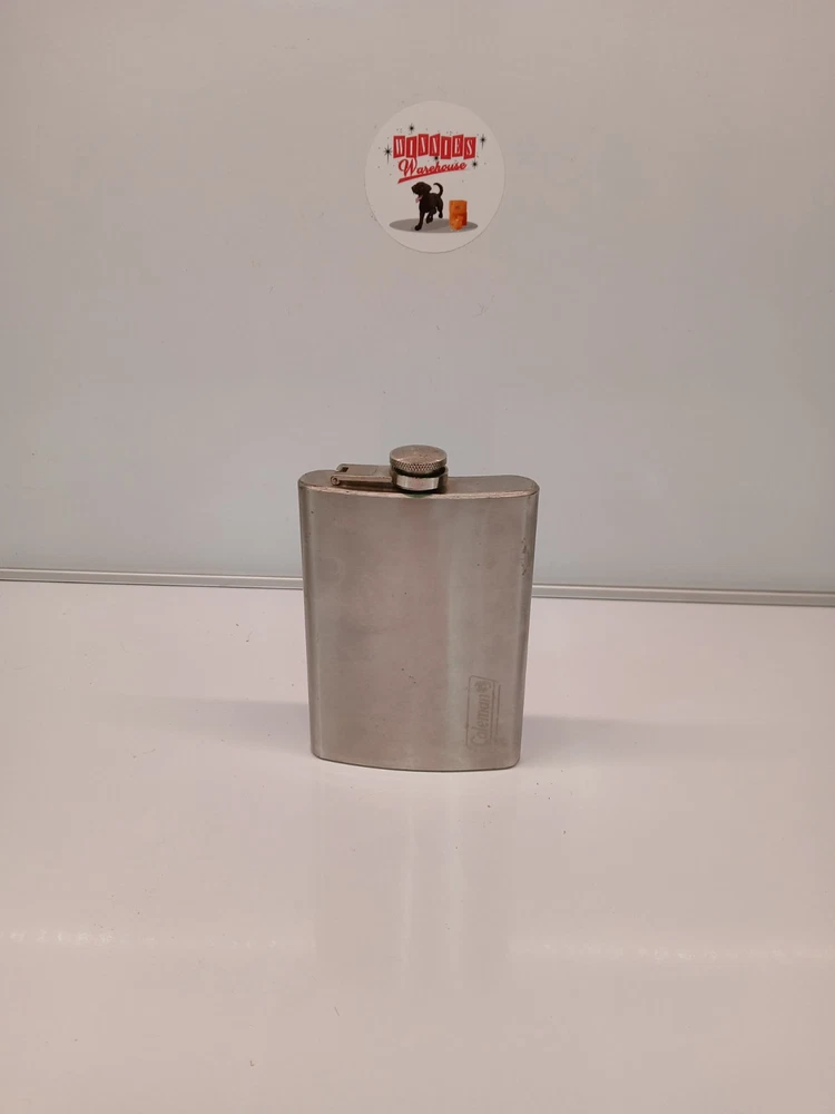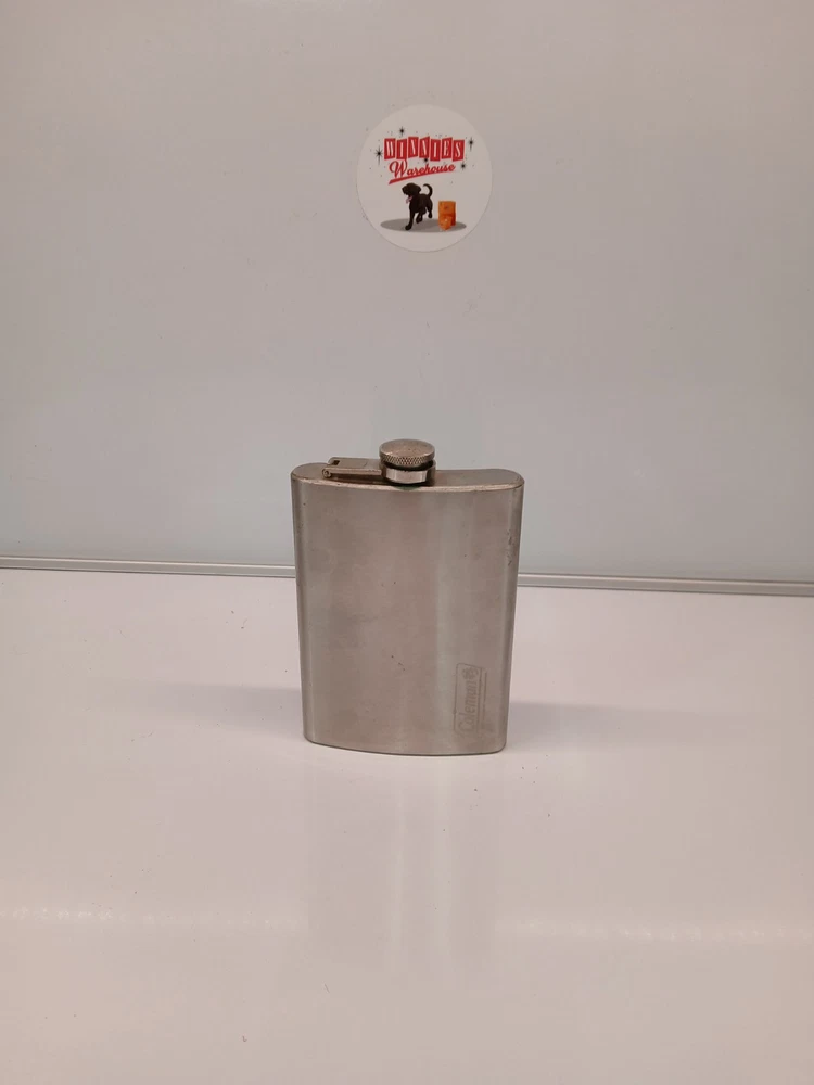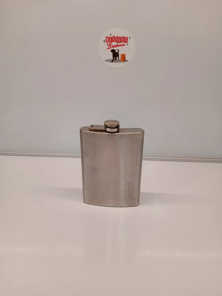 The Coleman 8oz Flask is a silver stainless steel flask designed for camping. It features a screw-on lid, making it reusable and engravable. Perfect for staying hydrated while enjoying outdoor activities.