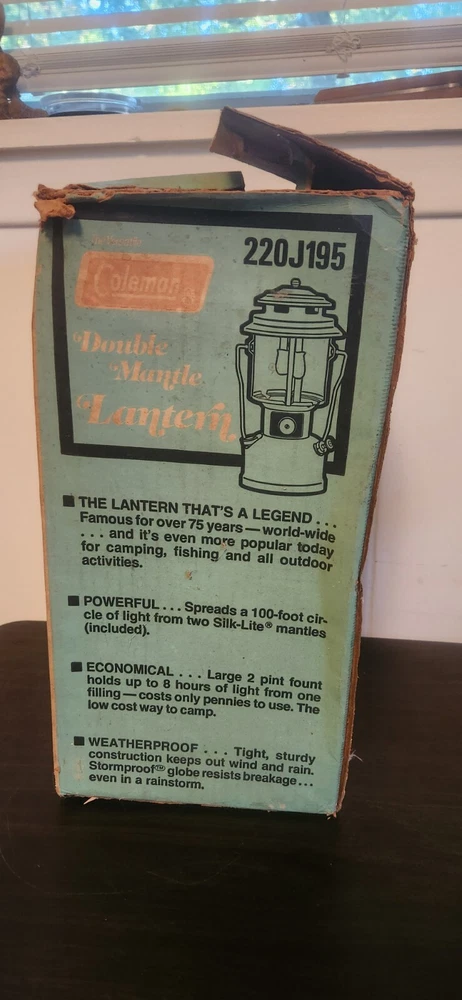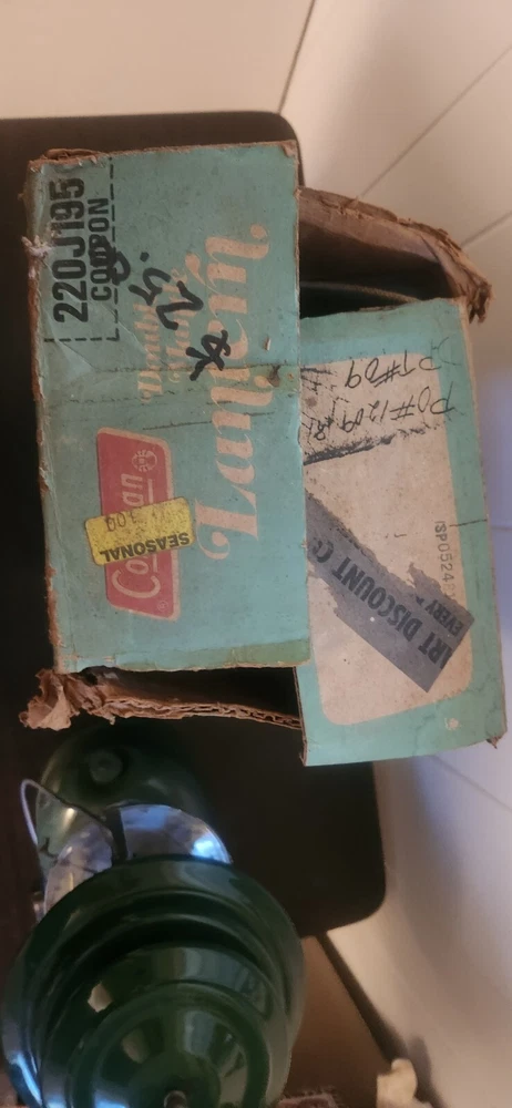 Coleman Lantern 1969 Model 220 220F Double Mantle Green Sunshine of Night Box
