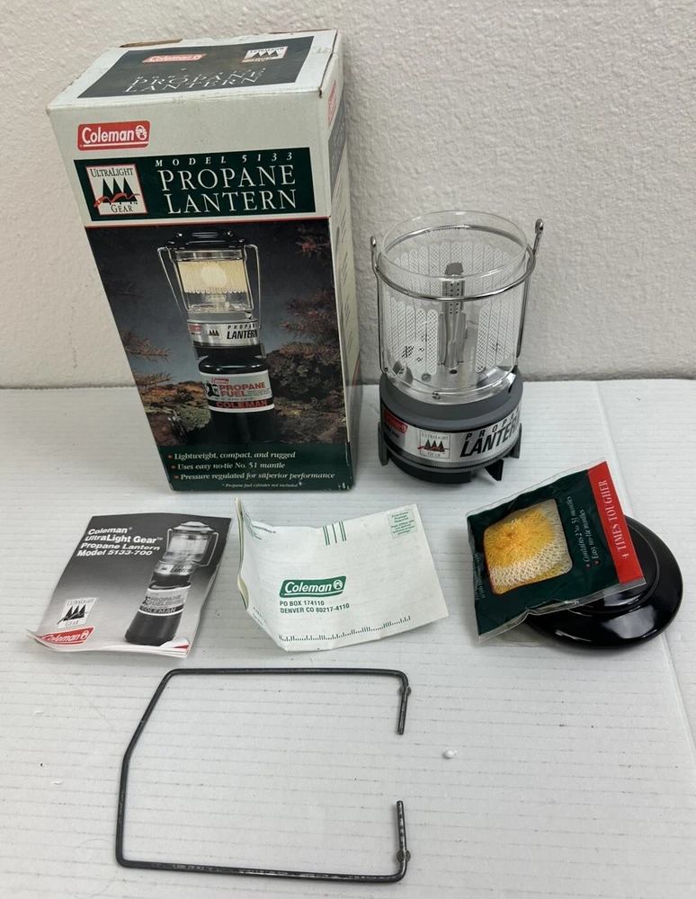 I’m selling this is open box new (Other) due to the fact that I took it out for pictures This is Coleman Ultra Light Propane Lantern Model 5133 Vintage Box New Unused OPEN BOX. Please see all pictures for condition. Due to age the box has some wear.