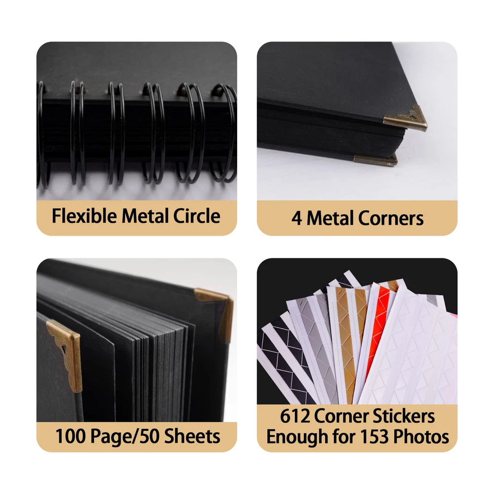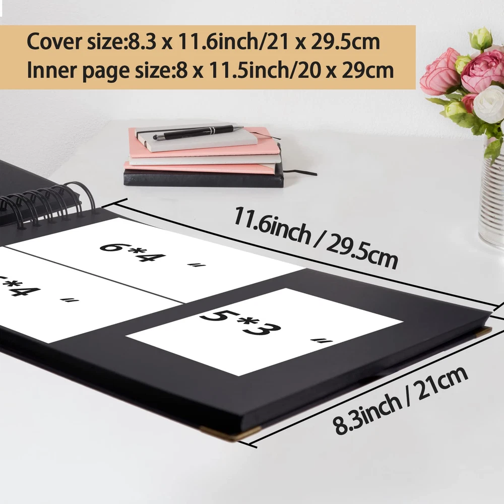 Personalized DIY Photo Album – 100 Pages, 8.3 x 11.6 inches This DIY photo album offers a creative and personalized way to preserve your cherished memories. With its ample space and customizable design, it's perfect for various occasions such as weddings, anniversaries, birthdays, and travel adventures. Key Features: Generous Capacity: The album includes 50 sheets (totaling 100 pages) , providing ample space to showcase your photos, notes, and mementos. Optimal Photo Corners: Accompanied by 612 photo corners , allowing you to securely attach up to 153 photos . This ensures your photos are safely displayed without the need for adhesives that could damage them. Customizable Design: The hardcover can be personalized with your favorite photos, stickers, or decorations, enabling you to create a unique album that reflects your style and the essence of your memories. High-Quality Construction: Crafted with fine materials and meticulous attention to detail, the album features sturdy black pages that provide an elegant backdrop for your photos. Perfect Gift Idea: This album makes an ideal gift for various occasions, including Valentine's Day, Christmas, Mother's Day, baby showers, birthdays, weddings, and more. It's also a wonderful way to document travel experiences or adventures. Specifications: Cover Size: 8.3 x 11.6 inches (21 x 29.5 cm) Inner Page Size: 8 x 11.5 inches (20 x 29 cm) Package Includes: 50 sheets (100 pages) and 612 photo corners Usage Suggestions: Memory Preservation: Use this album to compile photos from significant events, creating a tangible keepsake to relive those moments. Creative Projects: Engage in scrapbooking by adding decorative elements, journaling, and other creative touches to enhance your photos. Gift Creation: Assemble a personalized album as a heartfelt gift, showcasing shared memories and experiences. By choosing this DIY photo album, you're investing in a durable and customizable way to preserve and display your most treasured memories.