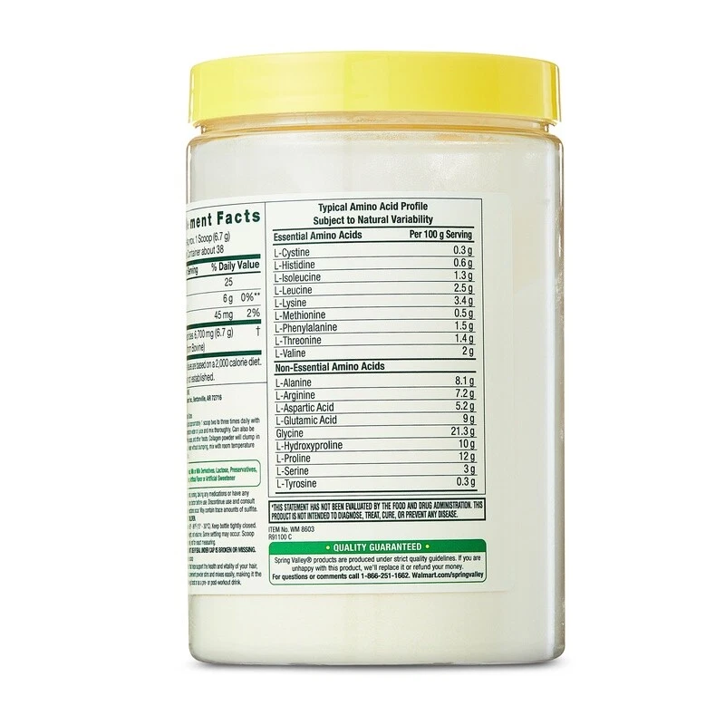 50000mAh Power Bank Portable Charger Fast Charge 6 Devices USB-C Built-in Cables 50.05 USD 52.68 USD Free shipping 5% off 12V Smart Trickle Battery Charger Maintainer Car Motorcycle ATV Lawn Mower New 29.39 USD 30.94 USD Free shipping 5% off 12V Battery Charger Kids Ride On Cars Power Supply ETL Listed Charging Cable New 19.11 USD 20.12 USD Free shipping 5% off 146Pcs 4th of July Party Favors Patriotic Accessories USA Celebration Supplies 29.43 USD 30.98 USD Free shipping 5% off 30 Pcs Patriotic Decorations Veterans Day 4th of July Party Indoor Outdoor New 19.12 USD 20.13 USD Free shipping 5% off 12Pcs American Flag Pinwheels Patriotic Decorations Independence Day Garden New 25.9 USD 27.26 USD Free shipping 5% off Disposable Patriotic Tablecloths 3 Pack Birthday Memorial Outdoor Party Supplies 12.64 USD 13.31 USD Free shipping 5% off Patriotic Eagle Wreath Garden Flag Double Sided Outdoor 4th July Decor New 13.23 USD 13.93 USD Free shipping 5% off Patriotic Wood Block Sign Set Independence Day Table Decor Farmhouse Centerpiece 19.1 USD 20.1 USD Free shipping 5% off 6 Pack Patriotic Star Streamers Garland Hanging Decorations 4th of July Party US 14.34 USD 15.1 USD Free shipping 5% off 4th of July Pillow Covers Set of 2 Soft Plush Fur Independence Day Home Décor US 19.12 USD 20.13 USD Free shipping 5% off 29PCS 4th of July Decorations Set Paper Fans Pom Poms Banners Swirls Stars New 23.54 USD 24.78 USD Free shipping 5% off Collagen Peptides Type 1 and 3 Dietary Supplement is your go-to solution for healthy hair, skin, nails, and joints. * This powerful powder stirs and mixes seamlessly into six to eight ounces of water or your favorite juice for easy consumption, and its collagen-packed formula provides the building blocks to help support your health and vitality. Take this unflavored powder with you for an on-the-go boost or a pre- or post-workout drink. You can even opt to whirl it into your favorite smoothie for a special treat. Supplement your healthy lifestyle with the Collagen Peptides Type 1 and 3 Dietary Supplement. * understands living a healthy, balanced lifestyle is the key to being your best self. With an affordable range of products inspired by nature, supports your and your family's health and holistic wellbeing. Collagen Peptides Type 1 & 3 Dietary Supplement, 9 oz Go-to solution for healthy hair, skin, nails, and joints* No gluten, yeast, wheat, milk, lactose, sugar, soy, or preservatives No artificial color or flavor Stirs and mixes easily 9 oz tub contains about 38 servings Keto and paleo formula *These statements have not been evaluated by the Food and Drug Administration. This product is not intended to diagnose, treat, cure, or prevent any disease You may also like Garcinia Cambogia 800mg Veg Capsules Weight Management 90 Count 2 Pack New 23.21 USD 24.43 USD Free shipping 5% off Stainless Steel Rotating Skewer 27in Camping BBQ Fire Pit Marshmallows Hot Dogs 25.0 USD 26.32 USD Free shipping 5% off Extra Strength Vitamin C Gummies 500 mg Immune Support Vegetarian 120 Count New 14.54 USD 15.31 USD Free shipping 5% off 4-Pack Angled Wine Glass Set Smoke Finish Elegant Design Durable Glassware New 26.27 USD 27.65 USD Free shipping 5% off Dehydrated Cross-Cut Celery 18oz Shelf Stable Emergency Food Gluten Free New 25.17 USD 26.49 USD Free shipping 5% off Oversized Striped Beach Towel Cotton Recycled Polyester Outdoor Activities New 17.49 USD 18.41 USD Free shipping 5% off Dust Trapping Microfiber Duster Refills Cleaning Lavender Scent 10 Count New 14.64 USD 15.41 USD Free shipping 5% off Folding Camp Chair Portable Sling Back Padded Seat Steel Frame Mesh Bag New 29.63 USD 31.19 USD Free shipping 5% off Soft-Sided Pop Up Mesh Dog Kennel Portable Crate Easy Travel Storage Folding New 25.03 USD 26.35 USD Free shipping 5% off Vitamin D3 Gummies Immune Bone Health 160 Count Assorted Fruit Gluten Free New 13.07 USD 13.76 USD Free shipping 5% off 2-Pack Beach Towels Cotton Blend Striped Soft Absorbent Lightweight Outdoor Use 20.56 USD 21.64 USD Free shipping 5% off Gray Round Resin Planter W/ Drainage Holes UV Resistant Lightweight Eco Friendly 23.53 USD 24.77 USD Free shipping 5% off