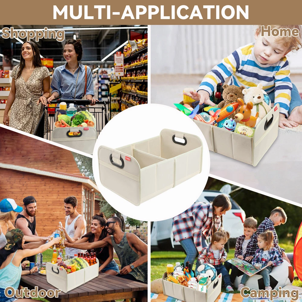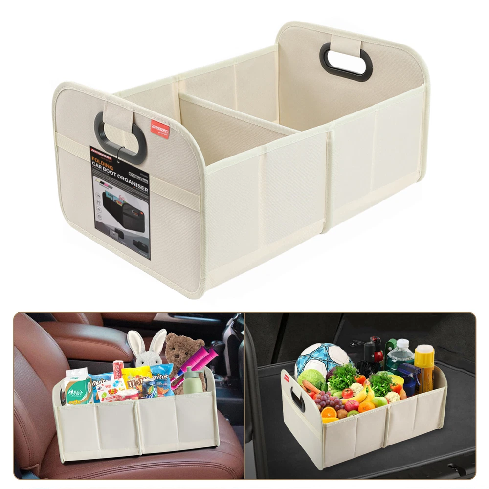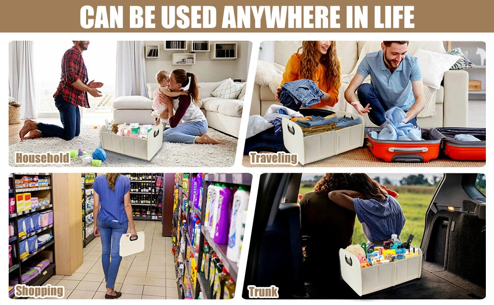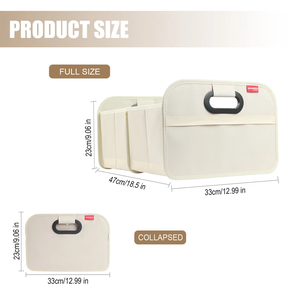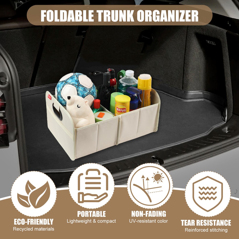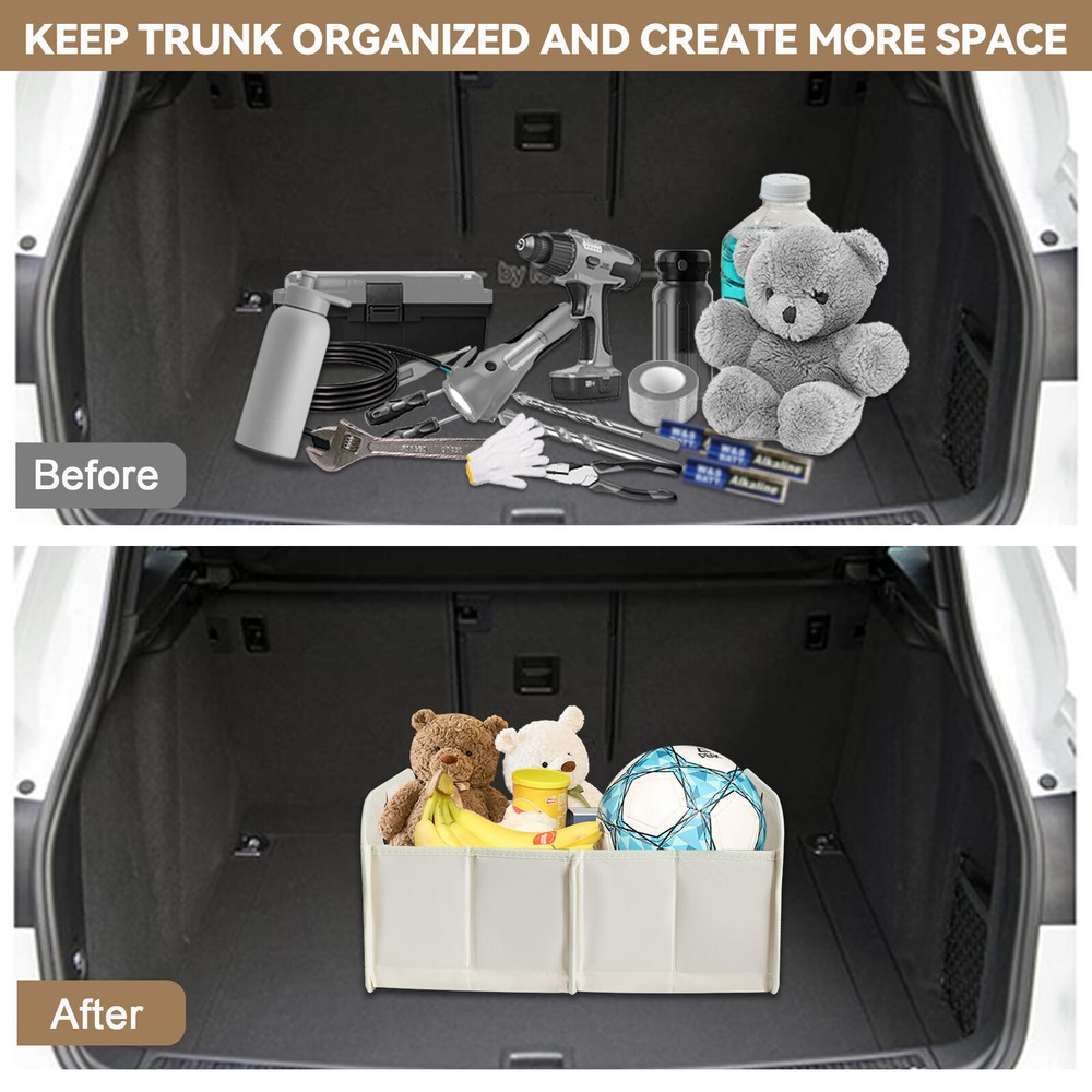 Trunk Cargo Organizer Collapsible Storage Bag 35L for Cars Trucks & SUVs Beige Features: FOLDABLE DESIGN : This car storage organizer has a foldable design that allows it to be folded up when not in use, saving space in the trunk of the vehicle. This design allows the bag to effectively reduce the space it takes up when not in use, improving space utilization in the trunk of the vehicle. MODERATE CAPACITY : The car trunk tidy has a certain capacity, suitable for storing tools, first aid kits, shopping bags and other items needed for daily driving. This moderate capacity design meets your most trunk storage needs, making the organizer bag able to meet your practical needs. DURABLE MATERIAL : It is usually made of wear-resistant material that can withstand a certain amount of weight and ensure durability for long-term use. This choice of material ensures the longevity of the organizer bag and also enhances its weight-bearing capacity, making it more practical. EASY TO CLEAN : The surface finish is usually smooth and easy to clean and wipe down, keeping the trunk tidy for car. This design makes the trunk organizer easier to clean during use and reduces the cost of use and maintenance for the user. EASY TO INSTALL : Designed with user convenience in mind, the car trunk storage organizer can be installed or removed without any tools. This easy installation allows users to easily install the bag into the trunk of the vehicle, improving your experience. Specifications: Color:Beige Material: Oxford Cloth Dimensions Open: 18.5” x 12.99 x 9.06” /47cm x 33cm x 23cm Dimensions Folded: 1.18" x 12.99" x 9.06" /3cm x 33cm x 23cm Fitment: Universal - Fits Almost Any Trunk Package included: 1*Trunk Organizer General Policies : Dear customer,if you have any questions,you can contact us,we will provide the best service for you. Shipping policy : The item will be shipped within 24 hours on payment received except the holidays.(except weekends & official holidays). You can log on to eBay to check your logistics tracking number. Please confirm address before purchase, and cannot change address once purchased. If you need to receive the item quickly, please contact us, you can pay the postage to choose other logistics. Payment: Please purchase and pay for the item through the eBay,only acc e pted the paypal payment. Returns: Please contact us first when return, exchange and refund is required. Any direct return of purchased items will not be processed. Item must be returned in new condition, as received with all accompanied accessories and literature, including the factory carton. Shipping, handling is not refundable unless item is returned because of defect. If the product is defective or damage upon arrival,please contact us immediately,we will provide the solve the problem. Returns accepted within 30 days of delivery date and item must be in original new condition. About us: Our goal is complete customer satisfaction. We will be very honored to provide you with quality service. If there is an issue with shipping or the item you purchased please contact us via e B ay message or call us before opening a case or leaving feedback.We will try our best to resolve any kind of issue.