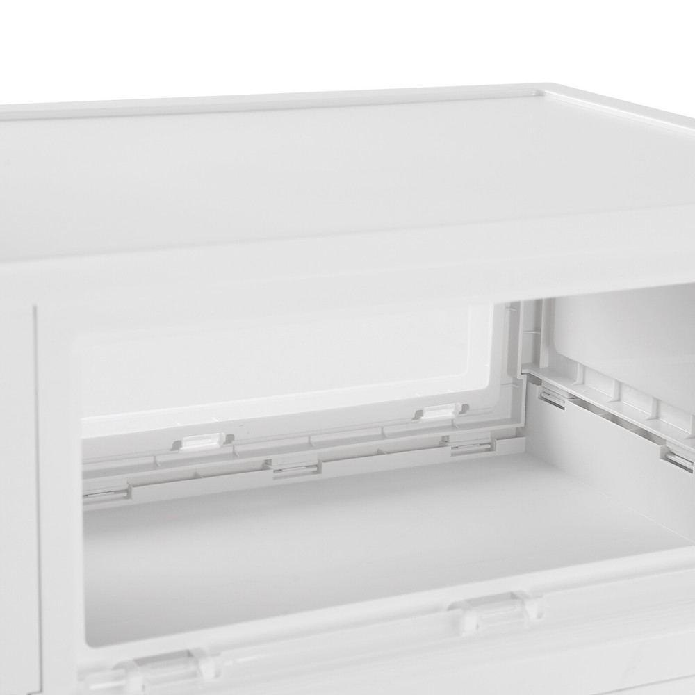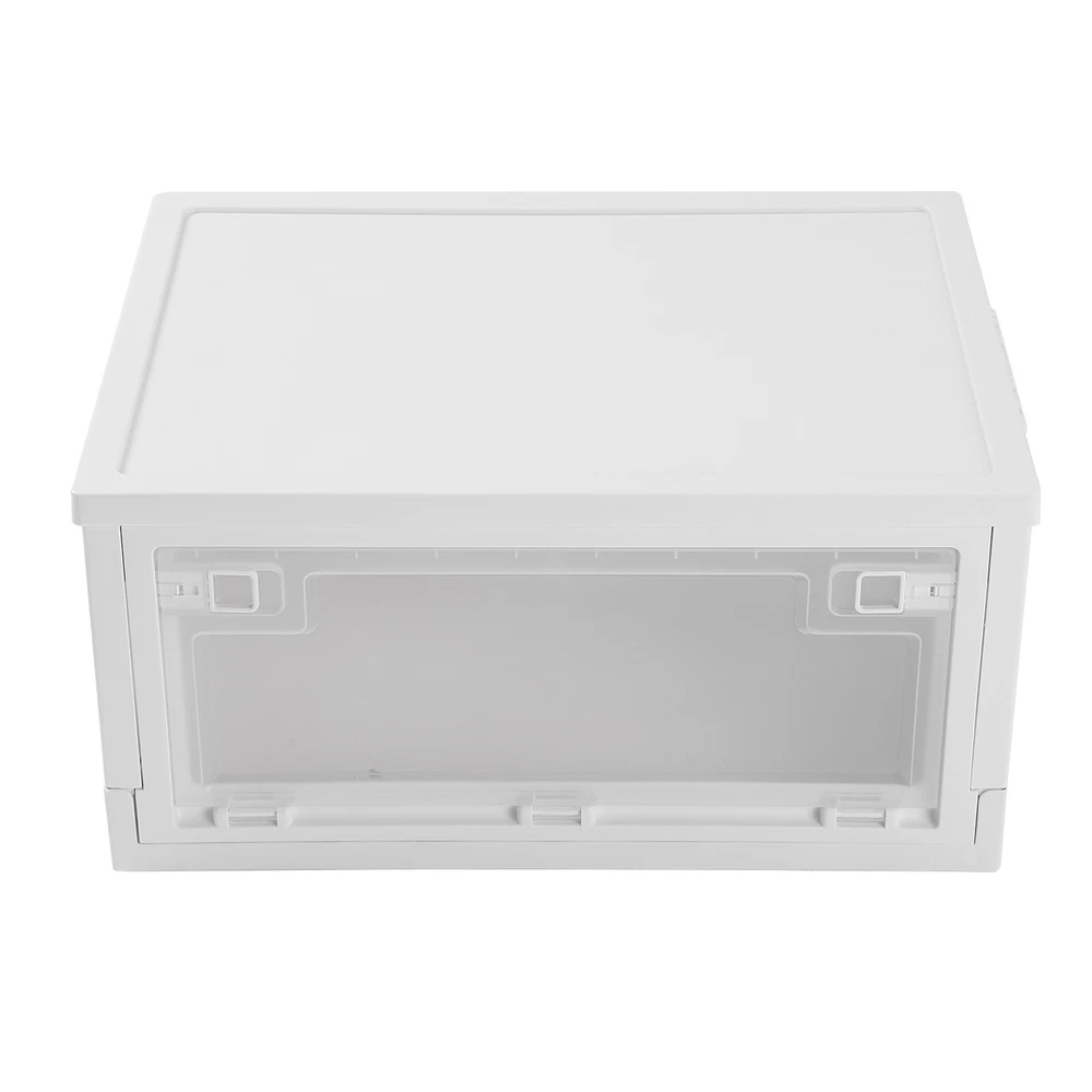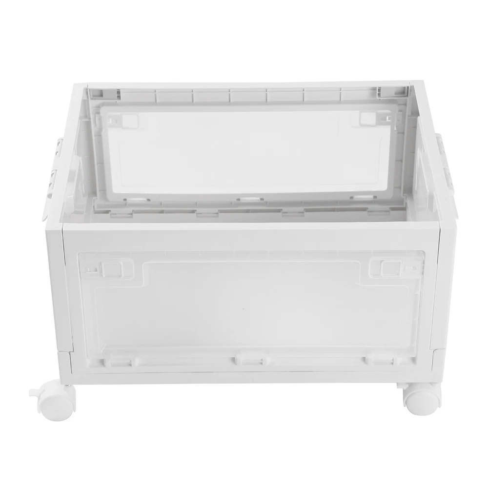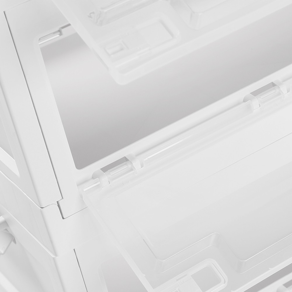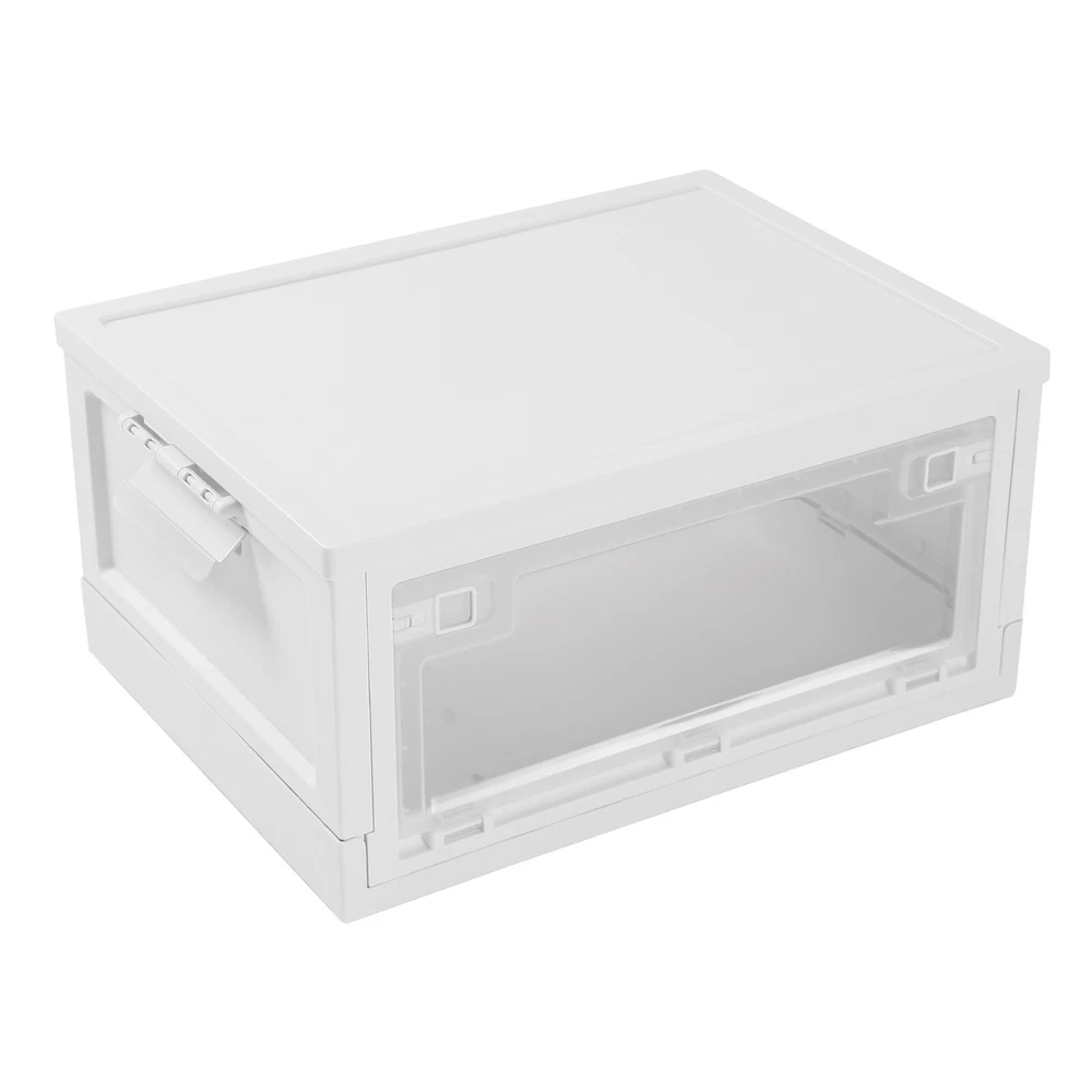 Plastic Storage Bins with Lids Are you often unable to find what you need to use? Are you often bothered by the fact that the plastic storage bins are not big enough? Choose this 3-tiered large-capacity storage box, to bring your life neat and orderly! Details Pull Rings: The bin has two pull rings on left and right, you move the ring inward to open the door, which is very convenient. Bottom Grid Design: The bottom of this plastic storage bin is designed with a reinforced grid, which further ensures the stability of the plastic storage bins. Wheels with Brakes: Each wheel has a brake to fix the bin in place. Application This item can be used to store books, towels, snacks, sundries, etc. You can put it in the living room, children's room, study, bedroom, or car. Specification Material: PP Color: White and Clear Assembly Required: Yes Total Height(Wheels not included): 72cm/28.3in Single Storage Bin Size: 50*36*24cm/19.6*14.1*9.4in Folded Height(Single): 6.5cm/ 2.5in Capacity(Each): 45L/10.23 Gallons Maximum Load(Each): 50kg/110.2lbs Package Included 3* Plastic Storage Bins with Lids 4* Wheels 3* English Manuals All Accessories for Assembly Notes Please allow the slight color difference caused by the shooting light and 1-3cm error due to manual measurement and make sure you do not mind before ordering. Neat and Orderly: These plastic storage bins with lids can store towels, tissues, books, data cables, and other daily essentials to create a cleaner and tidier room environment. Saving Space: The top of this plastic storage bin is designed with recesses, so you can stack them at will to suit your needs. Moreover, these plastic storage bins can be folded. After folding, each storage bin is only 2.6 inches high, you can slip it under the sofa to save a lot of space. Convenient to Access: When the storage bins are stacked together, the door can be easily opened to reach items without removing the lid. At the same time, the openable side lid design and transparent visibility also make access to items more convenient. Design with Lid: This plastic storage bin has a design with a lid to protect against dust and moisture and maintain the dryness and freshness of its contents. Sturdy and Durable: This plastic storage bin is made of thickened material, which can strongly bear 110.2lbs, while the PP material is anti-corrosion and anti-rust, which can be used for a long time. Large Capacity: There are three storage boxes, each with a capacity of up to 45L, so you can store a lot of things at once. Easy to Assemble: It only takes a few seconds to unfold the bin, and after unfolding, you just need to install the baffle, cover, handle, and pulley. The entire installation process does not require tools. Easy to Carry: This plastic storage bin is designed with carrying handles and is equipped with 4 universal wheels, which makes it easy to carry even if heavy objects are placed inside. Also, you can easily clean the place under these storage bins by just pushing a little.