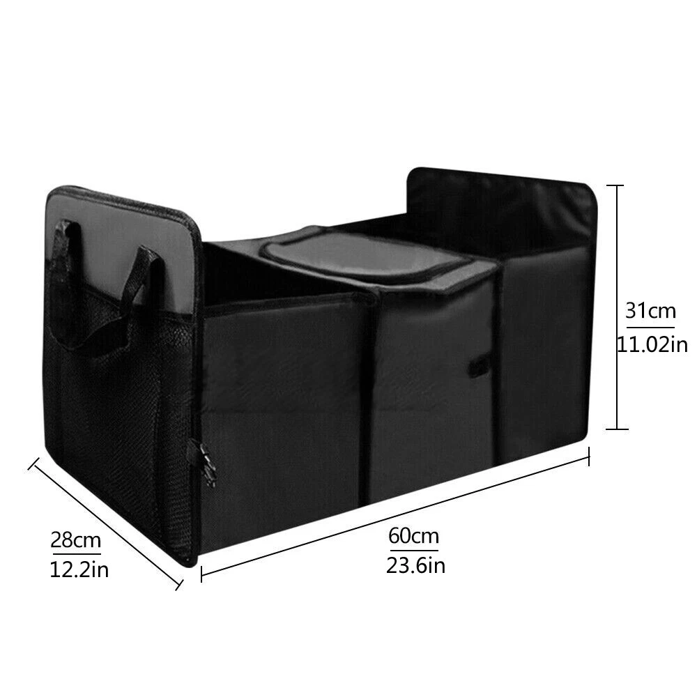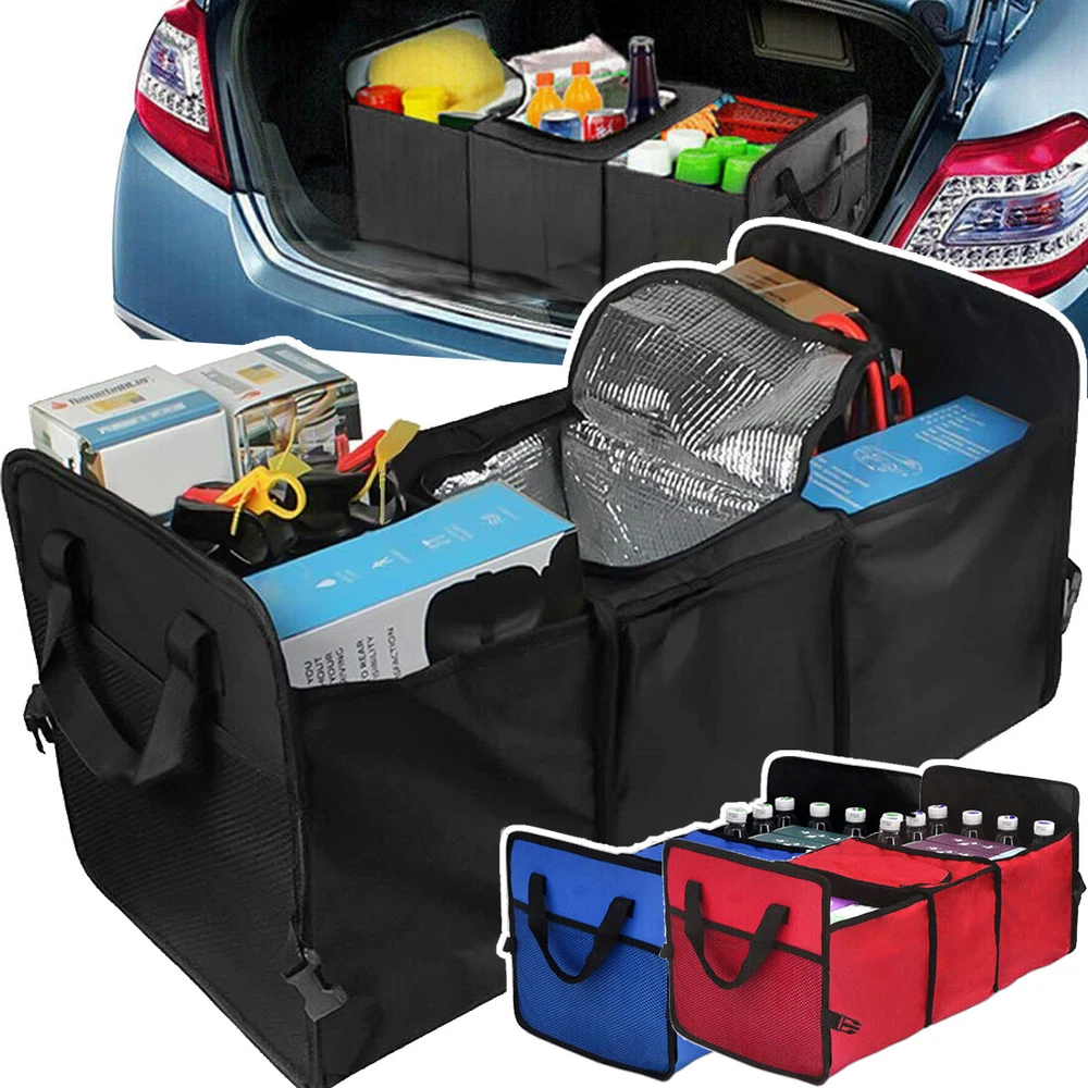 Collapsible Car Trunk Organizer Cargo Storage Box Net Universal Tidy Bag Cooler Product Description The multifunctional car boot organizer creates a neat and tidy trunk for you, with partitioned storage and no need to rummage through boxes to find things, curing your clutter. Features 【Lots of Storage】 This trunk organiser is divided into 3 large compartments with mesh pockets on the sides for quick division and storage of items. 【Trunk Organizer with Cooler】 As a powerful trunk organiser, we have added an insulated space that works well for keeping food fresh or for springing out ice cubes. 【Durable Material】 The car organiser and storage box is made of durable and waterproof Oxford cloth, which is more resistant to dirt, moisture and tears than non-woven fabric, creating a clean and hygienic environment for your belongings. 【Optimised Folding Design】 Unlike plastic boot organisers, which have always taken up a lot of space in the boot.ours folds easily to the size and thickness of a book. 【multi-purpose】 This practical car grocery organizer can be used not only for organizing the trunk space, but also in a variety of situations such as snacks in the pantry, camping picnics, outdoor sports equipment and more. - Color: Black/Red/Blue - Unfolded Size: 60cm x 31cm x 28cm / 23.6" x 12.2" x 11” - (55L) - Material: Oxford fabric, Dacron and aluminum coating Package Included - 1 x Car Boot Organizer General Policies : Dear customer,if you have any questions,you can contact us,we will provide the best service for you. Shipping policy : The item will be shipped within 24 hours on payment received except the holidays.(except weekends & official holidays). You can log on to eBay to check your logistics tracking number. Please confirm address before purchase, and cannot change address once purchased. If you need to receive the item quickly, please contact us, you can pay the postage to choose other logistics. Payment: Please purchase and pay for the item through the eBay,only acc e pted the paypal payment. Returns: Please contact us first when return, exchange and refund is required. Any direct return of purchased items will not be processed. Item must be returned in new condition, as received with all accompanied accessories and literature, including the factory carton. Shipping, handling is not refundable unless item is returned because of defect. If the product is defective or damage upon arrival,please contact us immediately,we will provide the solve the problem. Returns accepted within 30 days of delivery date and item must be in original new condition. About us: Our goal is complete customer satisfaction. We will be very honored to provide you with quality service. If there is an issue with shipping or the item you purchased please contact us via e B ay message or call us before opening a case or leaving feedback.We will try our best to resolve any kind of issue.