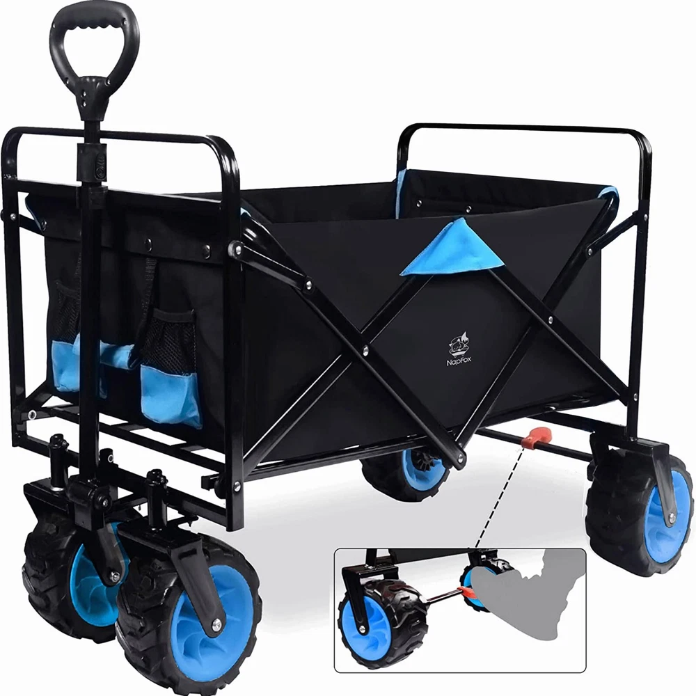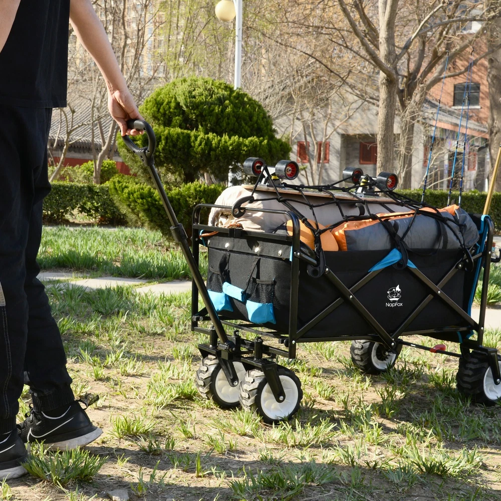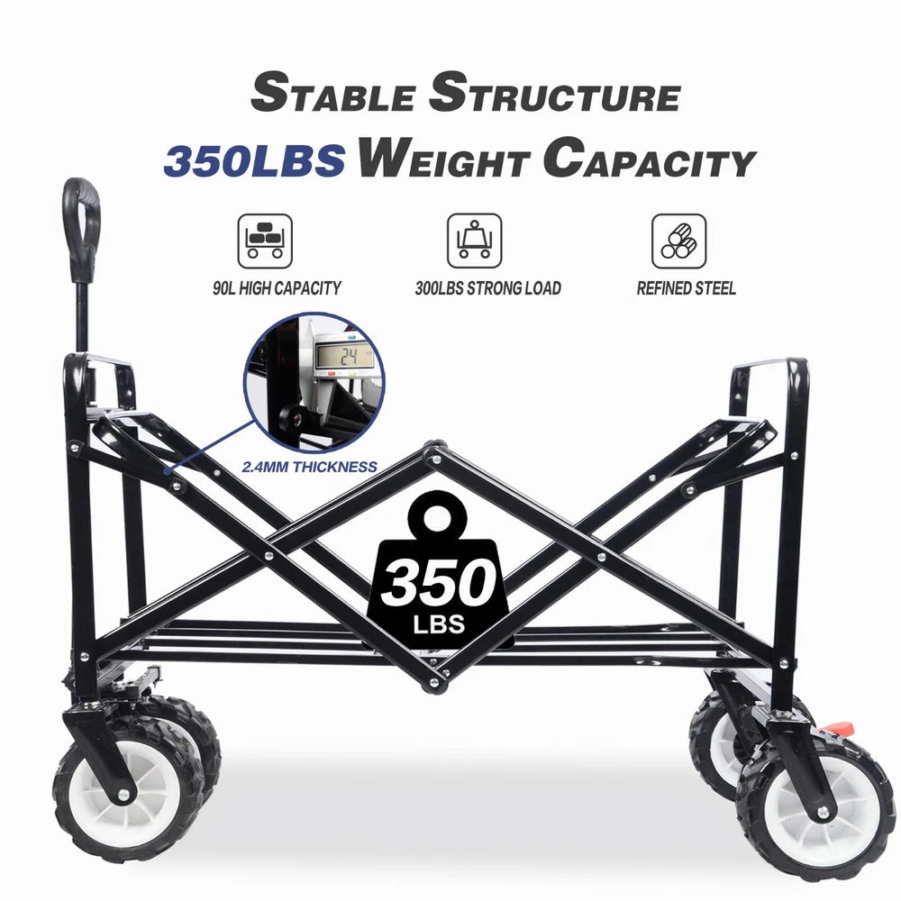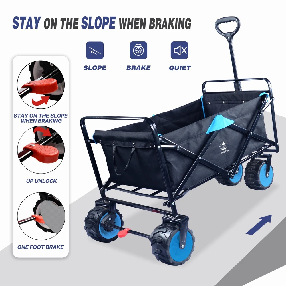 Beach Garden Travel Folding wagon cart Feature: Folding carts with strong steel structure-upgrade 600D waterproof oxford fabric, 2 cup holders design, equipped with 7’’all terrain tires. 180-degree rotating off-road wheel and the rear wheels are directional wheels. This is adopted to make your parking, pushing and pulling more conveniently. it doesn’t need to be installed, easy to open and fold, occupy small space, suitable for outdoor activities such as shopping, beach, camping. Sets up in seconds, no assembly required! Outside Dimensions Approx: 39.4" x 23.2" x 31.5". All terrain collapsible outdoor wagon cart has 90L large-capacity internal storage.And the use of 600D Oxford cloth, do not need to worry about filling too many things to cause damage. Wagon folds to only 7.48" thick! Folded size approx 29.5 x 22.3 x 7.5’’and includes a convenient portable bag for carry. All terrain collapsible folding outdoor wagon cart has internal pull rope design. Rear braking The cart can stop when you hit the brake with foot. Not only convenient but also protect your family and pets. Just up the brake then driving again. Double Triangle Structure Heavy-quality Frame, is made of triangle structure. Sets up in 3 seconds, No assembly required!The heavy duty frame allows loads up to 350 lbs. Widen Deepen Silent Wheels 7’’all terrain tires. The Wheels are silent widen hub and wear-resistant. It is made of PU material. 180° Connecting Rod Pull Smoothly Stand Alone and Save Hands 600D Oxford Waterproof Fabric Specification: Fabric Material: Oxford Frame Material: Steel Overall dimensions: 39.4" x 23.2" x 31.5"(L*W*H) Folded dimensions: 29.5 x 22.3 x 7.5’’ (L*W*H) Capacity: 90 L Max Load: 350 LBS Weight: 30 LBS Package: 1 x Collapsible Wagon Cart