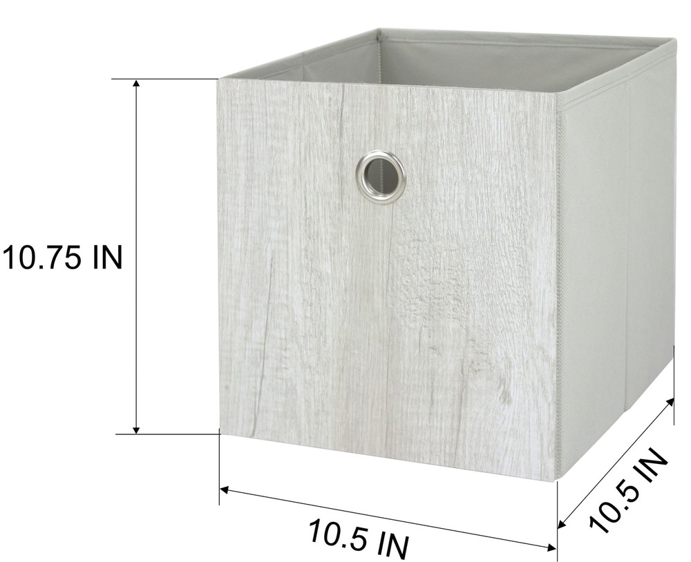 Our Grey Wood Foldable Fabric Storage Box is just what you need to create an organized home. Measuring 10.5" x 10.5" x 11", this box is perfect for storing everything from children's to adult clothing, books, and more, providing ample space to neatly organize everything. Its sturdy round metal handles make it easy to pull them off the shelf and slide them back on. You can bring the professional organization of the box to your living room, bedroom, laundry room, and dorm room. When not in use, you can easily fold the box flat and store it in your closet for later use. This fabric storage box is designed to be used with our Storage Box Organizer (not included) and is made of durable polyester fabric that will not easily lose its shape. With a variety of colors to choose from, you can use our Grey Foldable Fabric Storage Box to perfectly match your home decor. Help you create an organized and comfortable home Includes 4 gray wooden cubes Perfectly match your favorite colors and patterns Convenient handles on the sides of the boxes for easy carrying Can be used with our cubes or on their own When not in use, the boxes can be folded to save space Perfect for storing books, children's and adult clothing in the bedroom, living room, laundry room or dorm Made of durable polyester fabric that is wrinkle-resistant, wear-resistant and retains its shape Dimensions: 10.5"L x 10.5"W x 10.75"H (26.5 cm x 26.5 cm x 27.3 cm)