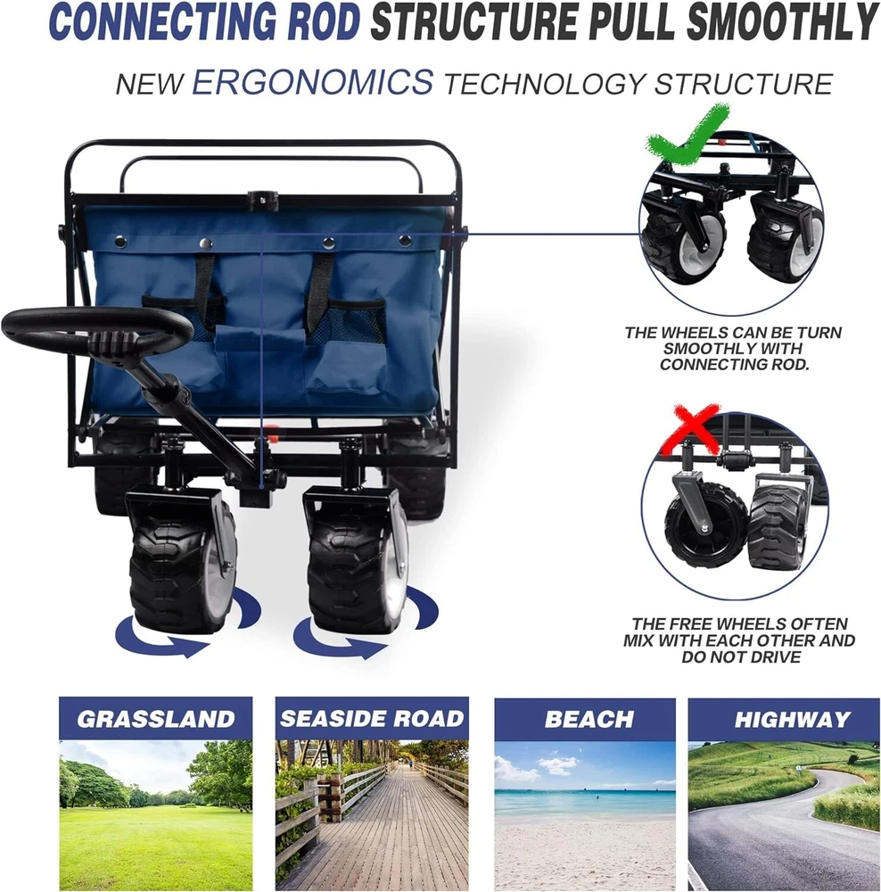Product Description The high-quality brakes are easy to use, and the cart can stop on the slope after stepping on it. It can also pull pets and children, which increases the safety of use. The ergonomic handle makes pulling the cart easier without hurting your fingers, the handle won't fall to the ground when you let go. The handle is easy to adjust, you can easily adjust the length with your own use, and it will not be uncomfortable to use. Our wagon features 2 mesh cup holders on the front, allowing you to store bottles securely and access beverages easily. Durable and made of 600D Oxford cloth and PE cotton, so it is reliable but won't wear down with use. It can be easily opened and folded in seconds. Folds up for easy storage. Small enough to fit in a closet, on the wall, or in the trunk of any standard car.
