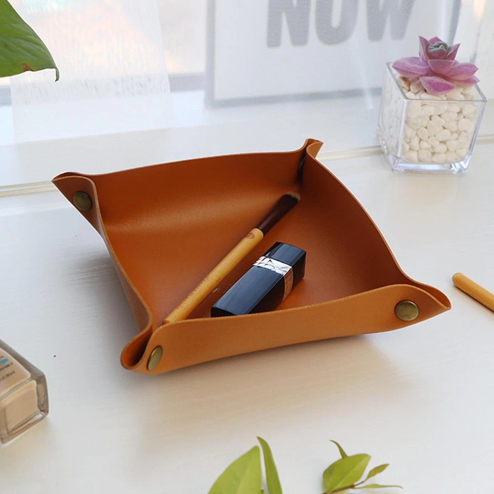 PU Leather Valet Tray Jewelry Catchall Collapsible Organizer Tray for Keys Watch Product Description Bullet Points: 【Flexible Use】With metal snap buttons, the Leather Catchall is flexible to use. In use, you can buckle it with the buttons, when not in use, you can fold it or store it flat, which can save space. 【Suitable Capacity】With suitable capacity, the Leather Jewelry Tray can be great table storage, which can store various items, such as cosmetics, jewelry, keys, remote control boards, data cables, etc. 【Good Quality Material】Using the material of selected PU leather, Catch All Trays is fine in texture, waterproof, anti-wearing, and durable, which is full of practicality. 【Elegant Artist Font】The light luxury and elegant bronzing English words are printed on the leather, which gives the simple product a sense of retro fashion. 【Suitable for Different Occasions】In addition to being used as a storage box, Leather Catchall Tray is also suitable for home decoration for it is small and exquisite with fine and smooth workmanship. Description: 1. The four corners of the Leather Catchall can be buckled with metal buckles. At the same time, it is soft and foldable and can be stored flat when not in use without taking up space. 2. Made of high-quality PU leather, Leather Catchall is not only delicate in texture, waterproof, and wear-resistant, but also durable. Specification: Size: 20*20cm/7.87*7.87in Weight: about 60g Packing Bag: opp Material: PU leather Product List: 1* Leather Catchall Notes: Due to the lighting effects and filming angles, there is a color difference in the product, please understand. Due to manual measurement, there is a tolerance in the product size. Payment 1.PayPal is a preferred Payment method. 2.You can make a Credit payment via Paypal.Paypal will let you use MasterCard,Visa to pay. 3.Payment should be completed within 3 days after auction closed, or unpaid dispute will be filed for an closing auction.An unpaid case will be filled after 4 days. Delivery details 1. We ship to many countries. 2. Delivery Time: Ship from China via Speedpak to US (takes 8-12 days) Ship from China via others shipping method to other countries (takes 15-60 days) 3. If you want to choose another address, please leave us a message on ebay.Please check your shipping address carefully before checkout,it can't be changed if order completed. Seriously promise:Refund or resend will be offered if item still not arrive in 7-10 business days. Just send us an email,we will give you a satisfied solution as soon as possible. Return policy 1.All item comes with Basic 3 Months Sellers Warranty, if item defective in 3 months,We will offer replacement without extra charger (including shipping fee) After we receive the defective item. If item Defective after 3 Month, Buyers can still send it back, We will contact suppliers or Manufactory for Warranty. Buyers Might Need pay the Shipping fee For resend the replaced item. 2.If item DOA(Dead of Arrival), Buyers can return it in 30 Days, we will replace it with new item after we receive DOA item. Please Contact us Before you sent the item back. 3.All item can be returned for exchange only. The buyer has responsibility for all return shipping including DOA or defective return. About Feedback When you receive the item and satisfied with the product, please leave positive feedback and 5 scores DSR. We will leave a 5 Scores DSR feedback for you. If, for any reason you are not satisfied with your purchase, please contact via Ebay Message and we will do our best to resolve it. Please don't leave neutral or negative feedback without any communition with .